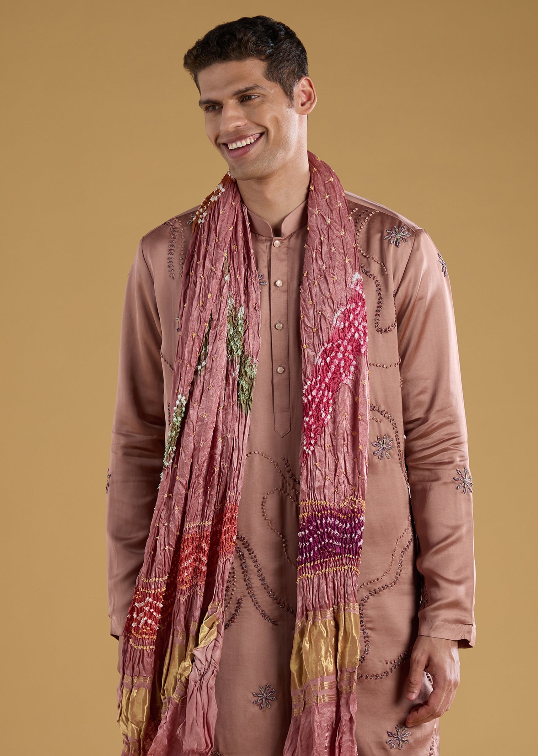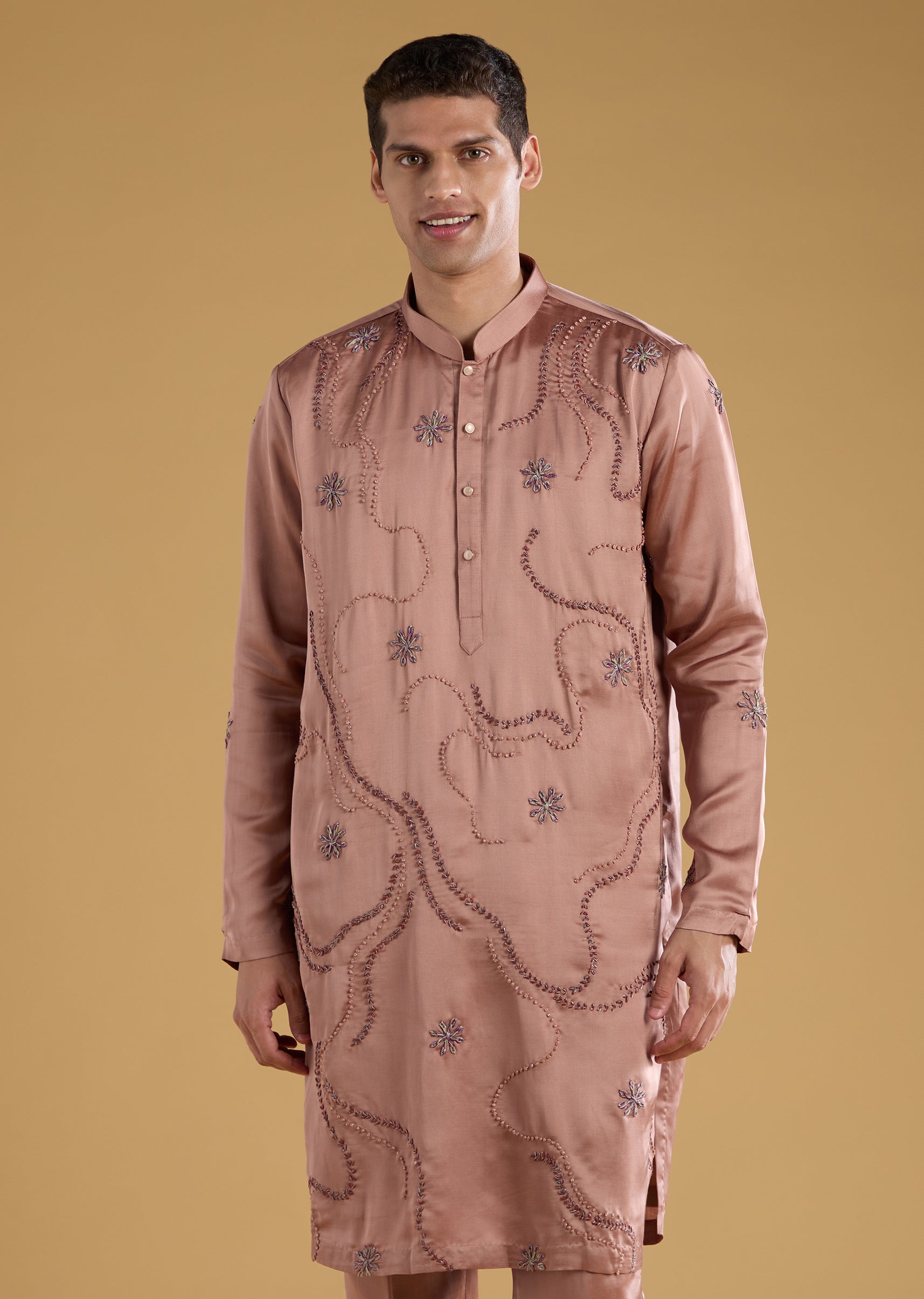 Rich silk paired with art silk gives this brown kurta set a warm, regal appeal, beautifully complemented by subtle thread and resham detailing. The earthy tone adds effortless sophistication, making it a versatile choice for intimate functions, festive gatherings, or family celebrations. Finished with a coordinated dupatta and pants, it delivers a balanced blend of tradition and understated luxury. Awarded as the Most Trusted Brand, we're delivering styles you love, just as promised.