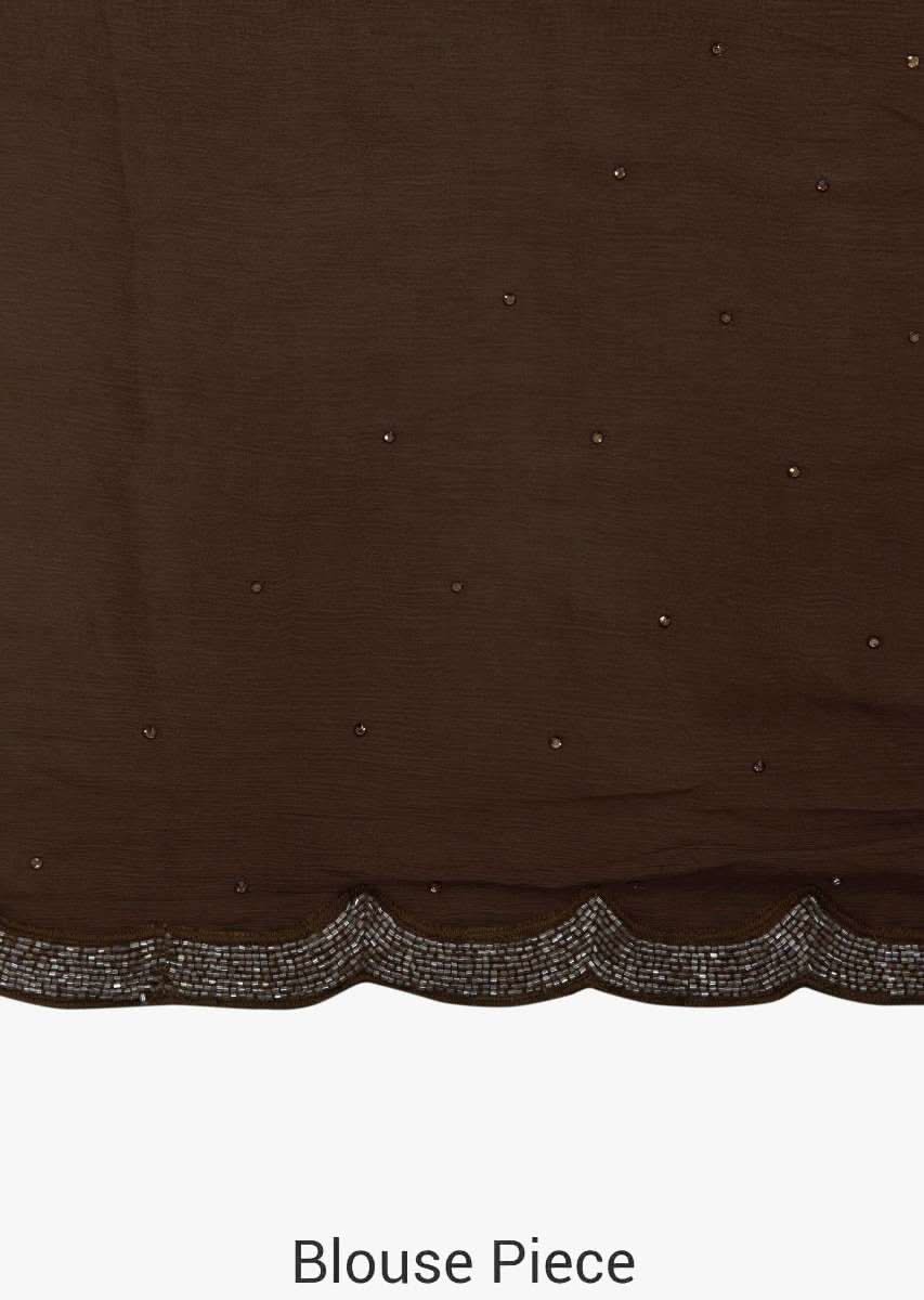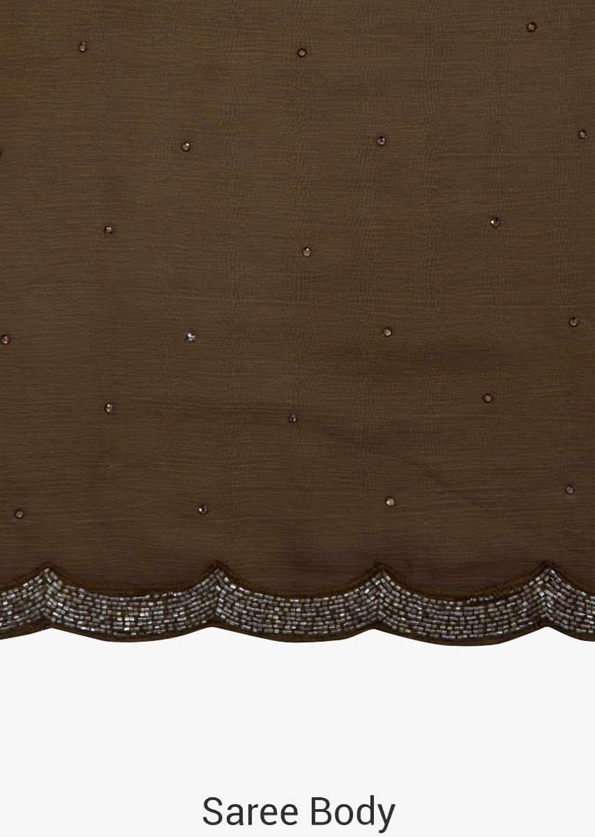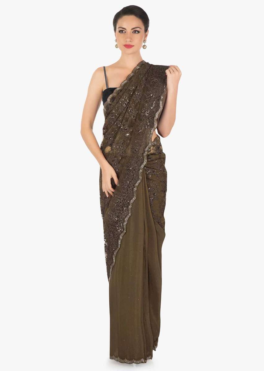Brown Half And Half Saree In Zari Embroidered Net And Chiffon Online - Kalki Fashion