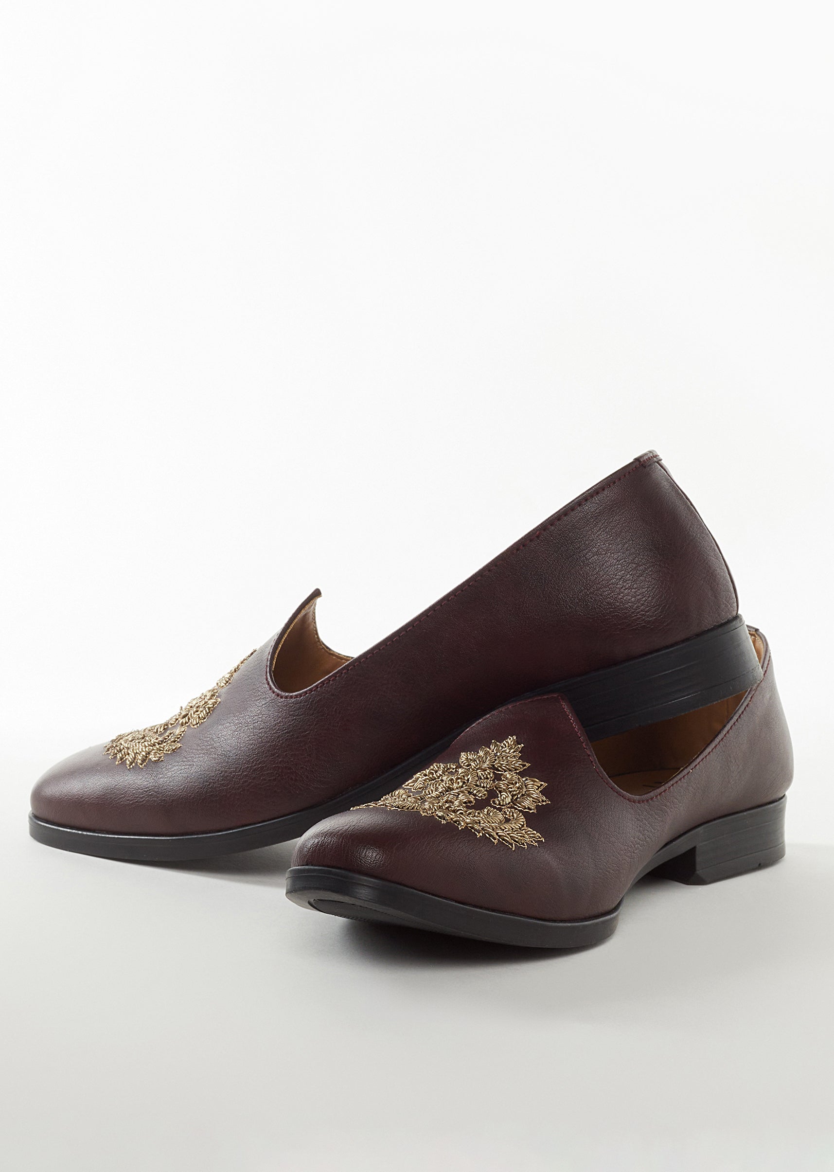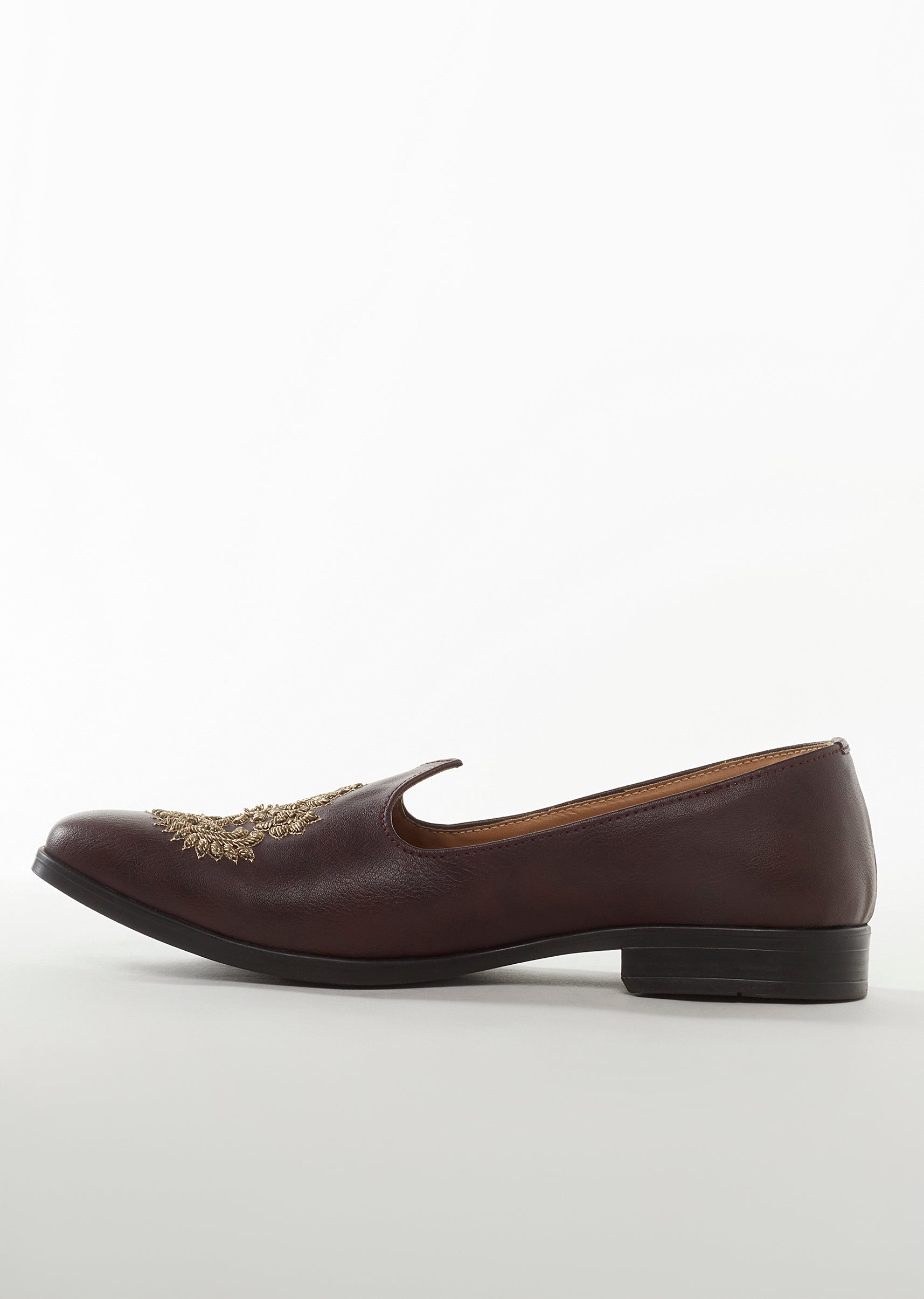 Refined and elegant, these brown mens footwear pieces are crafted in smooth faux leather with subtle embroidery detailing that adds a touch of festive charm. The tabletop face silhouette allows... More Product Details
