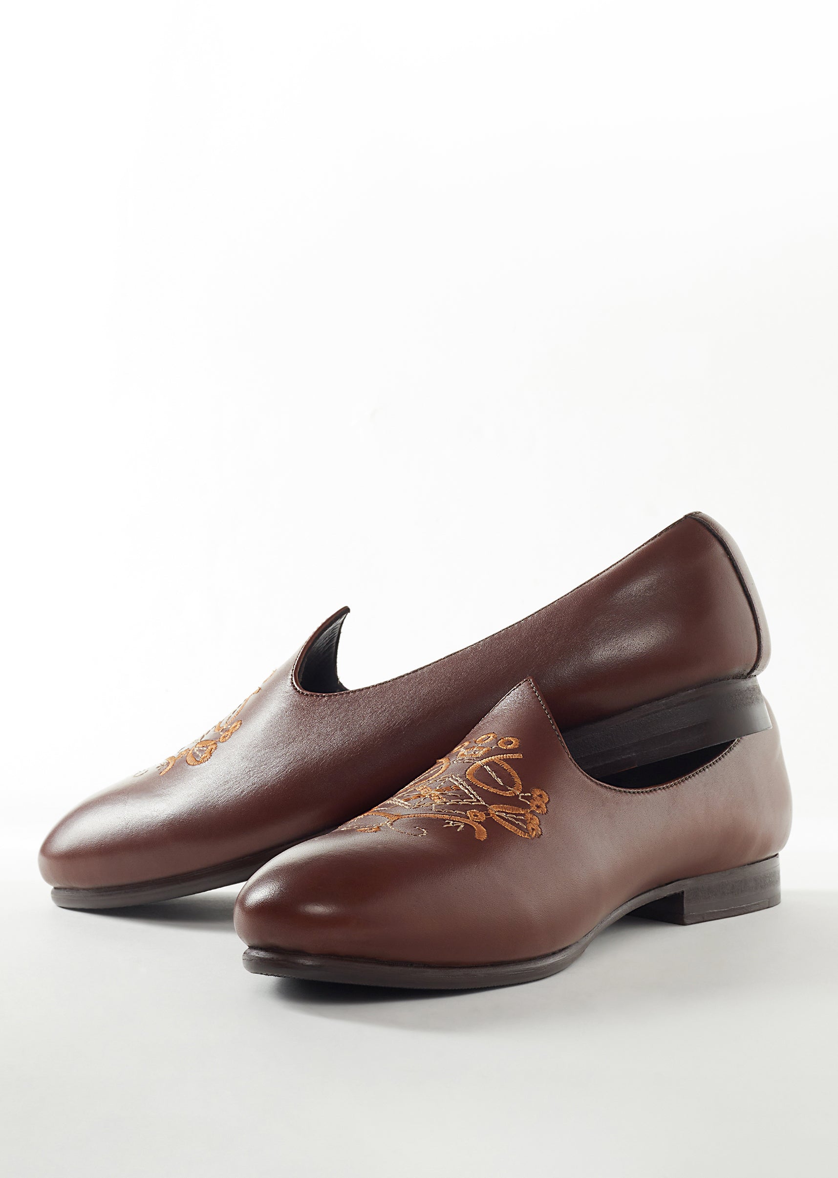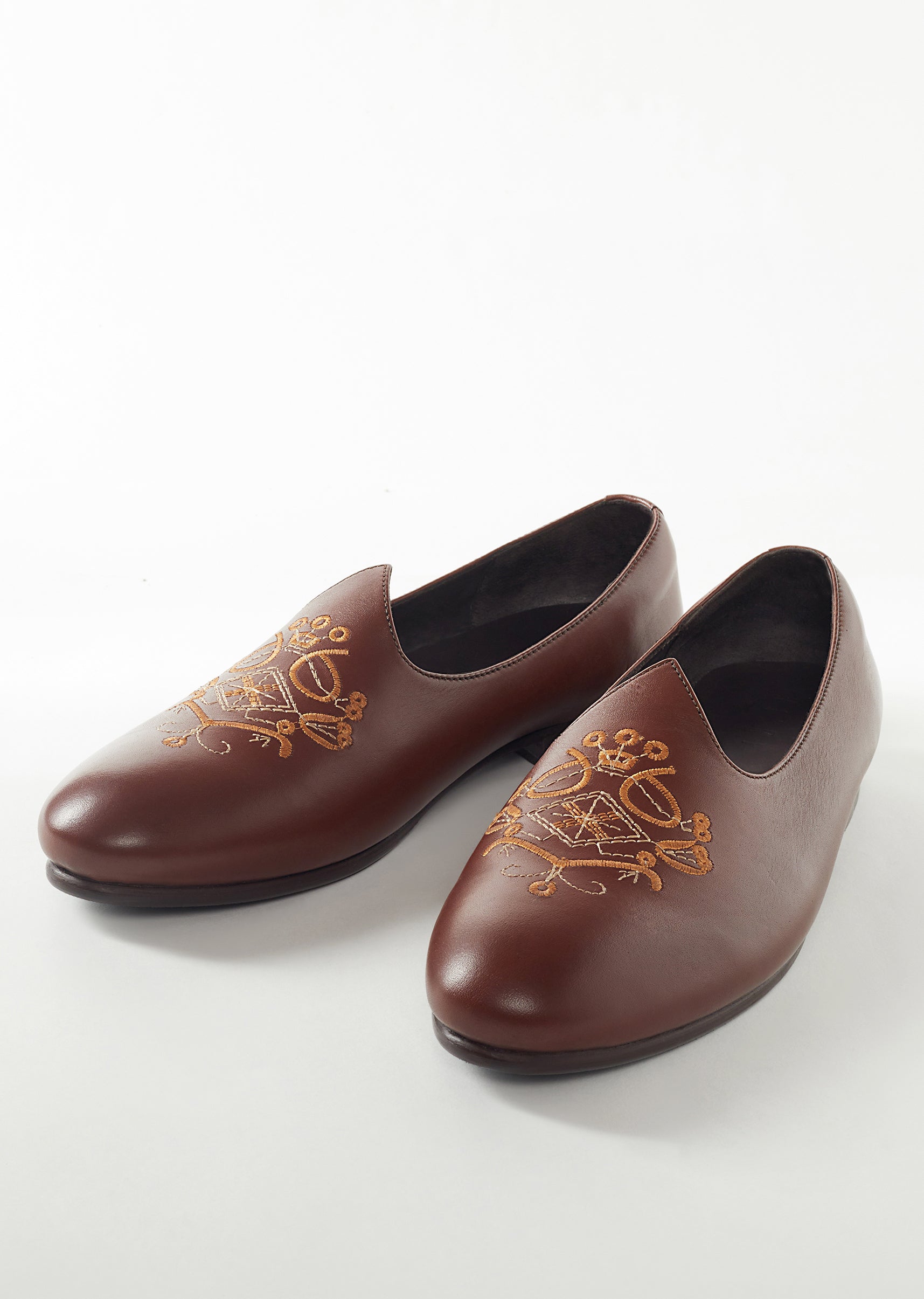 Brown Mens Footwear With Embroidery Work