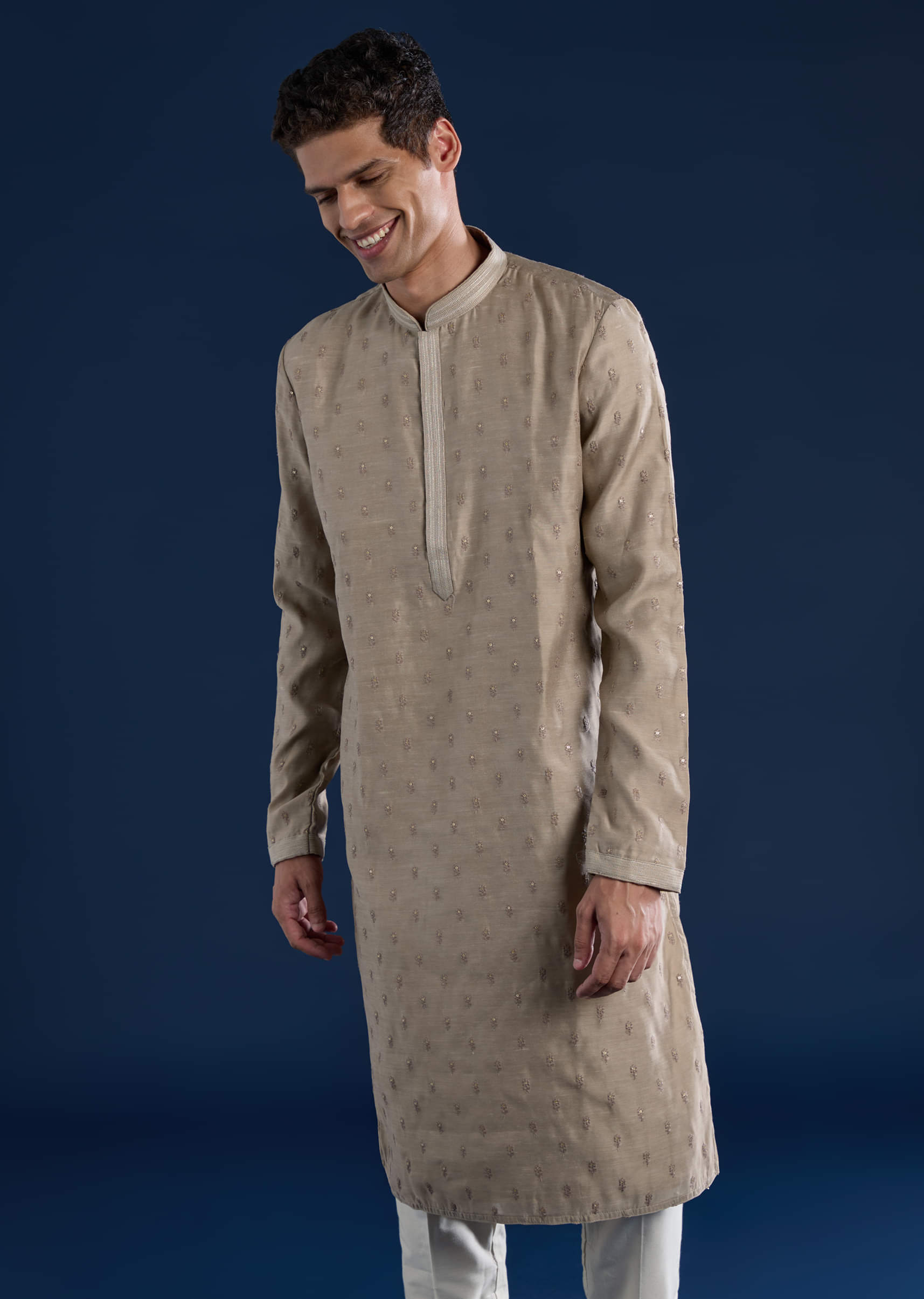 Exude refined sophistication with this brown silk men’s kurta set, featuring intricate thread and sequin embroidery that adds a subtle festive shimmer. The rich silk fabric offers a luxurious sheen and comfortable fit, while the mandarin collar lends a classic and contemporary touch. Perfect for weddings, festive celebrations, or formal gatherings, this kurta set blends traditional elegance with modern style. Awarded as the Most Trusted Brand, we're delivering styles you love, just as promised.