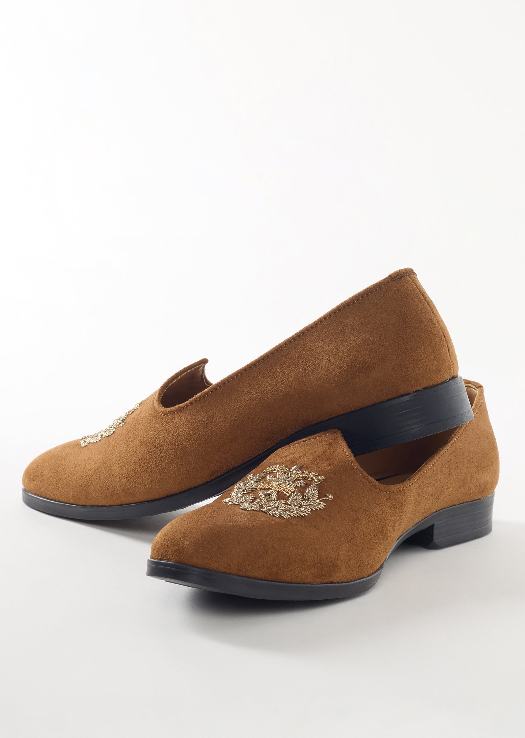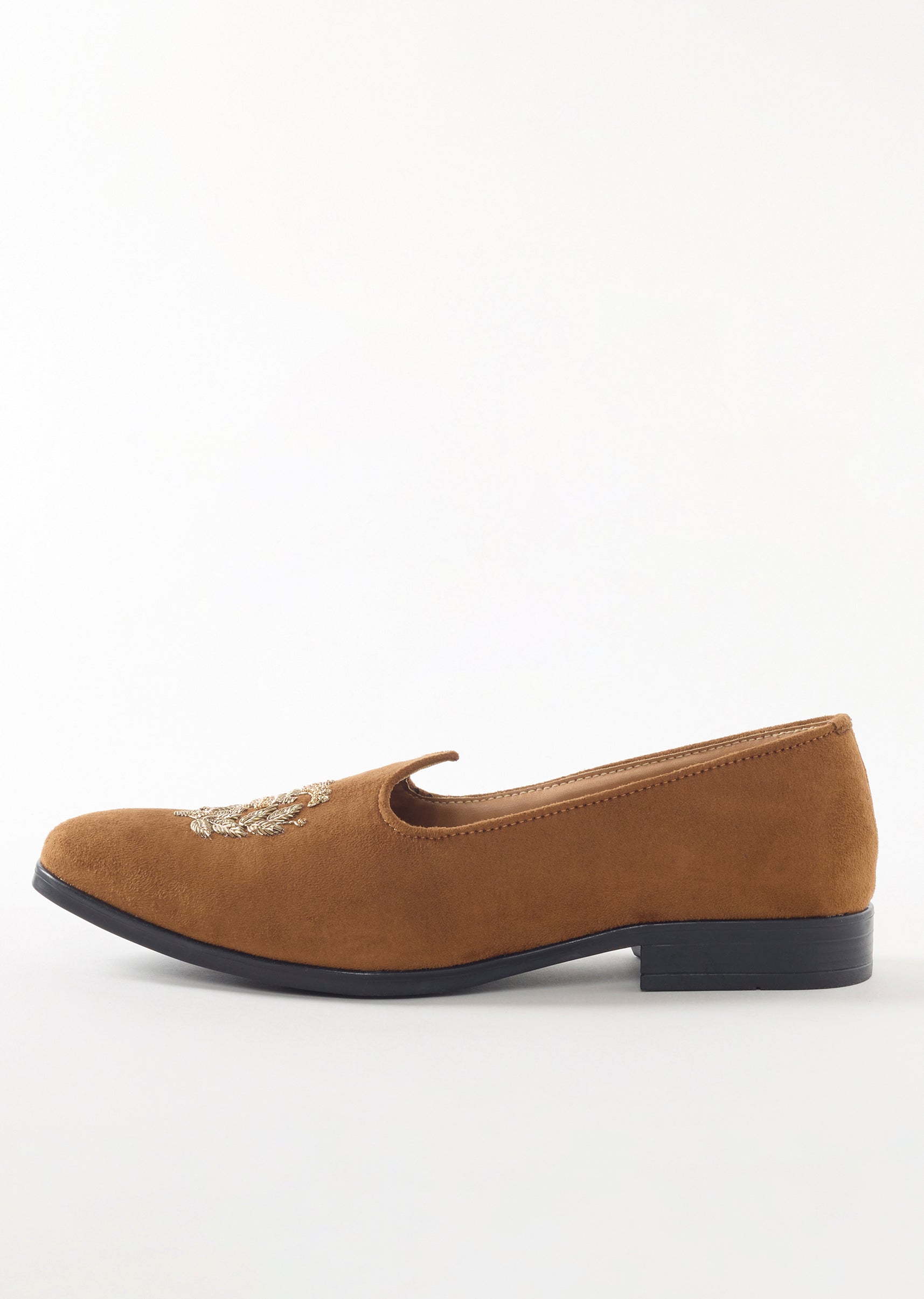 Brown Suede Ethnic Jutti With Metallic Embroidery For Men