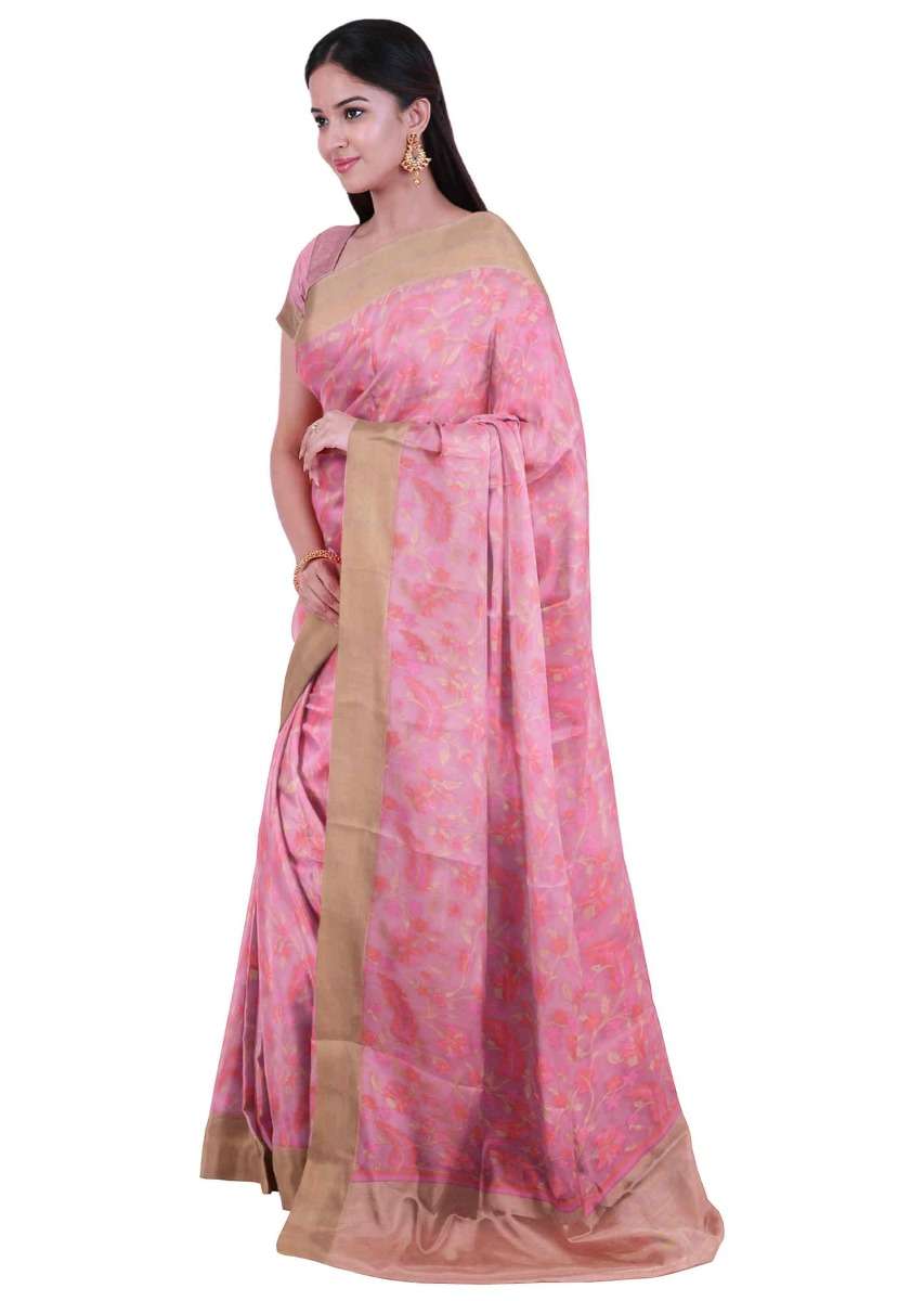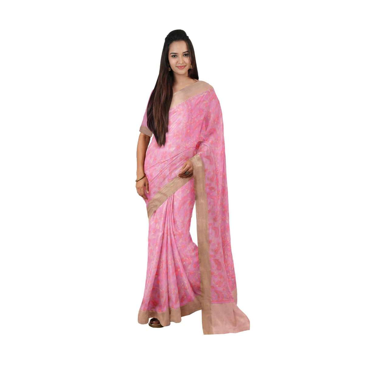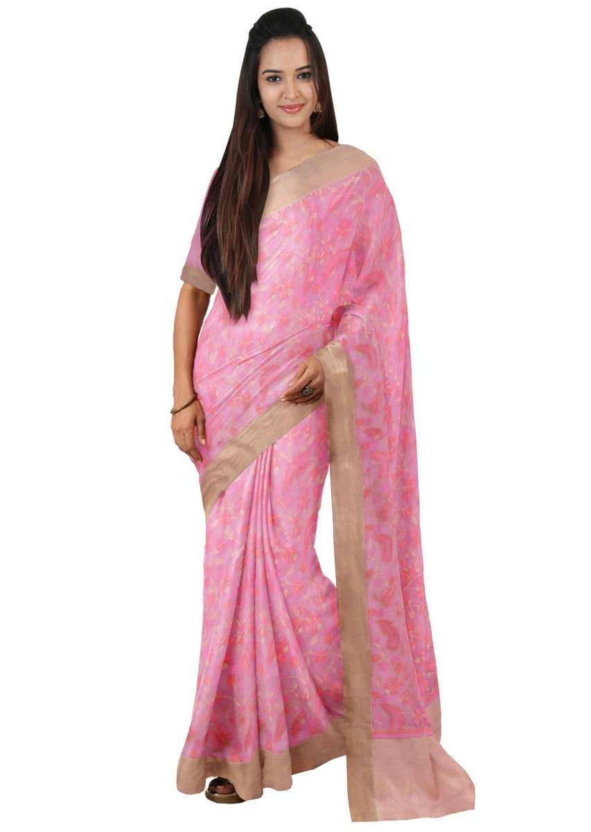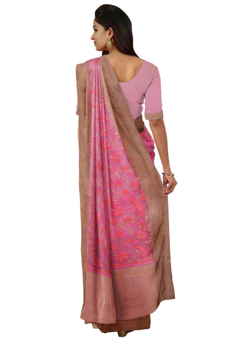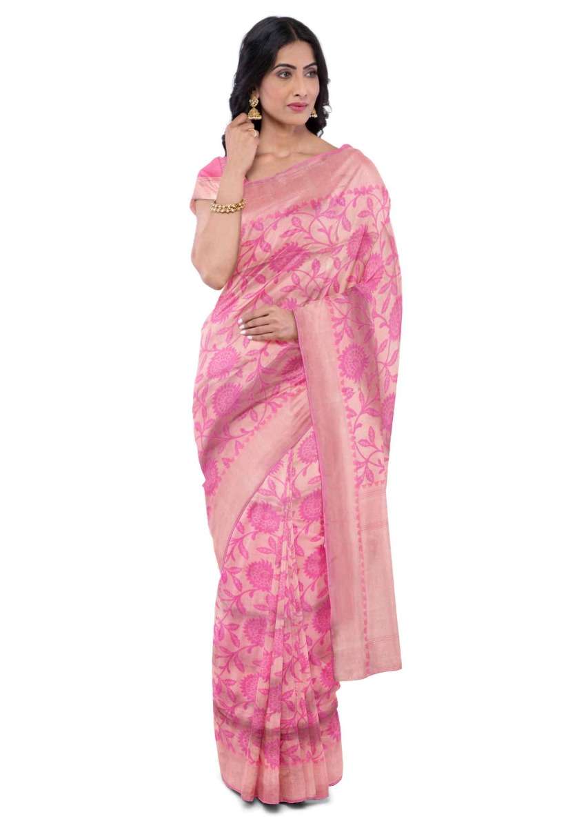 Bubblegum Pink Banarasi Saree With Matching Blouse Piece Online - Kalki Fashion