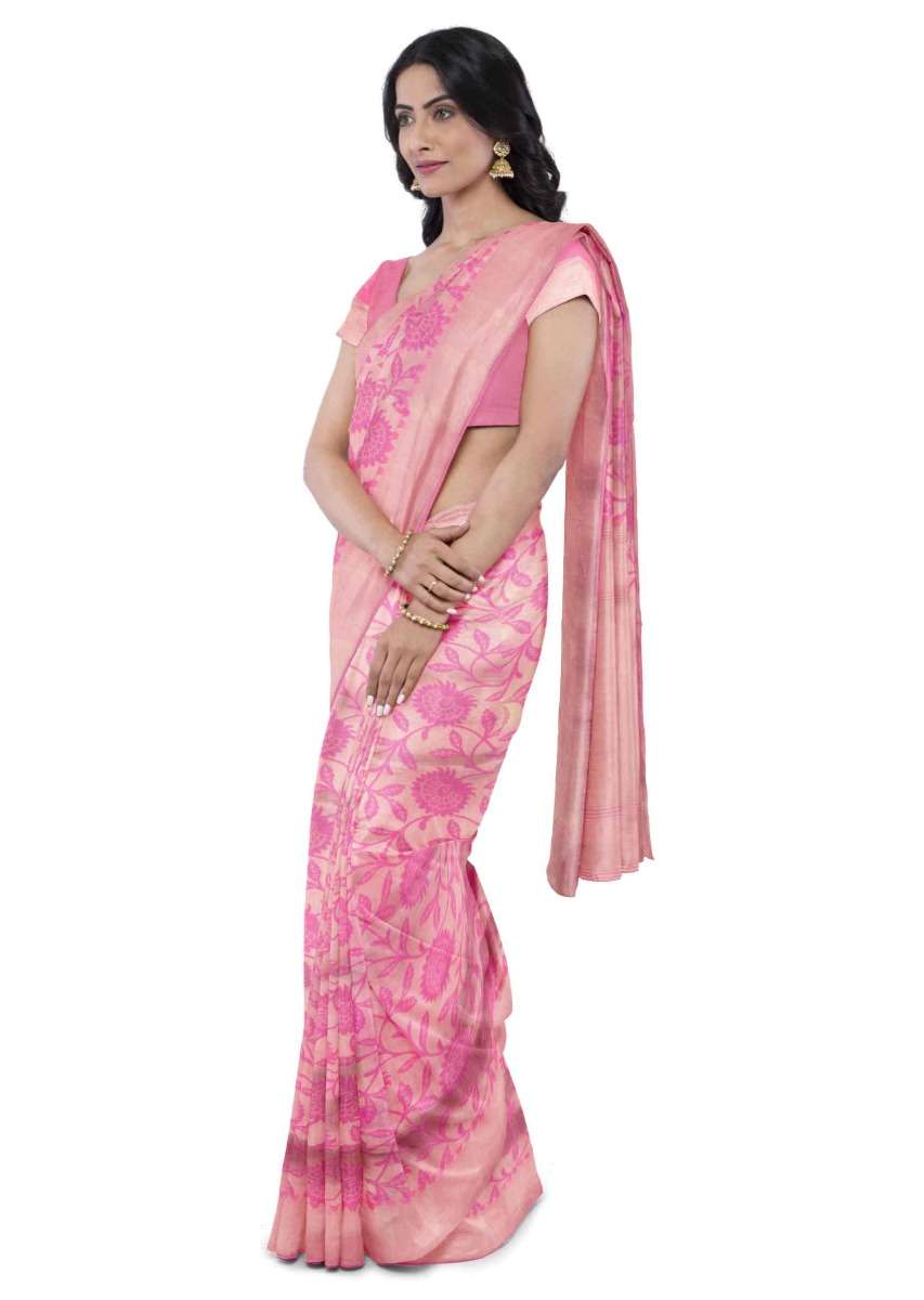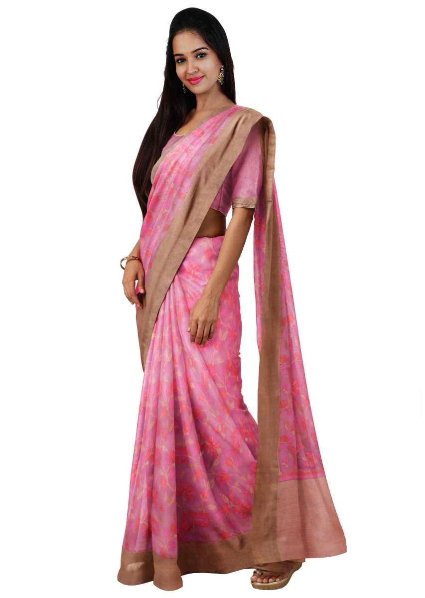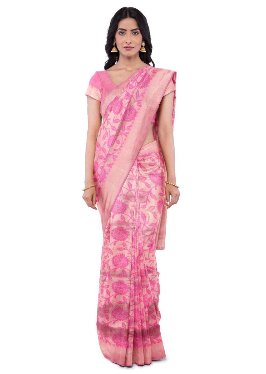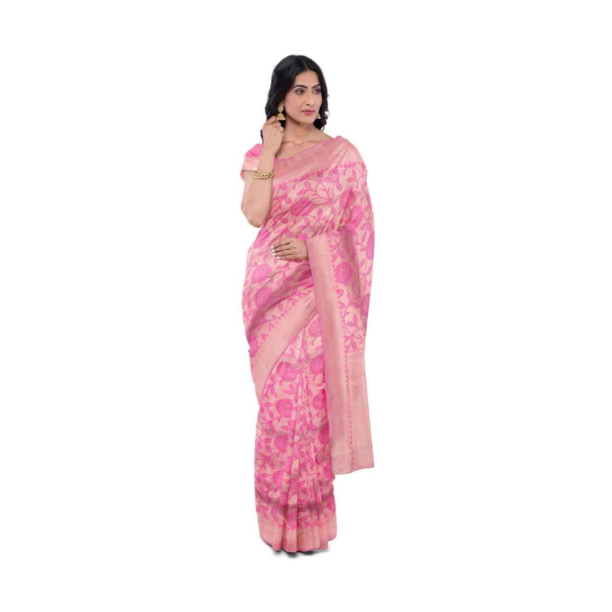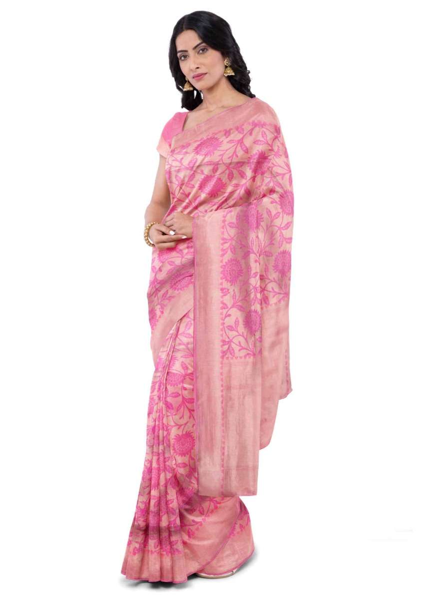 Bubblegum Pink Banarasi Saree With Matching Blouse Piece Online - Kalki Fashion
