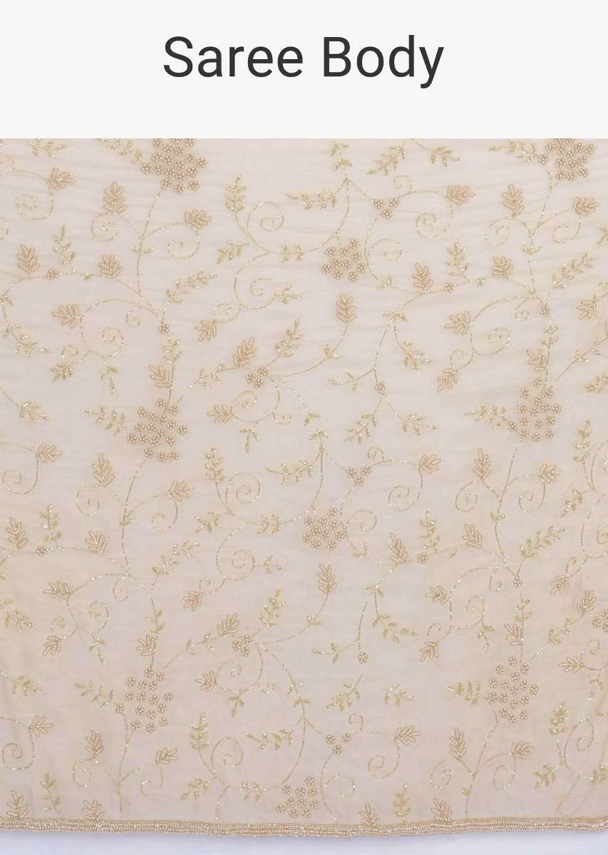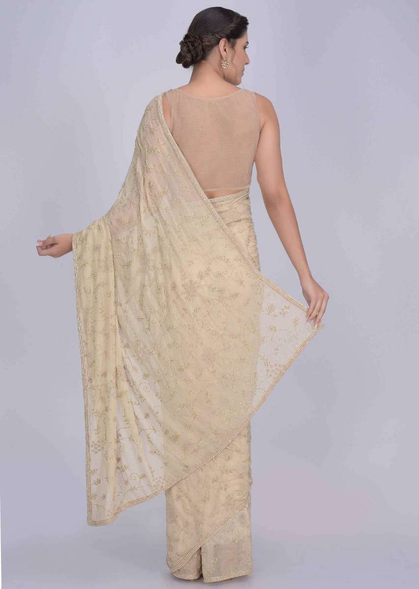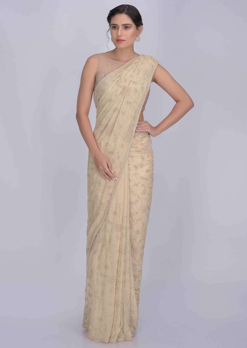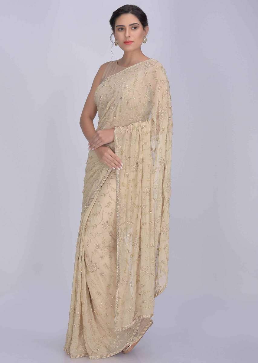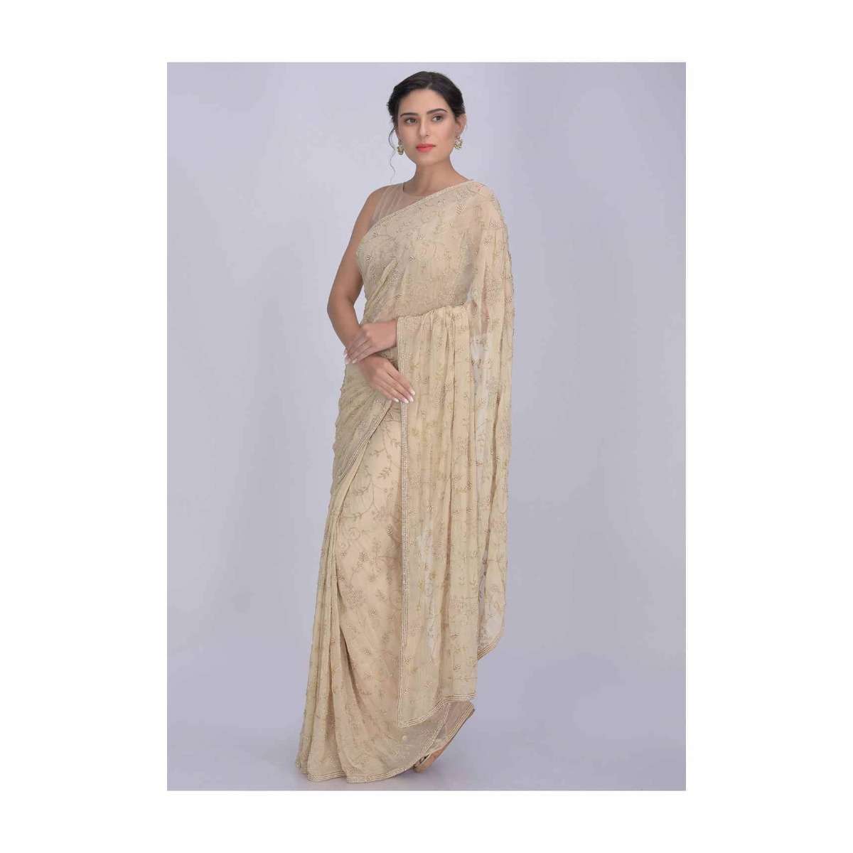 Buttermilk Beige Saree In Shimmer Georgette With Matching Blouse Piece Online - Kalki Fashion