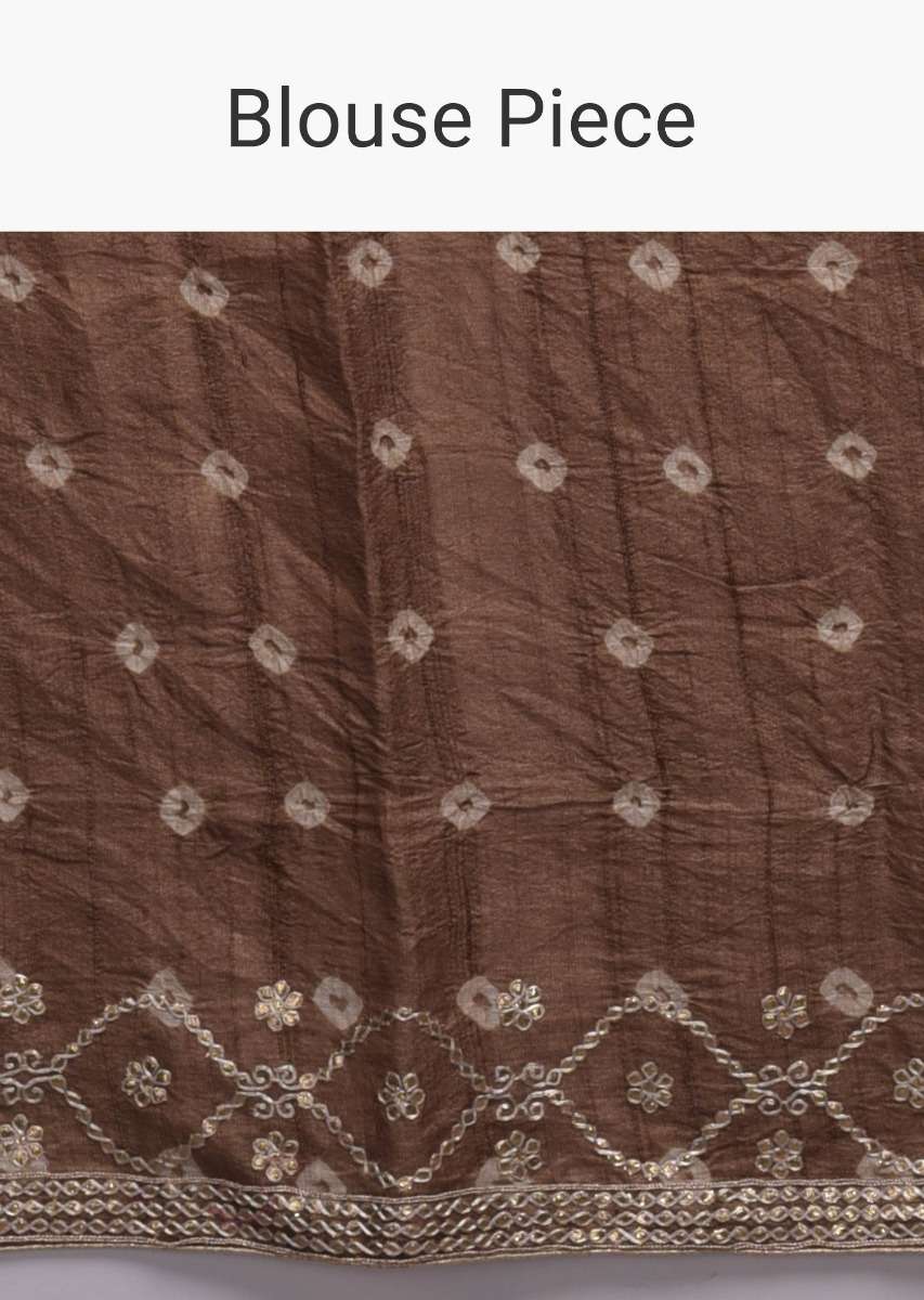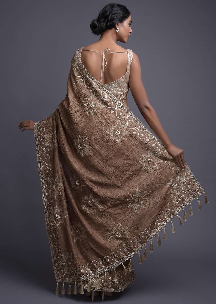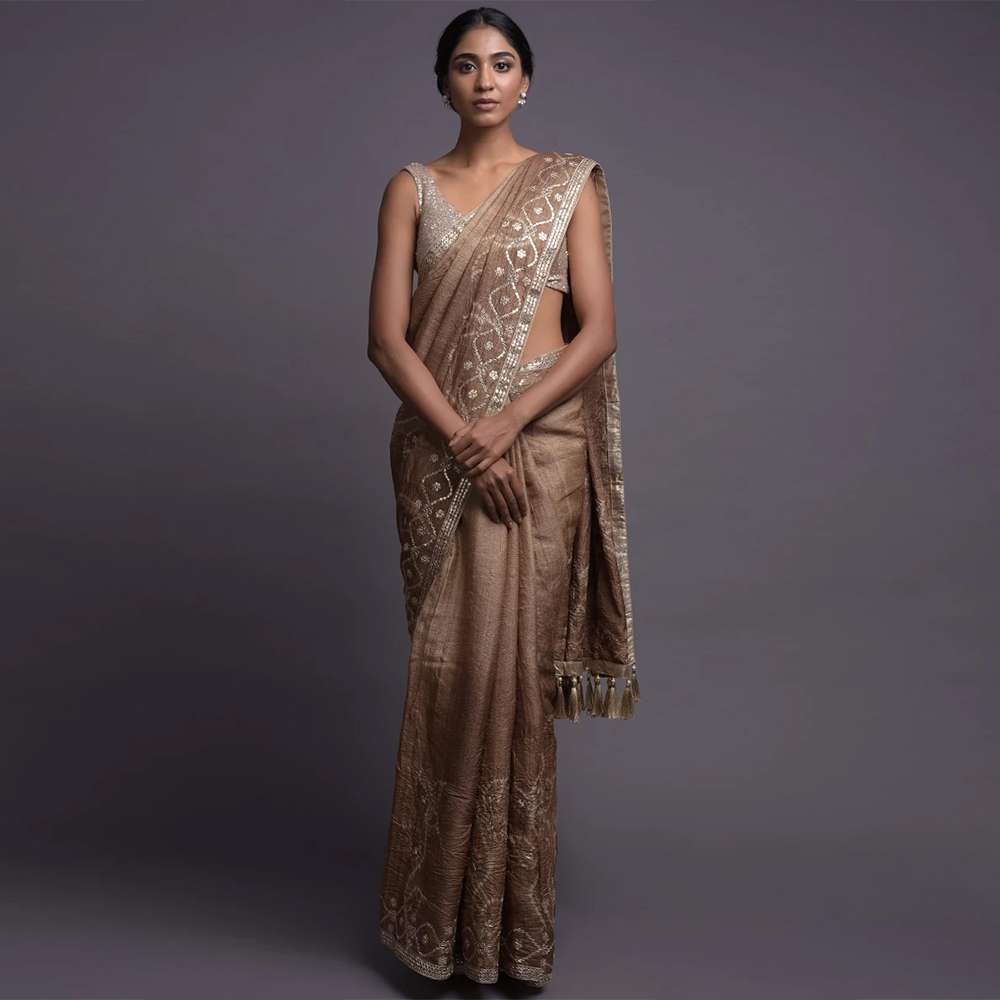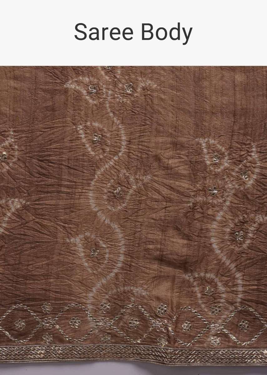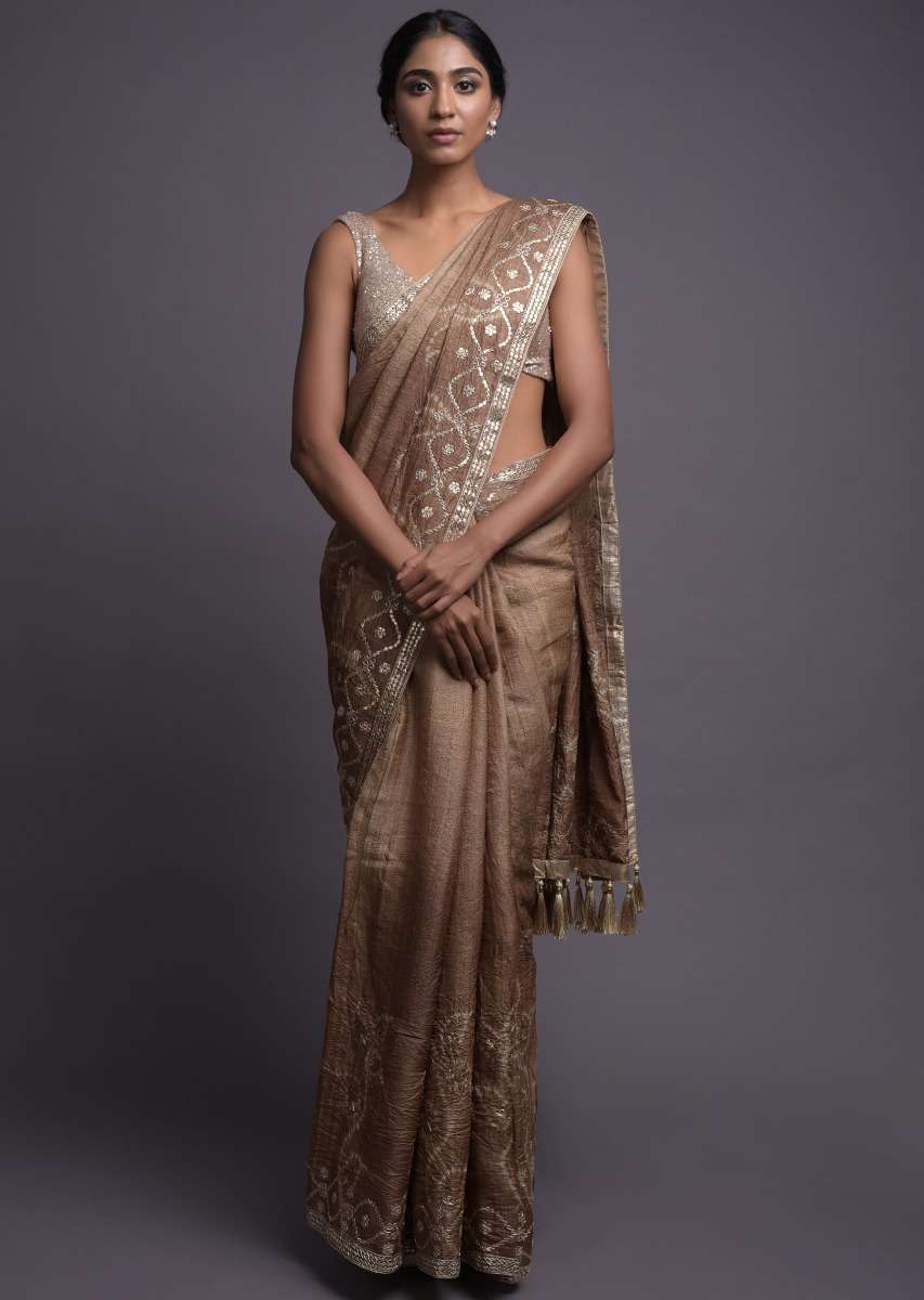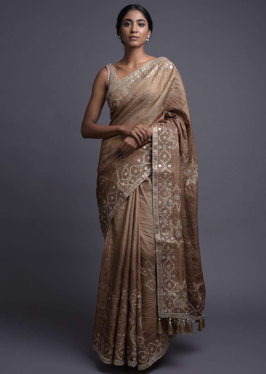 Cappuccino Beige Shaded Bandhani Saree In Tussar Silk With Gotta Work Online - Kalki Fashion