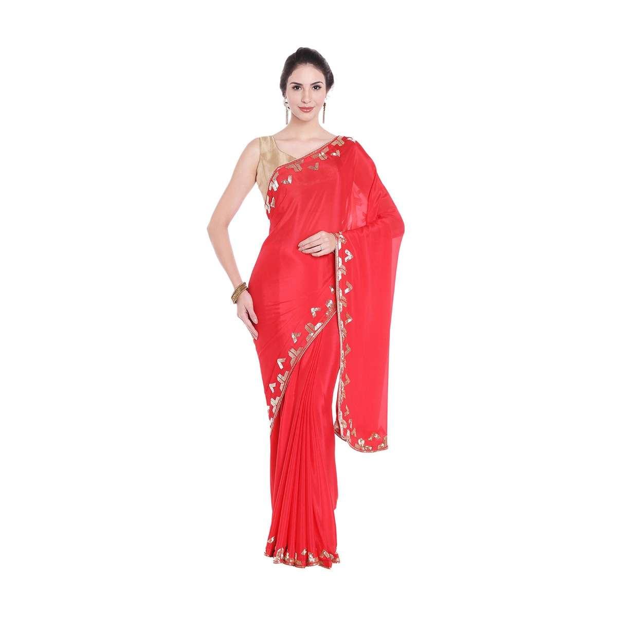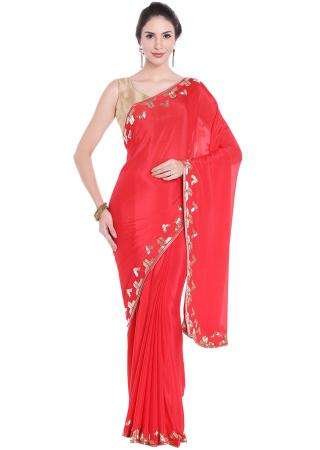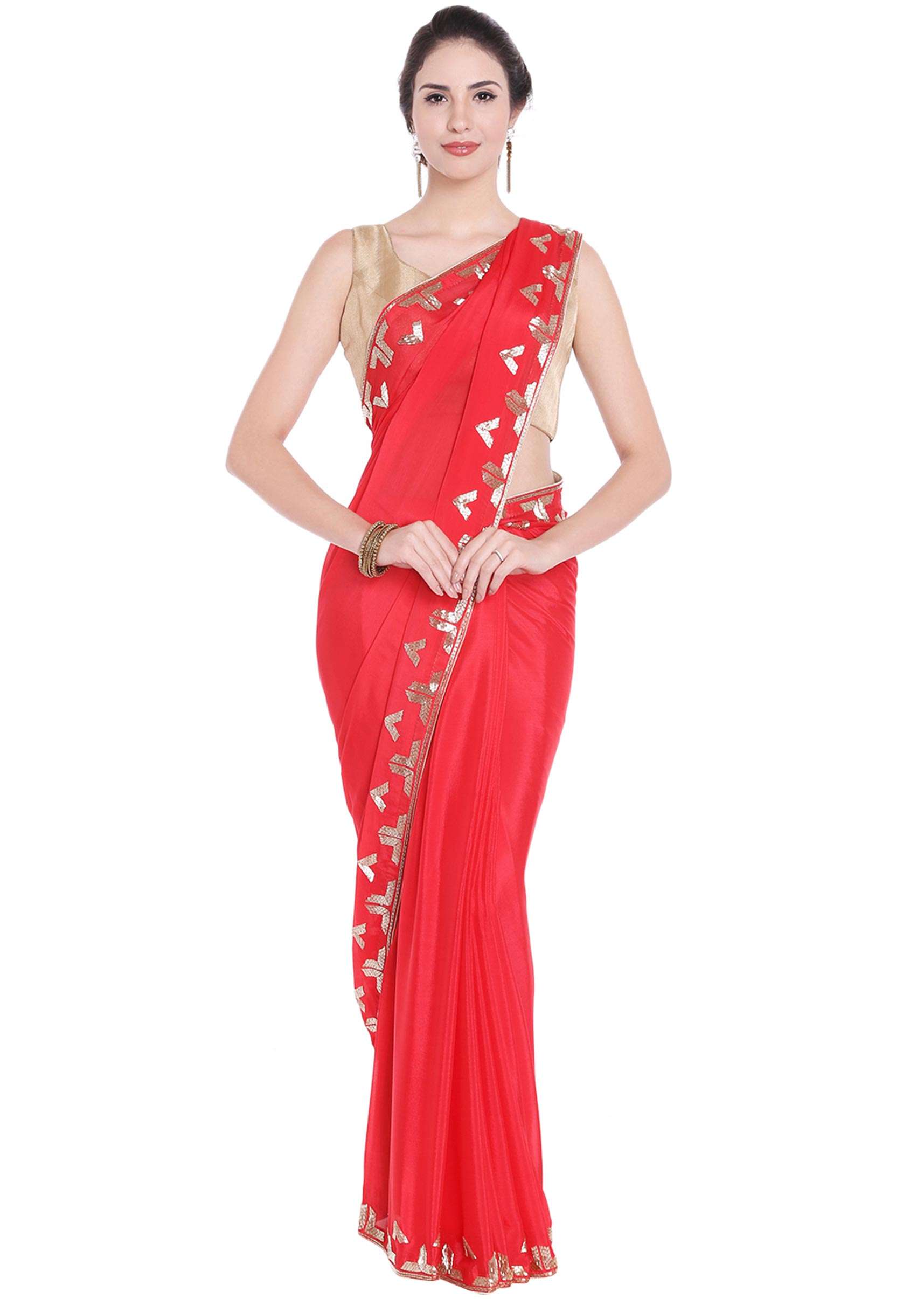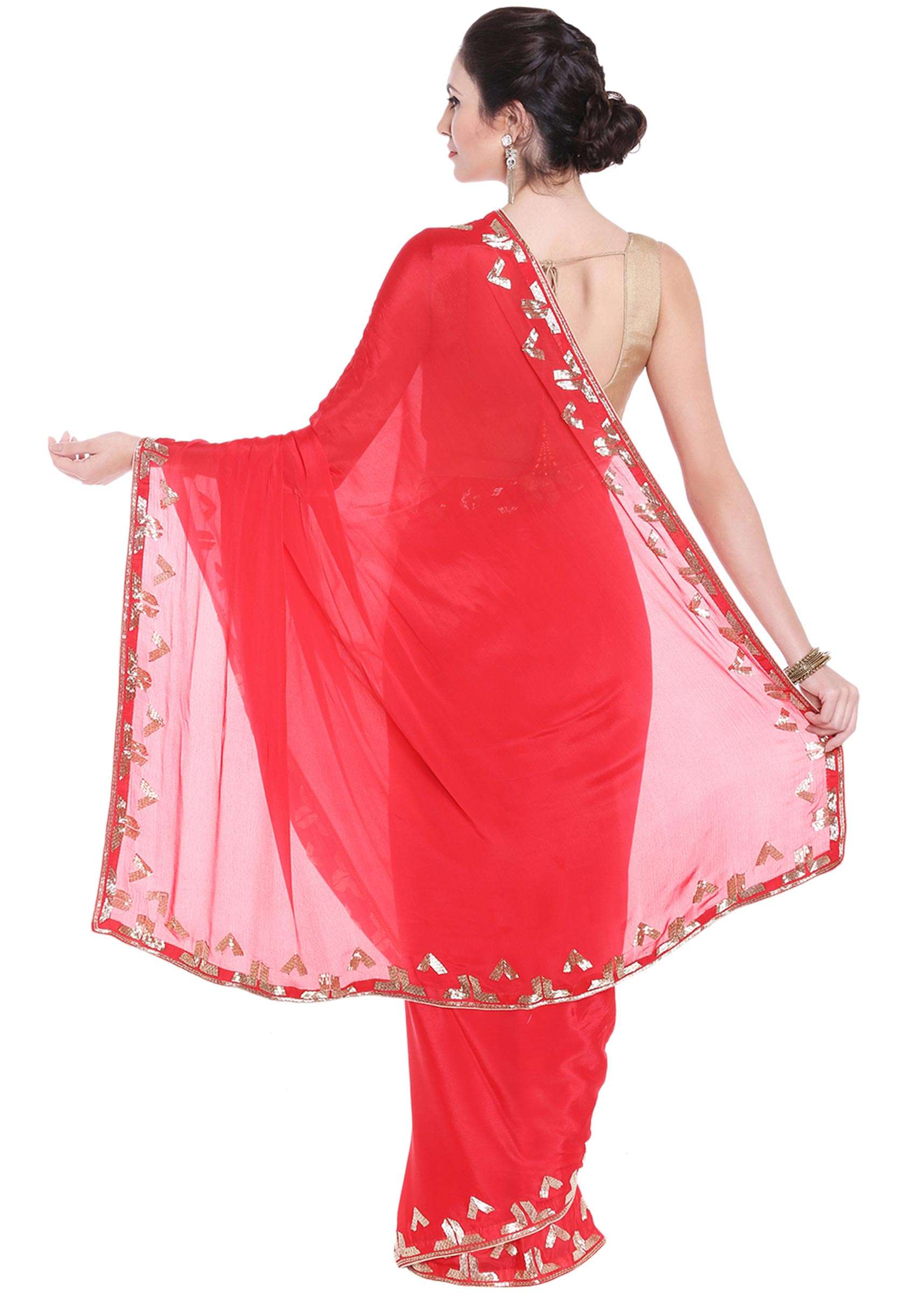 Cherry Red Saree In Cut Dana Embroidered Border Online - Kalki Fashion
