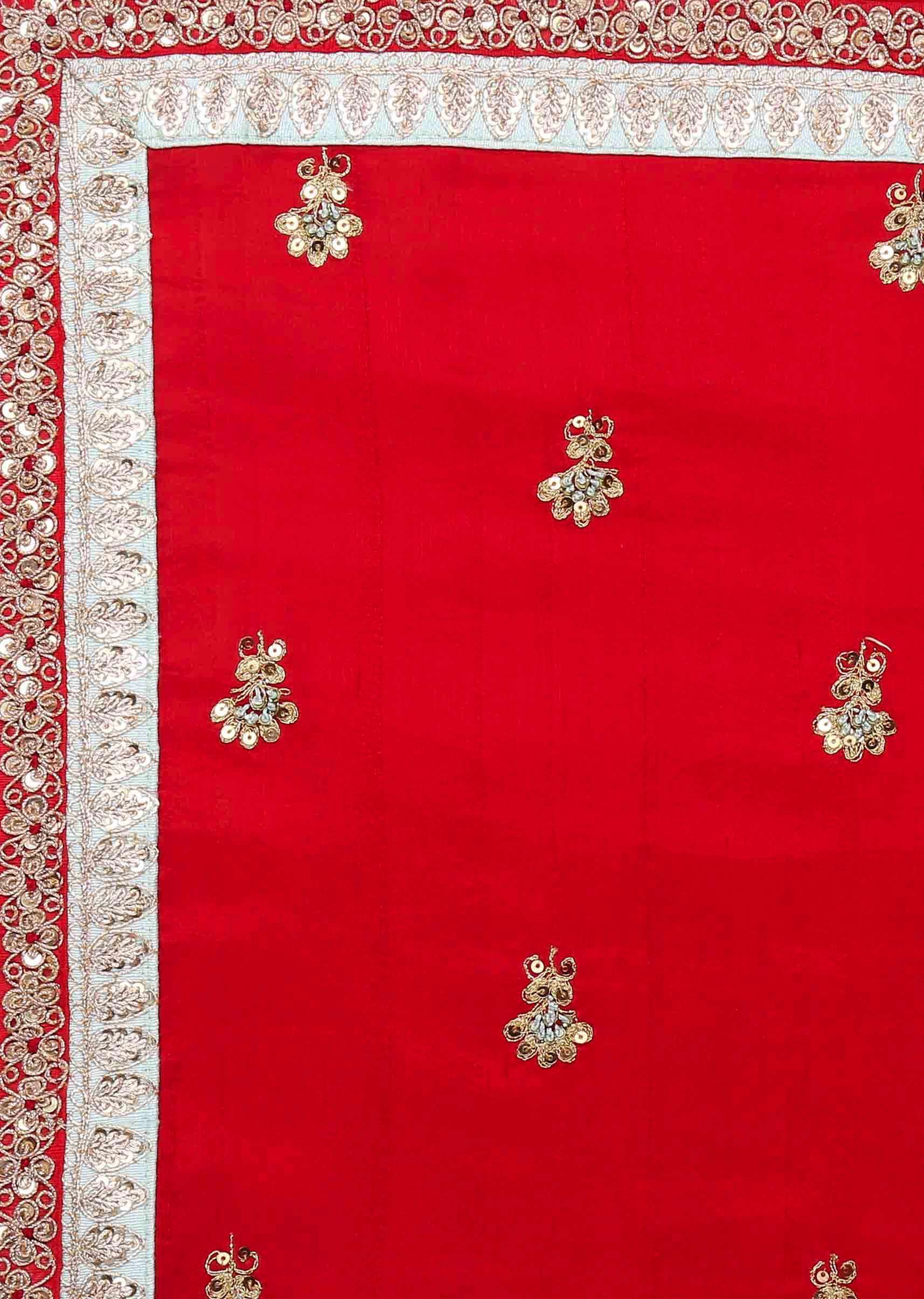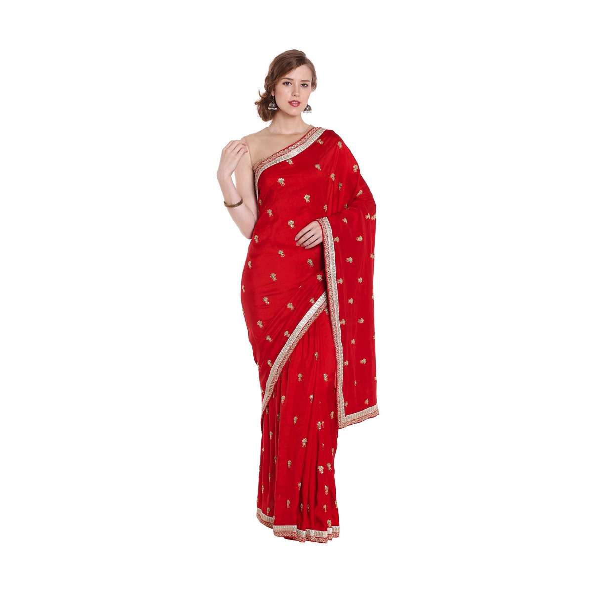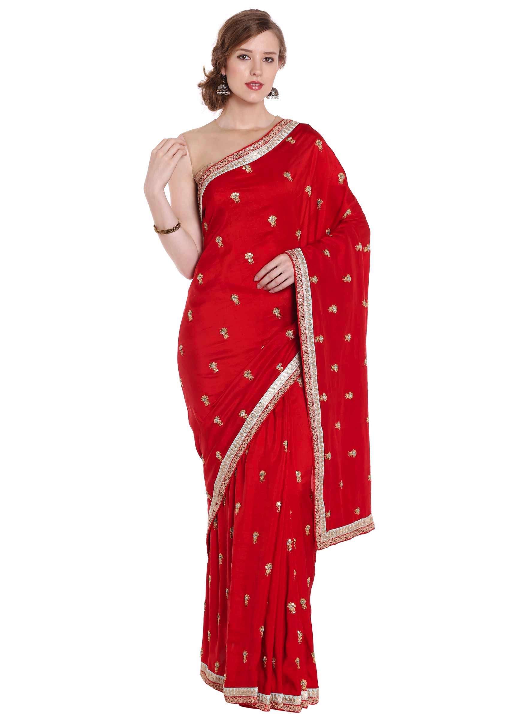 Cherry red silk saree adorn in zari butti and border only on Kalki