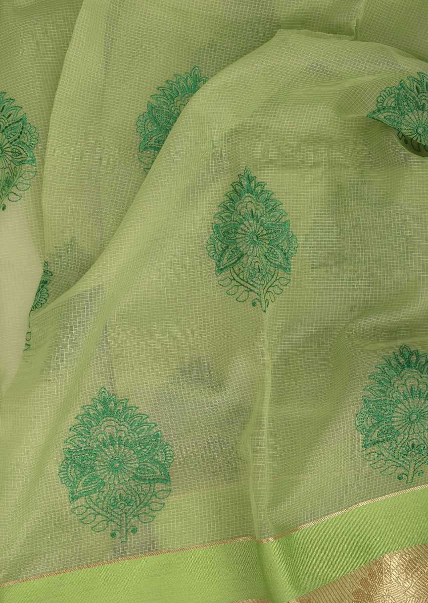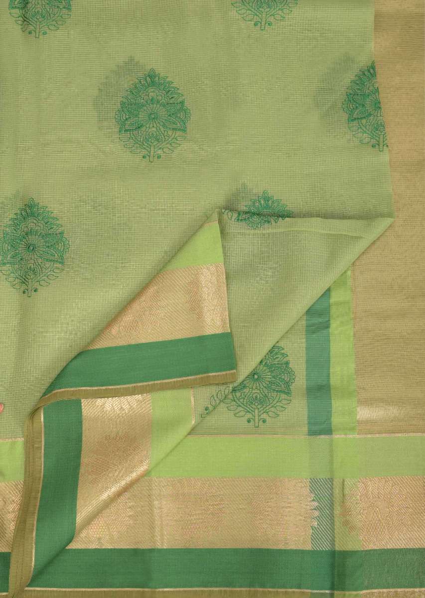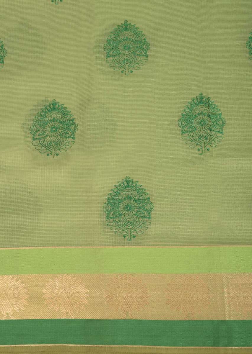 Citrus Green Banarasi Saree In Jacquard Silk With Weaved Floral Buttis All Over Online - Kalki Fashion