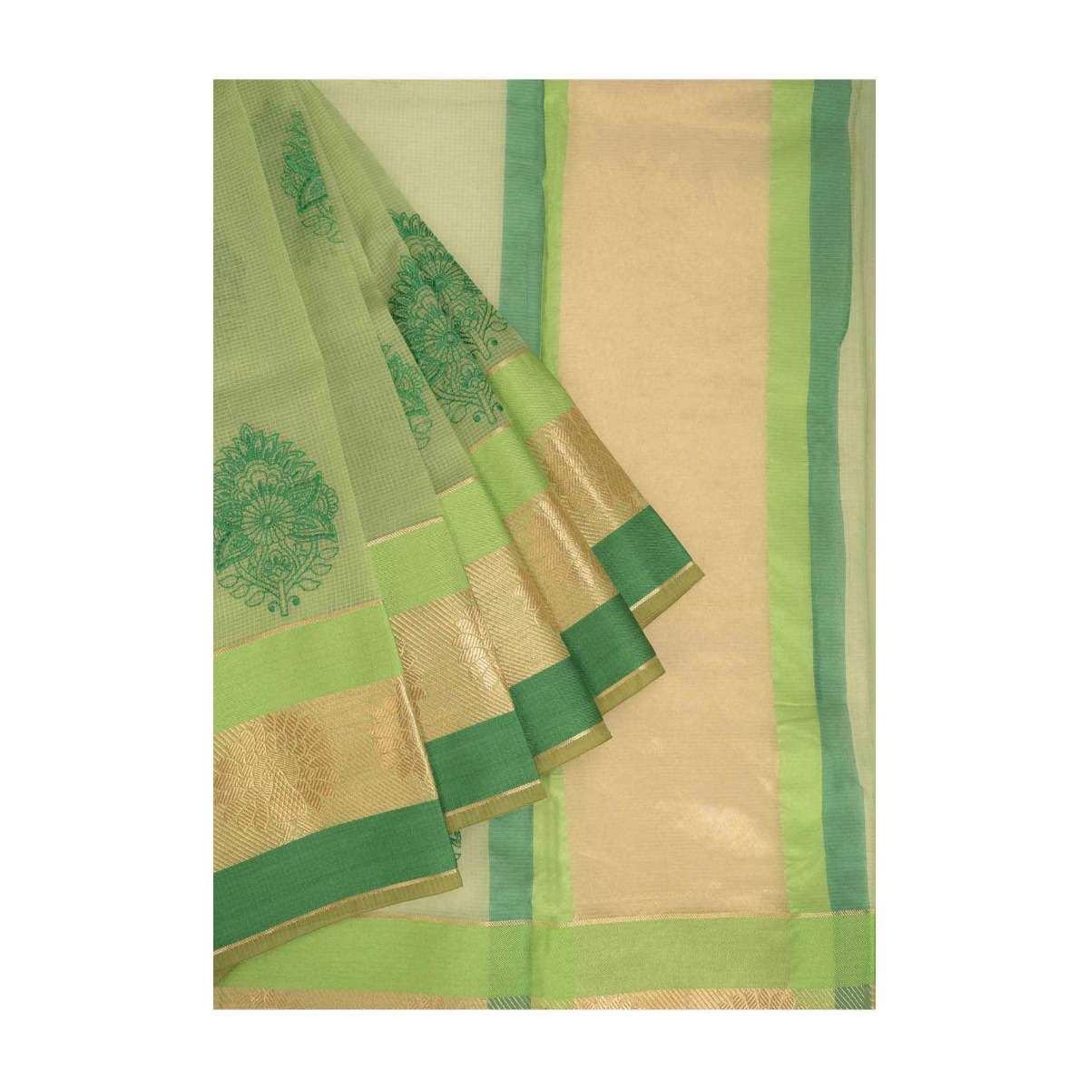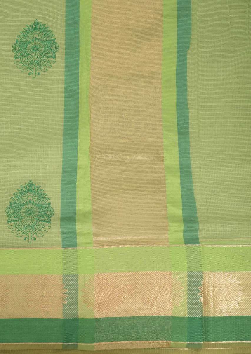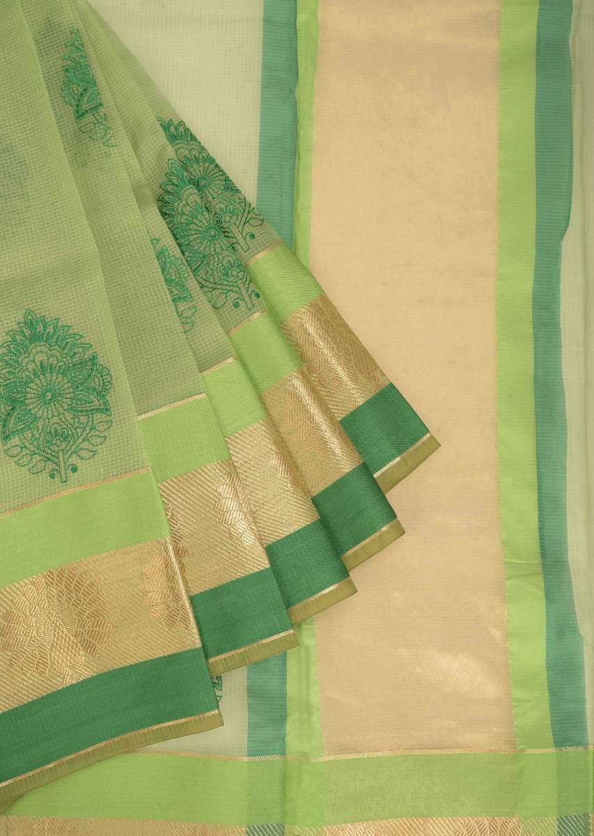 Citrus Green Banarasi Saree In Jacquard Silk With Weaved Floral Buttis All Over Online - Kalki Fashion