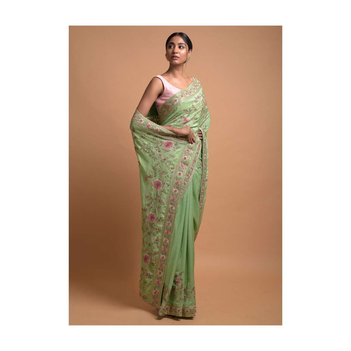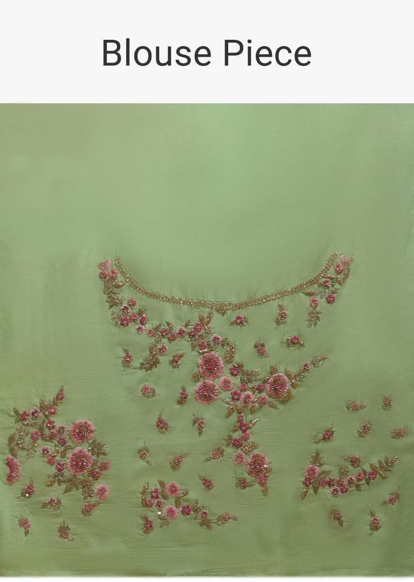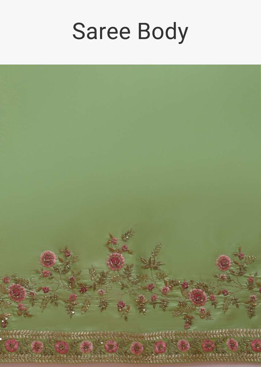 Citrus Green Saree In Silk With Resham Embroidered Floral Pattern Online - Kalki Fashion