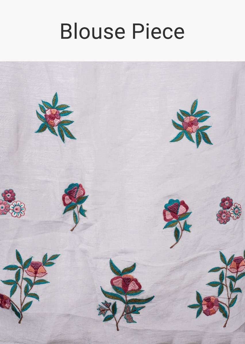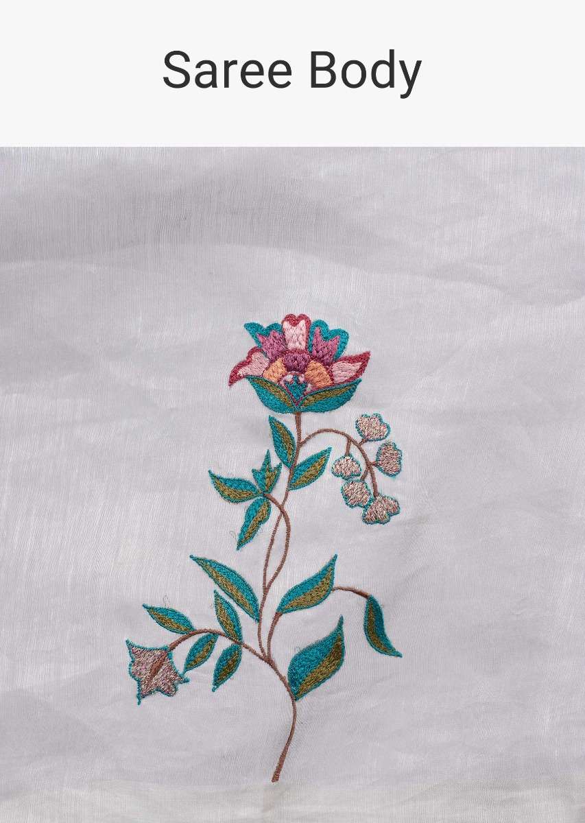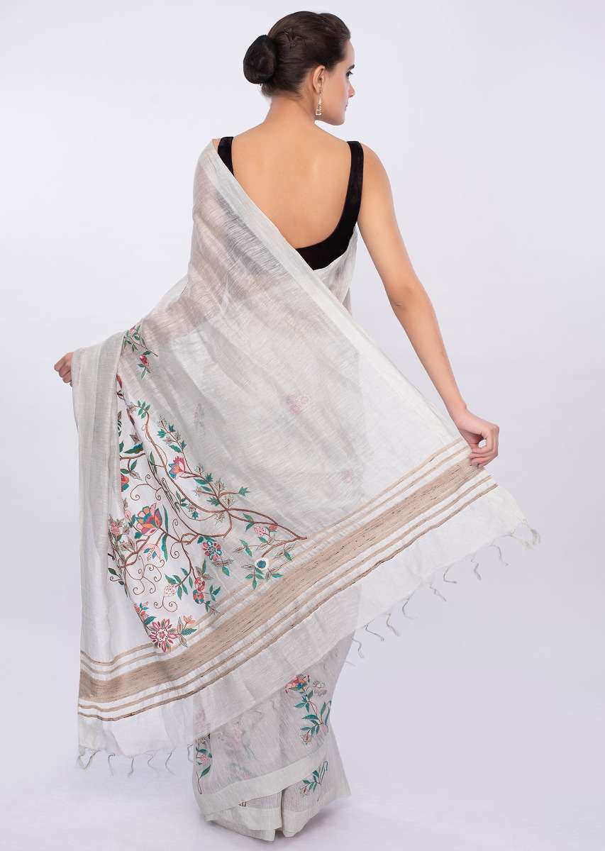 Cloud Grey Saree In Linen With Floral Embroidery And Butti Online - Kalki Fashion