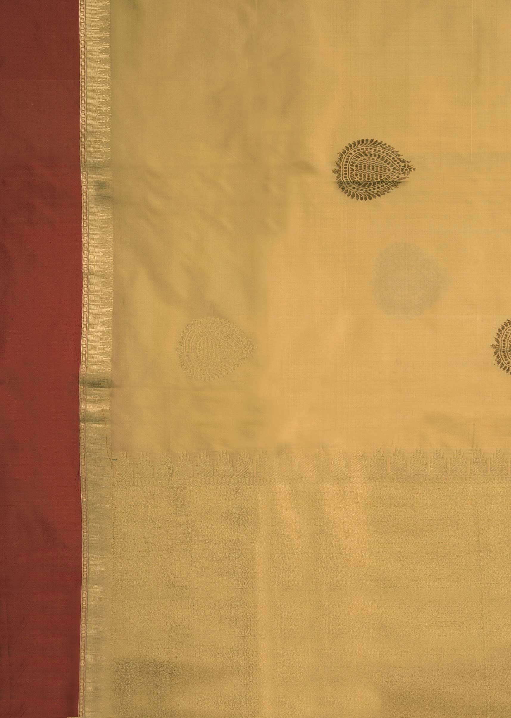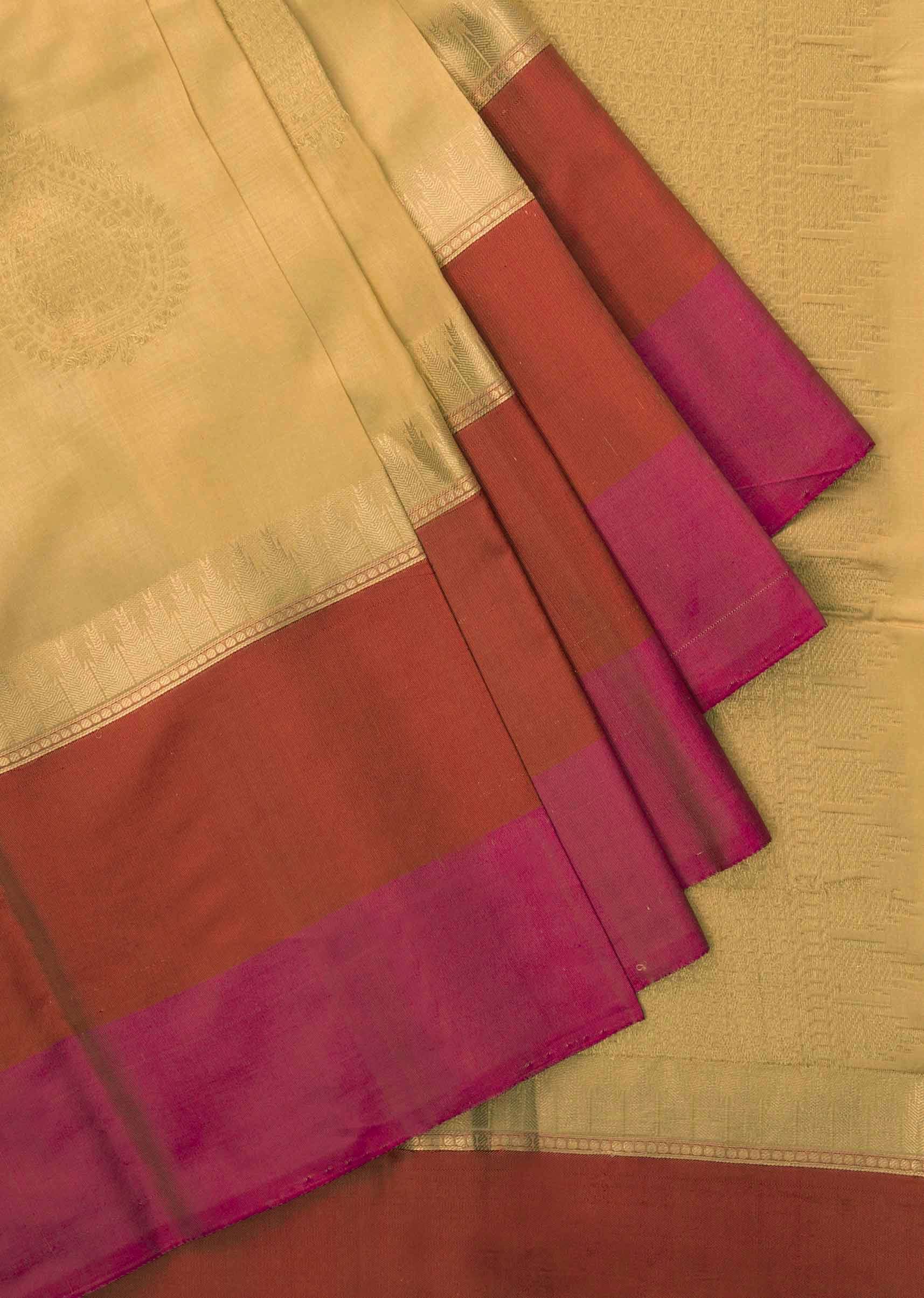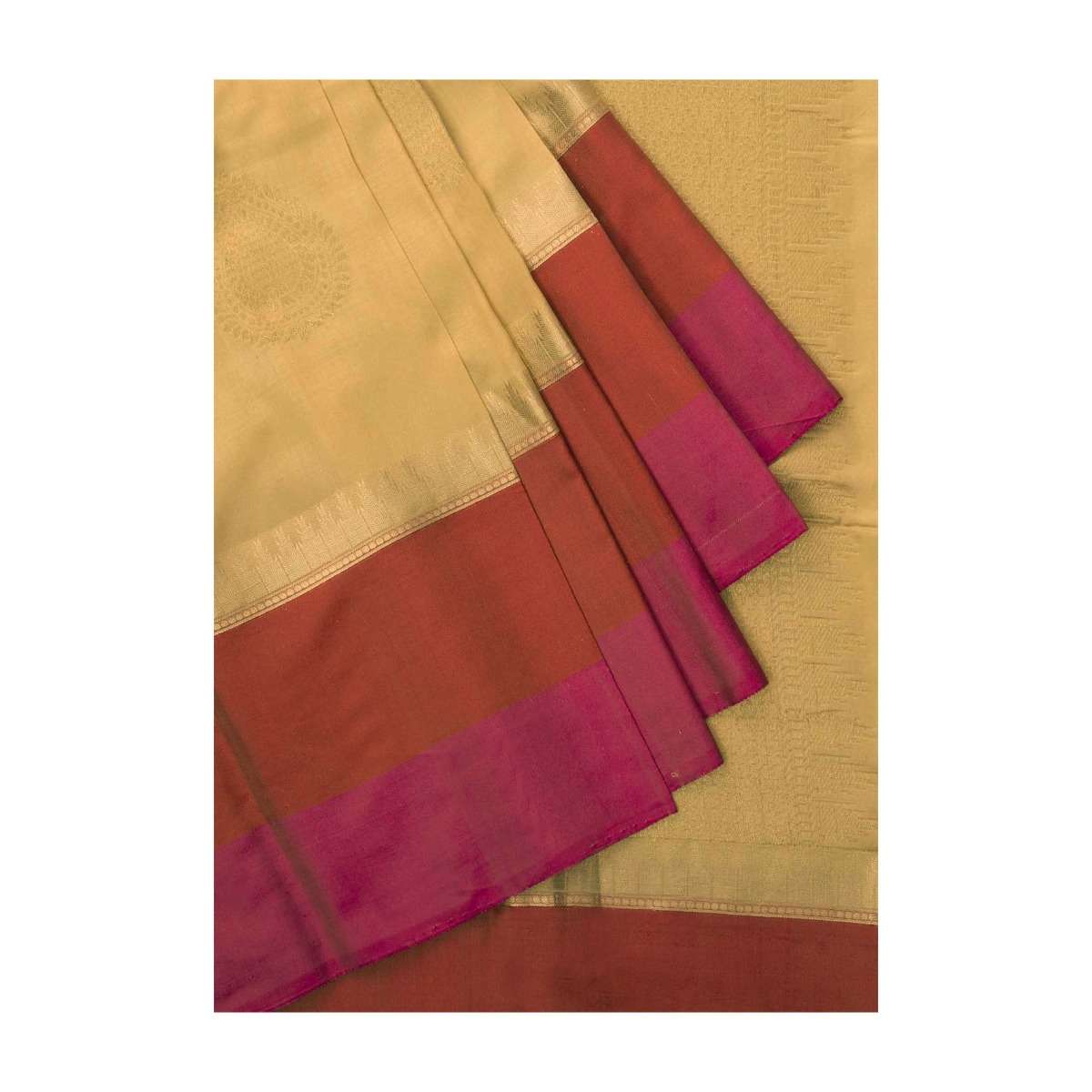 Cream And Pink Saree In Silk With Weaved Pattern Online - Kalki Fashion