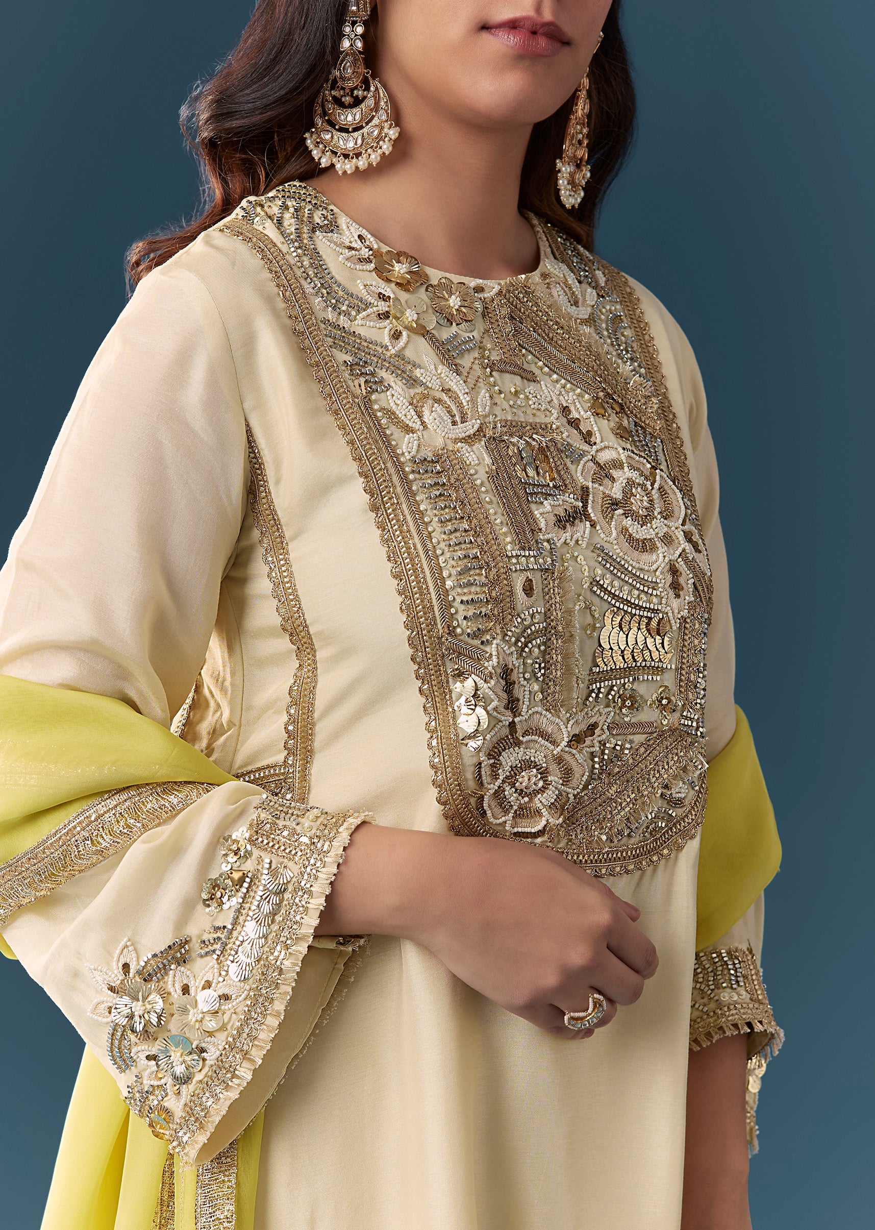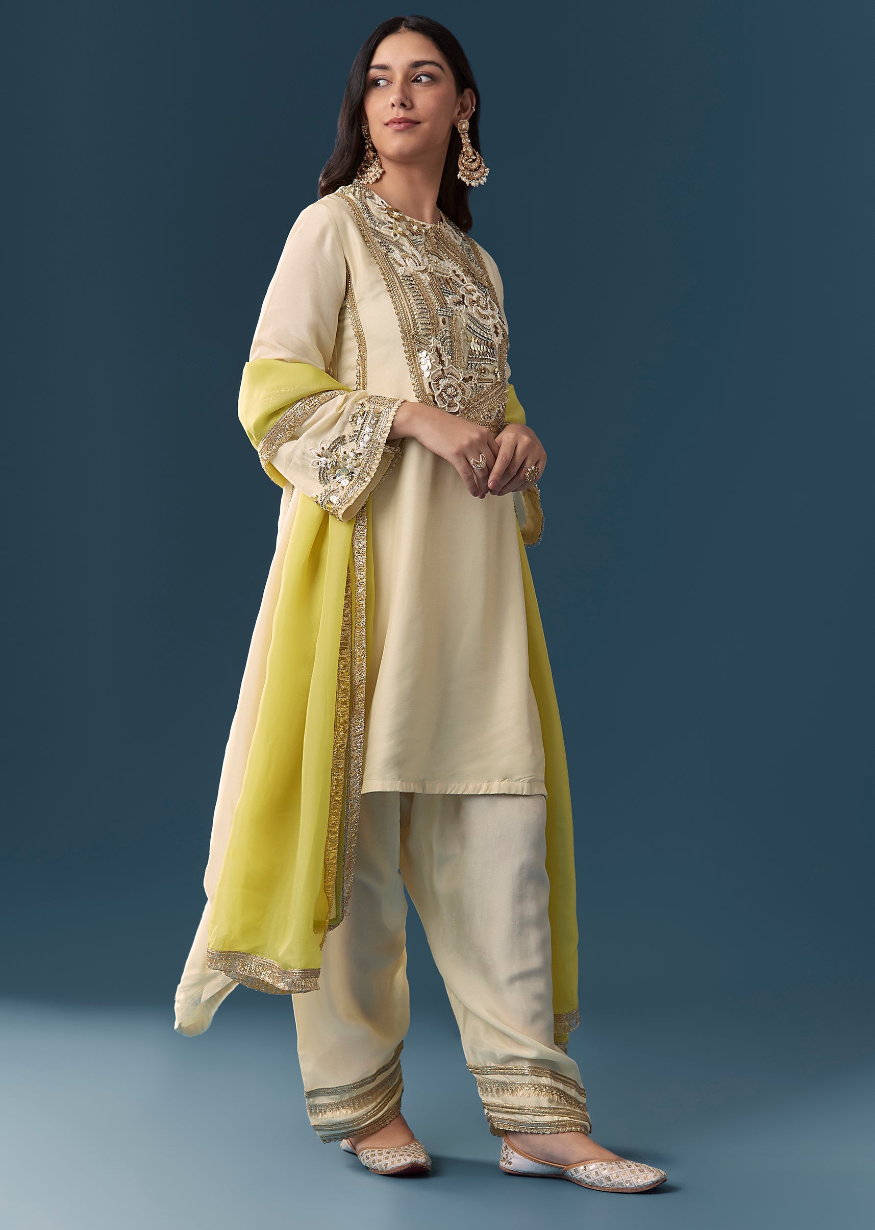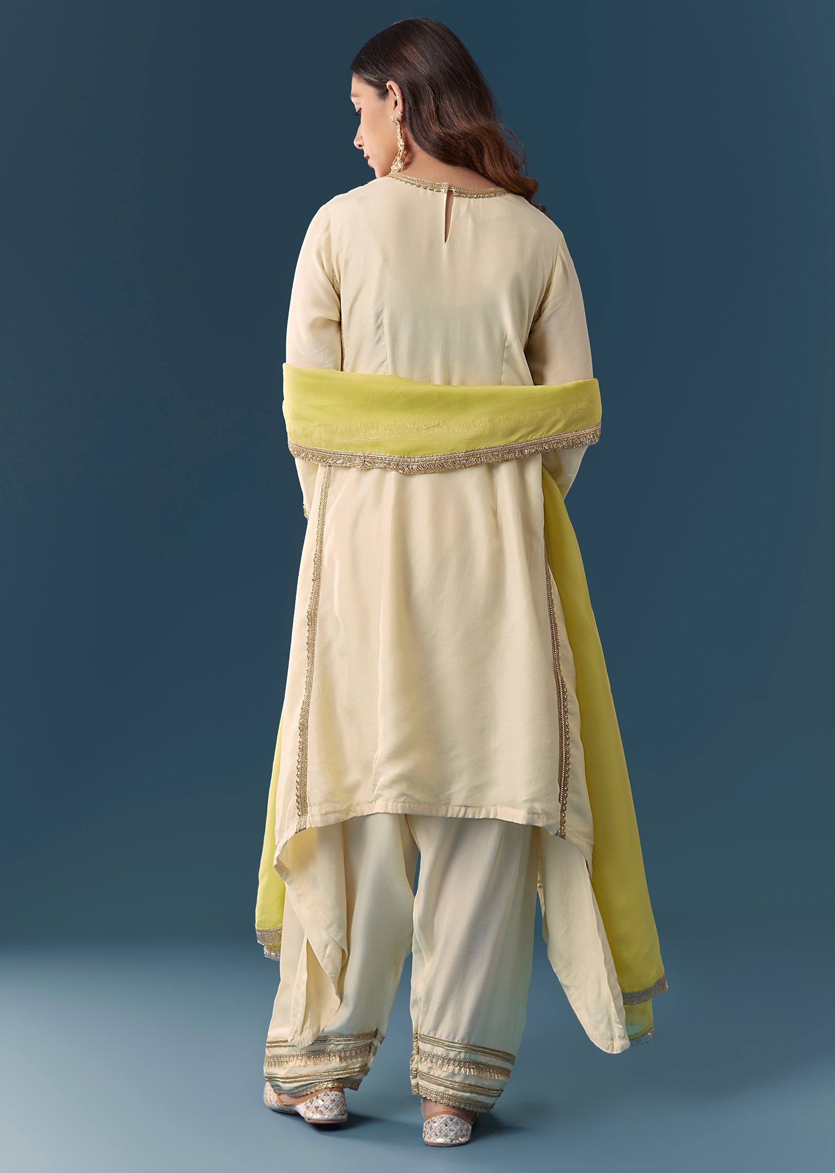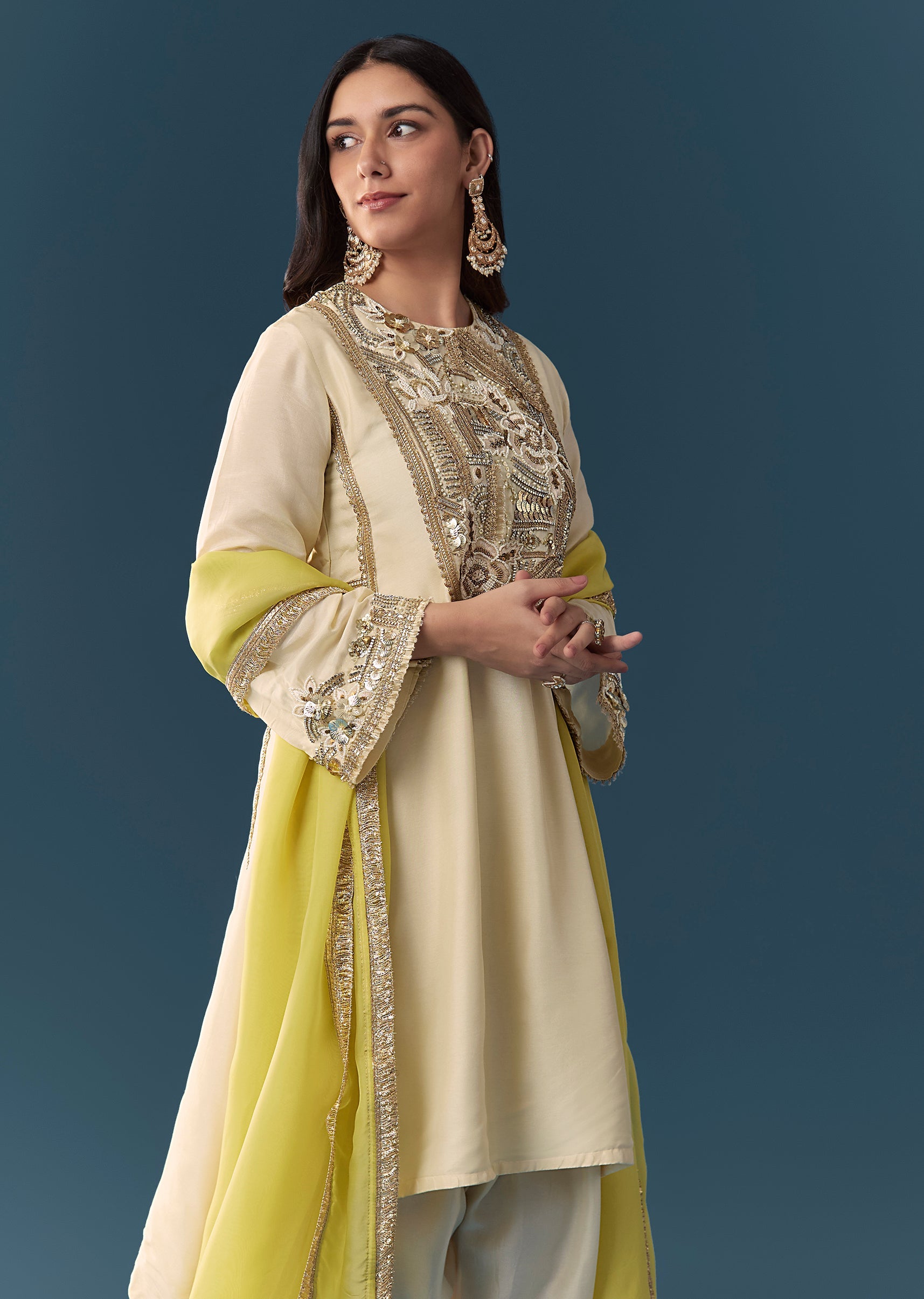 Cream Green Ombre Dupatta Kurta Set With Pant
