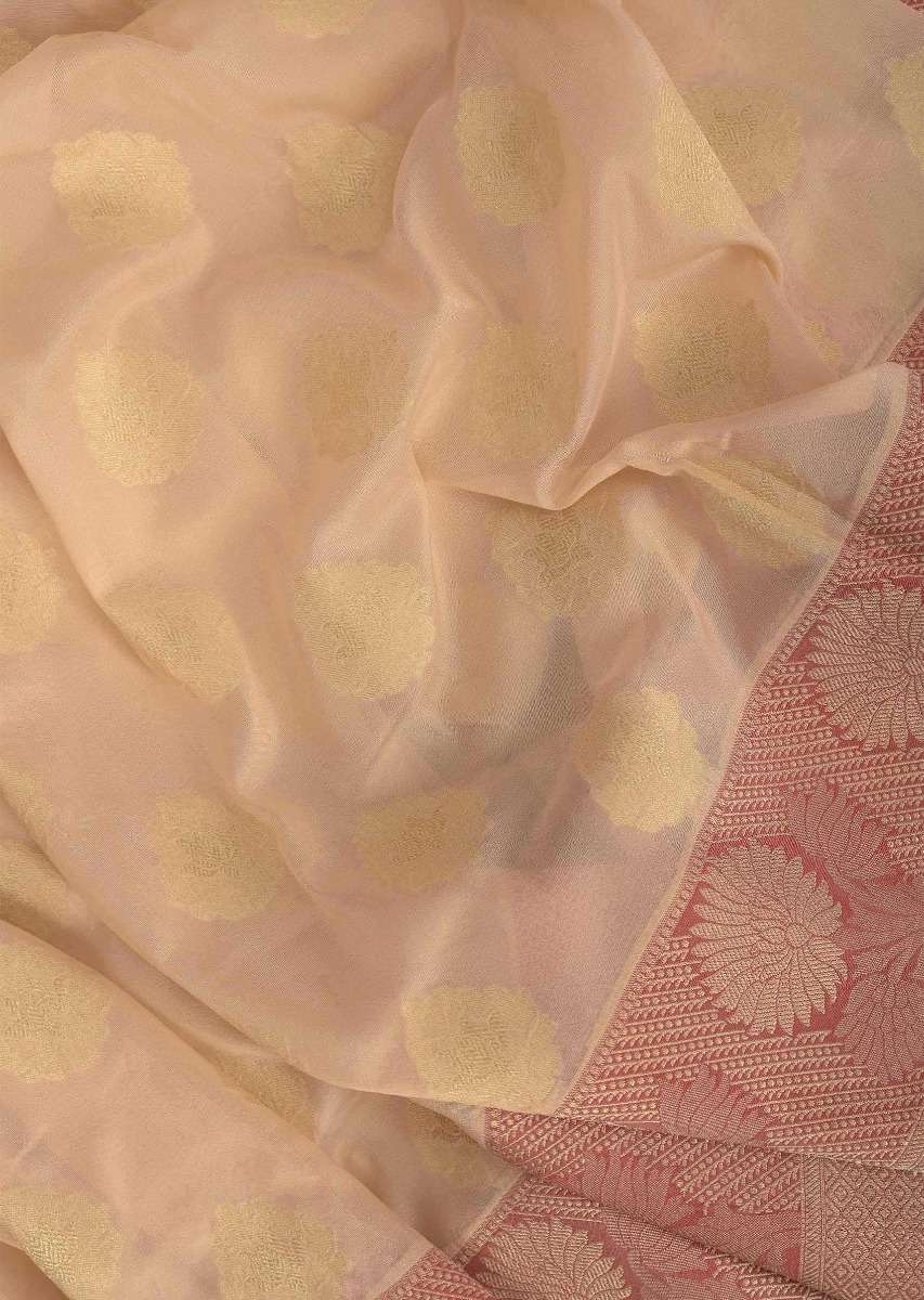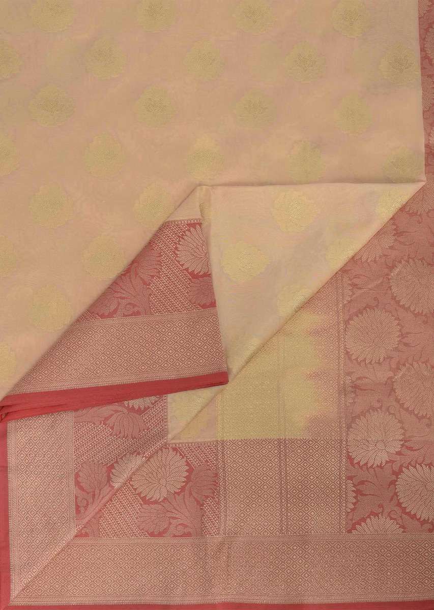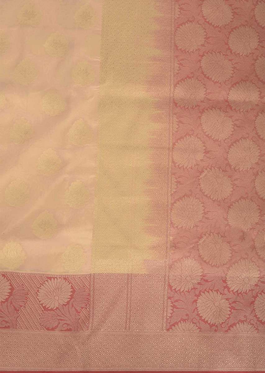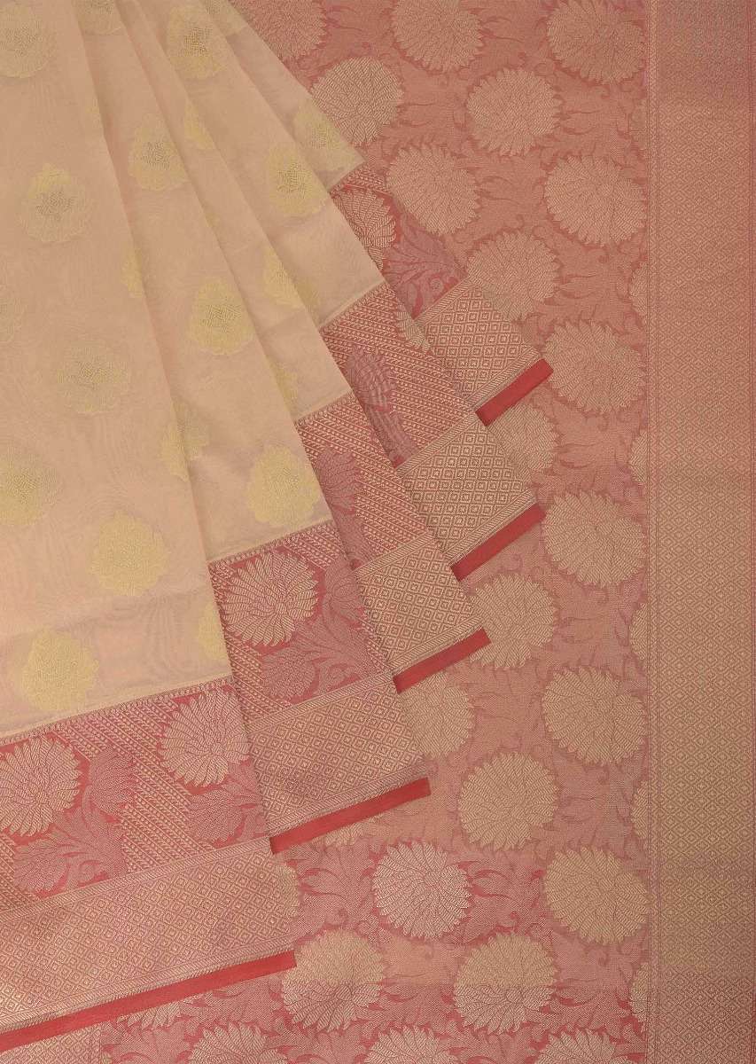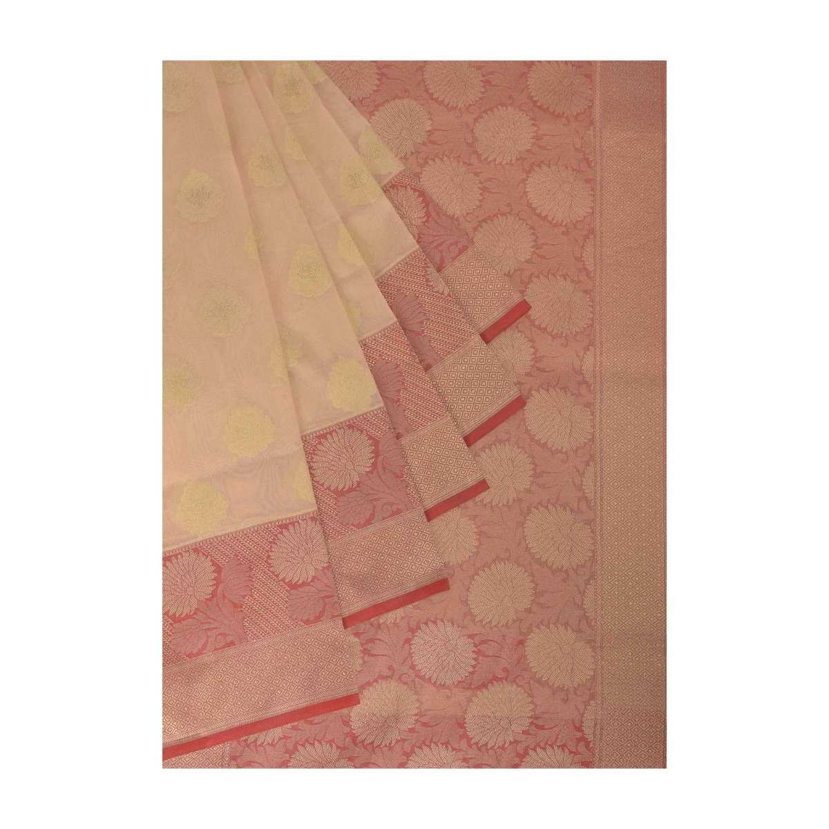 Cream Saree In Banarasi Silk With Floral Buttis All Over Online - Kalki Fashion