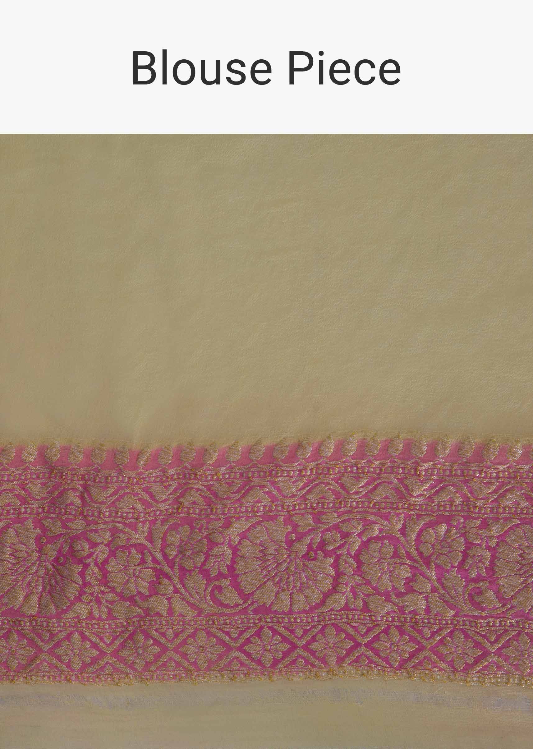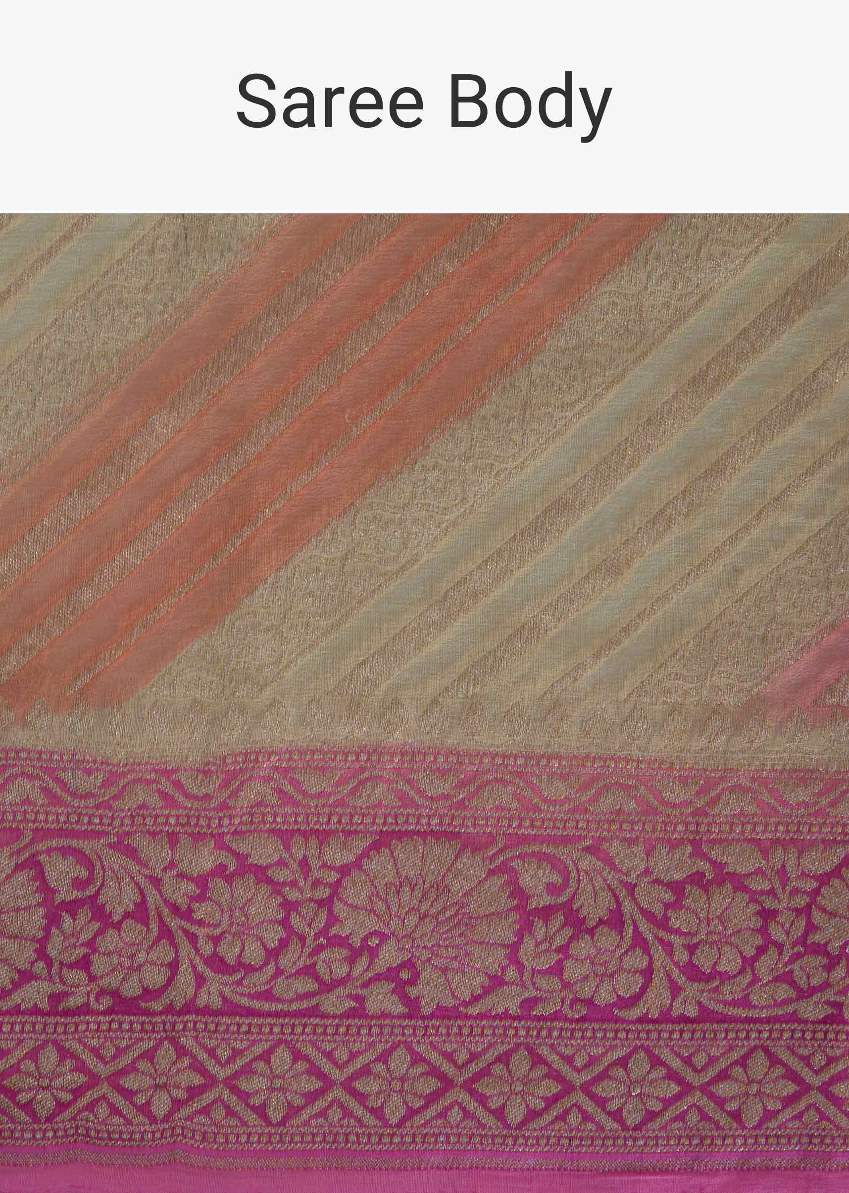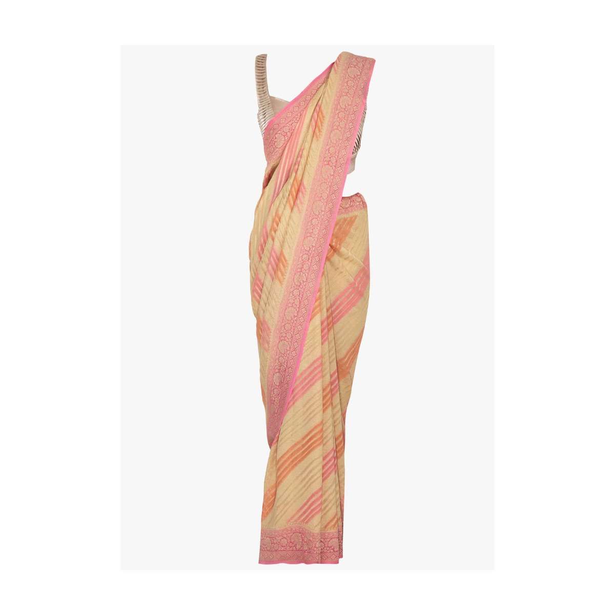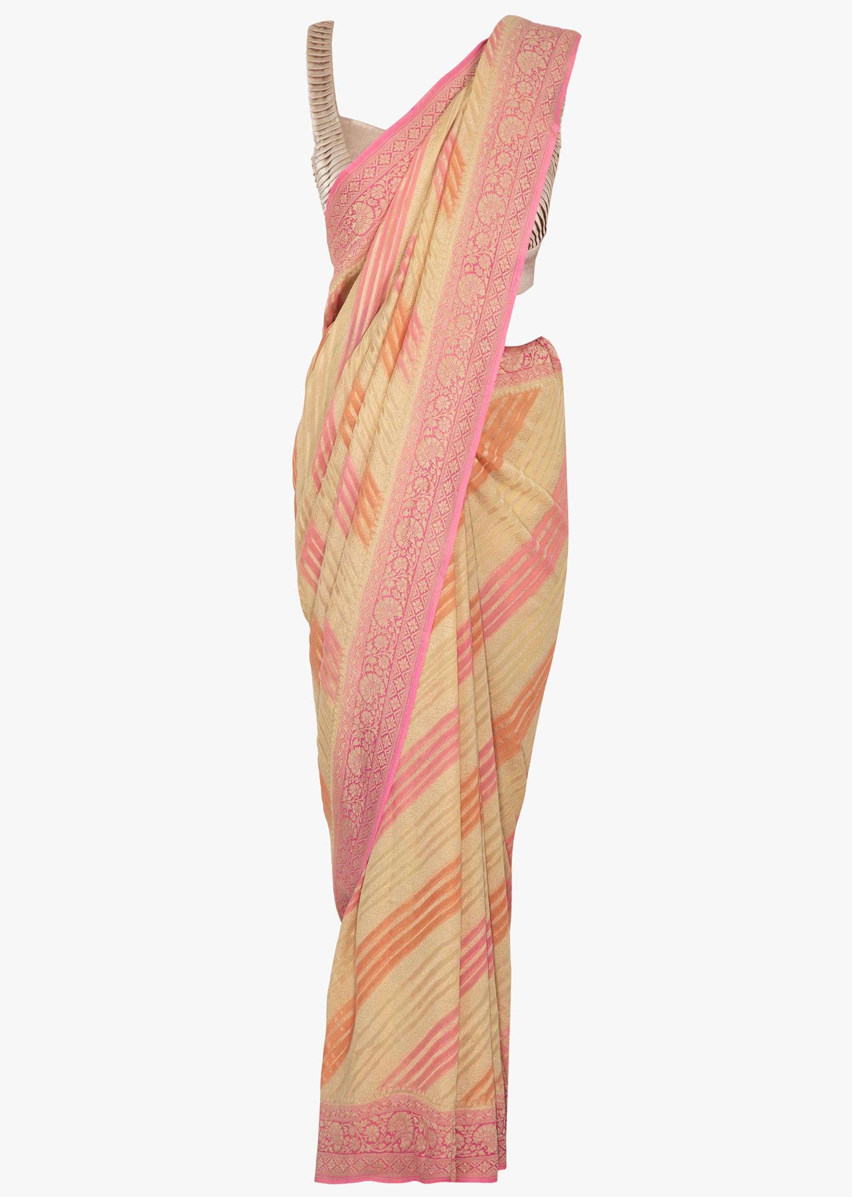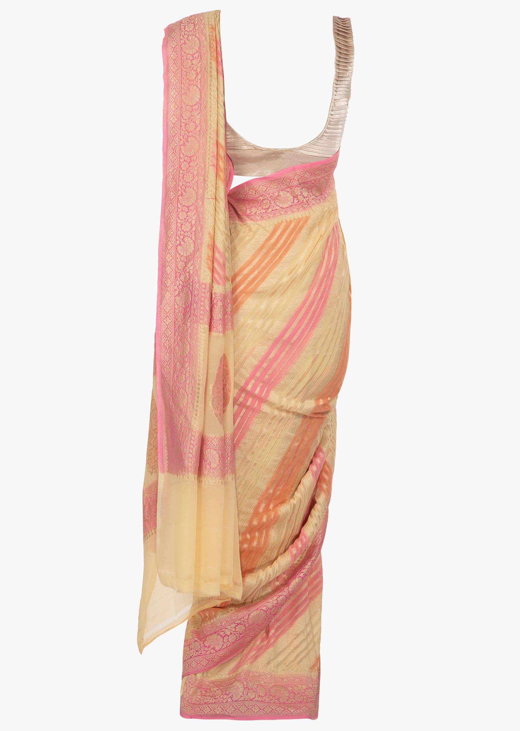 Cream Saree In Georgette With Pink And Peach Stripes Online - Kalki Fashion