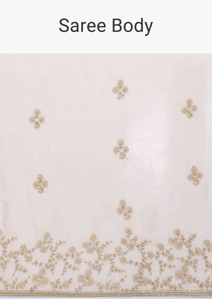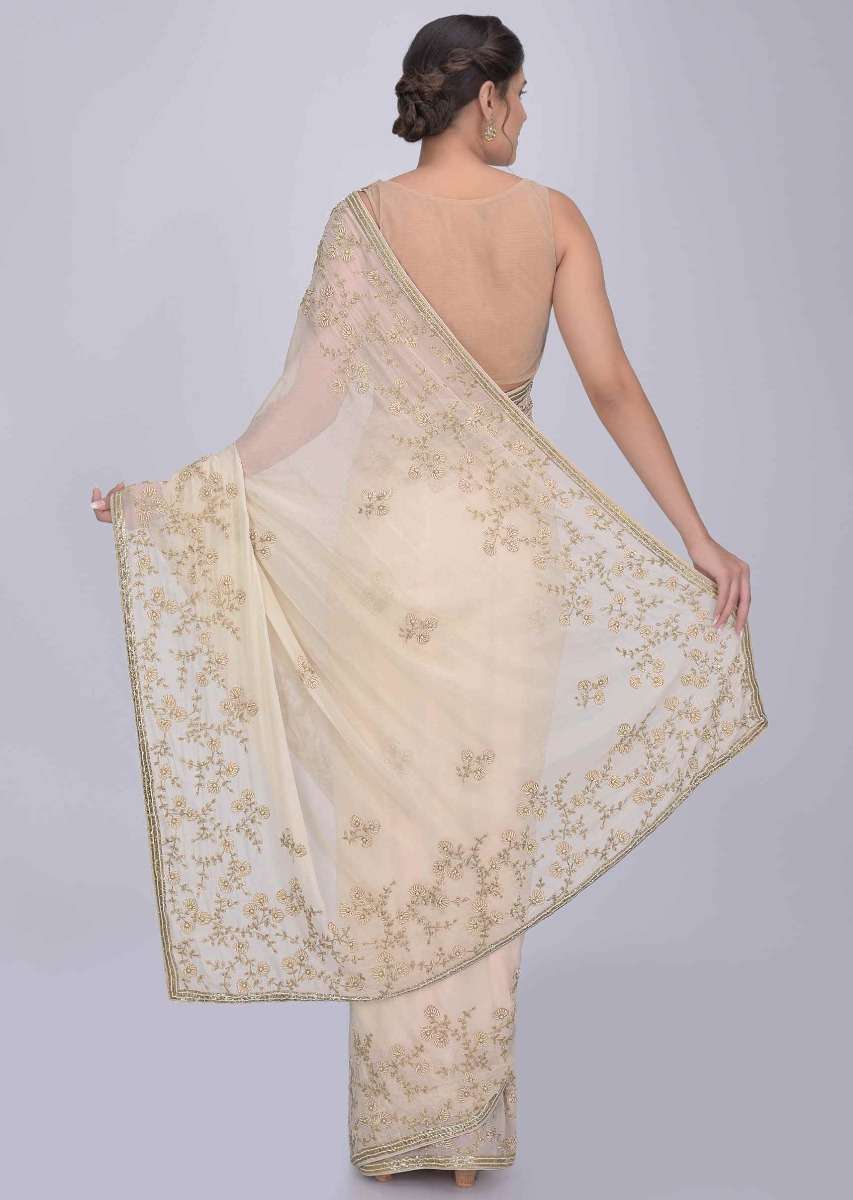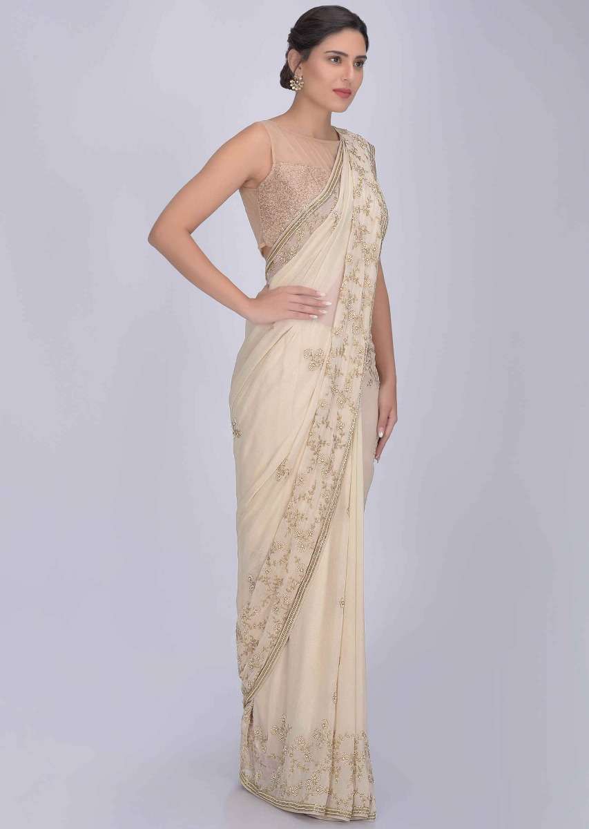 Cream Saree In Shimmer Georgette With Matching Blouse Piece Online - Kalki Fashion