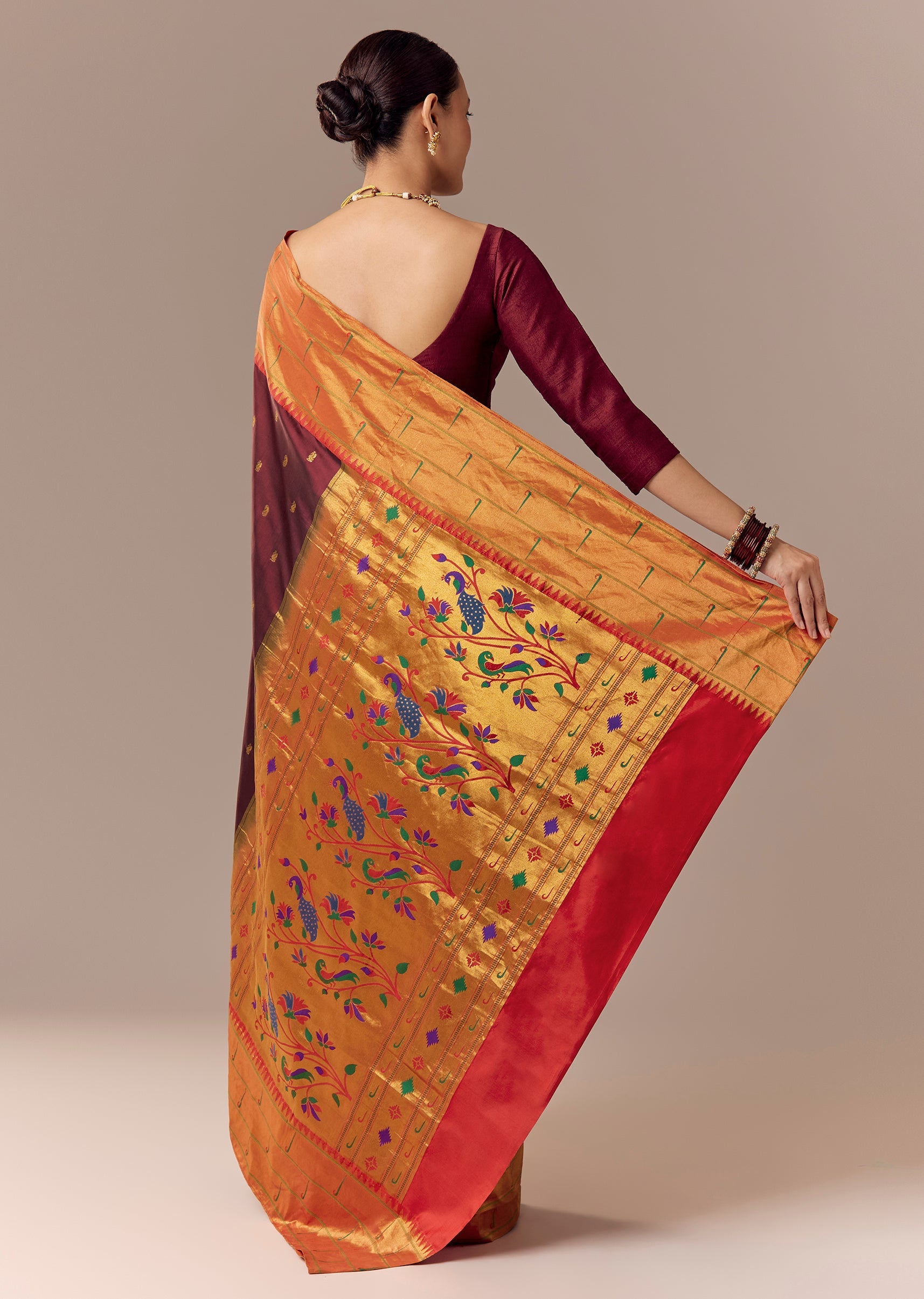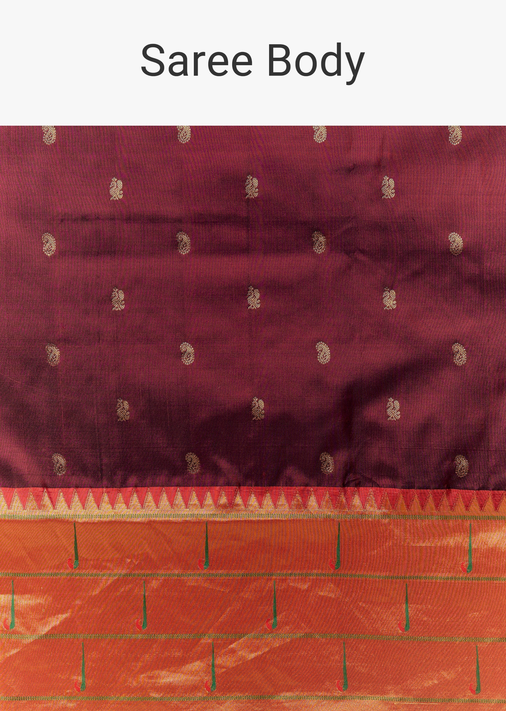 Deep Maroon Paithani Saree with Muniya Motif Border