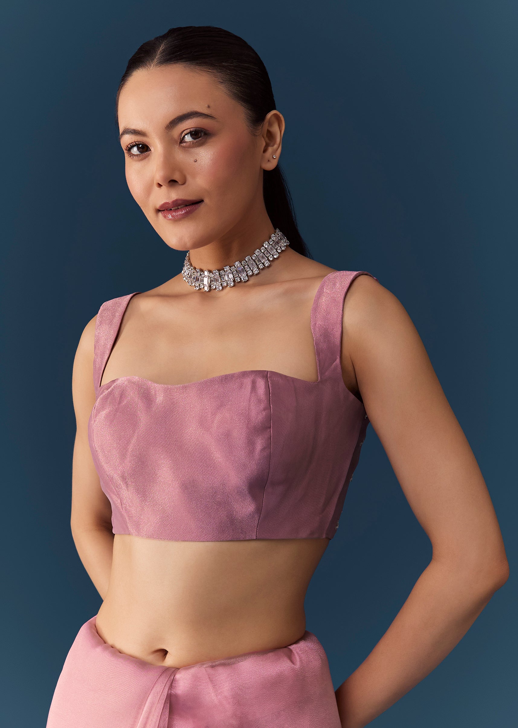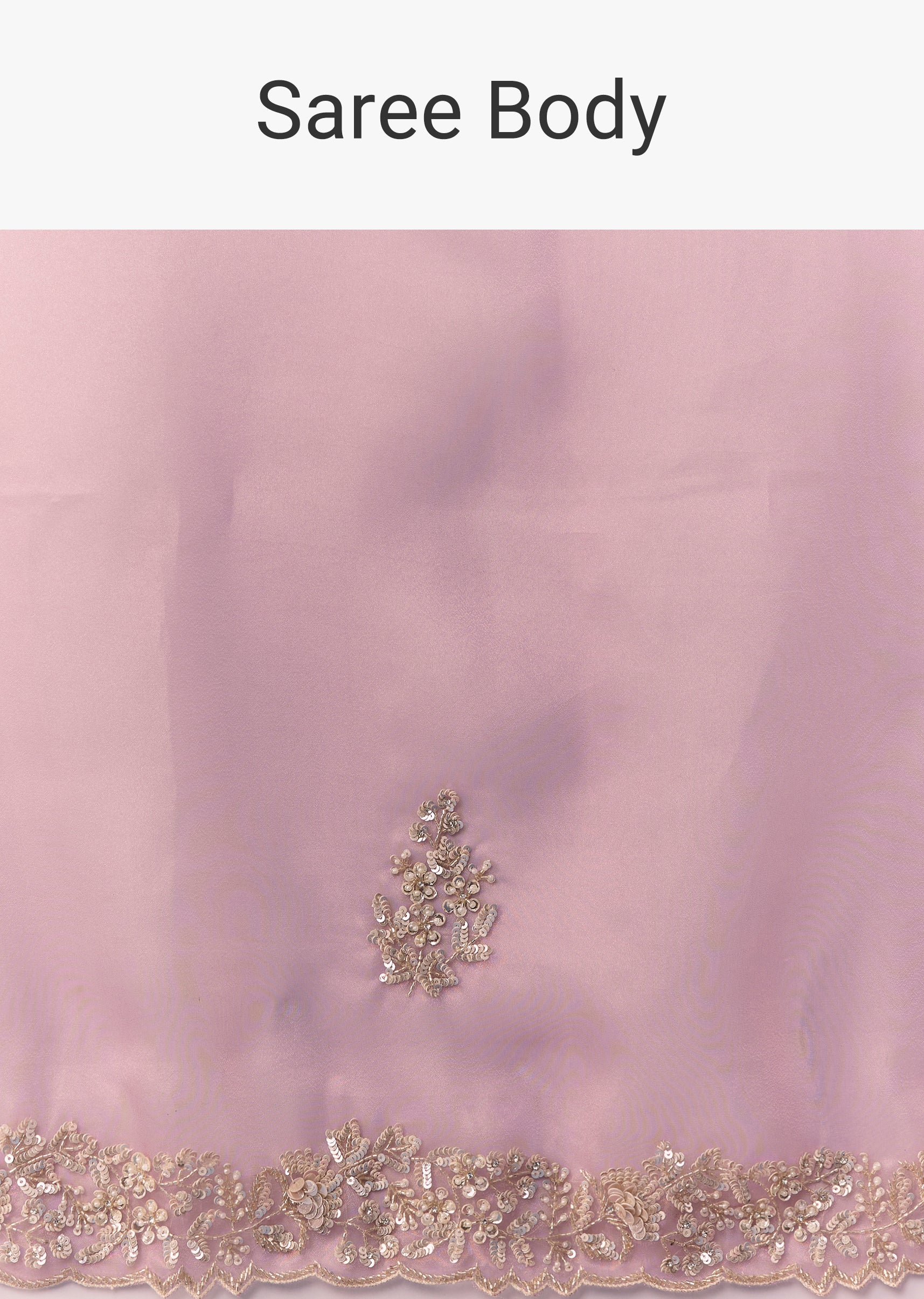 Dusty Pink Embroidered Saree with Blouse Fabric