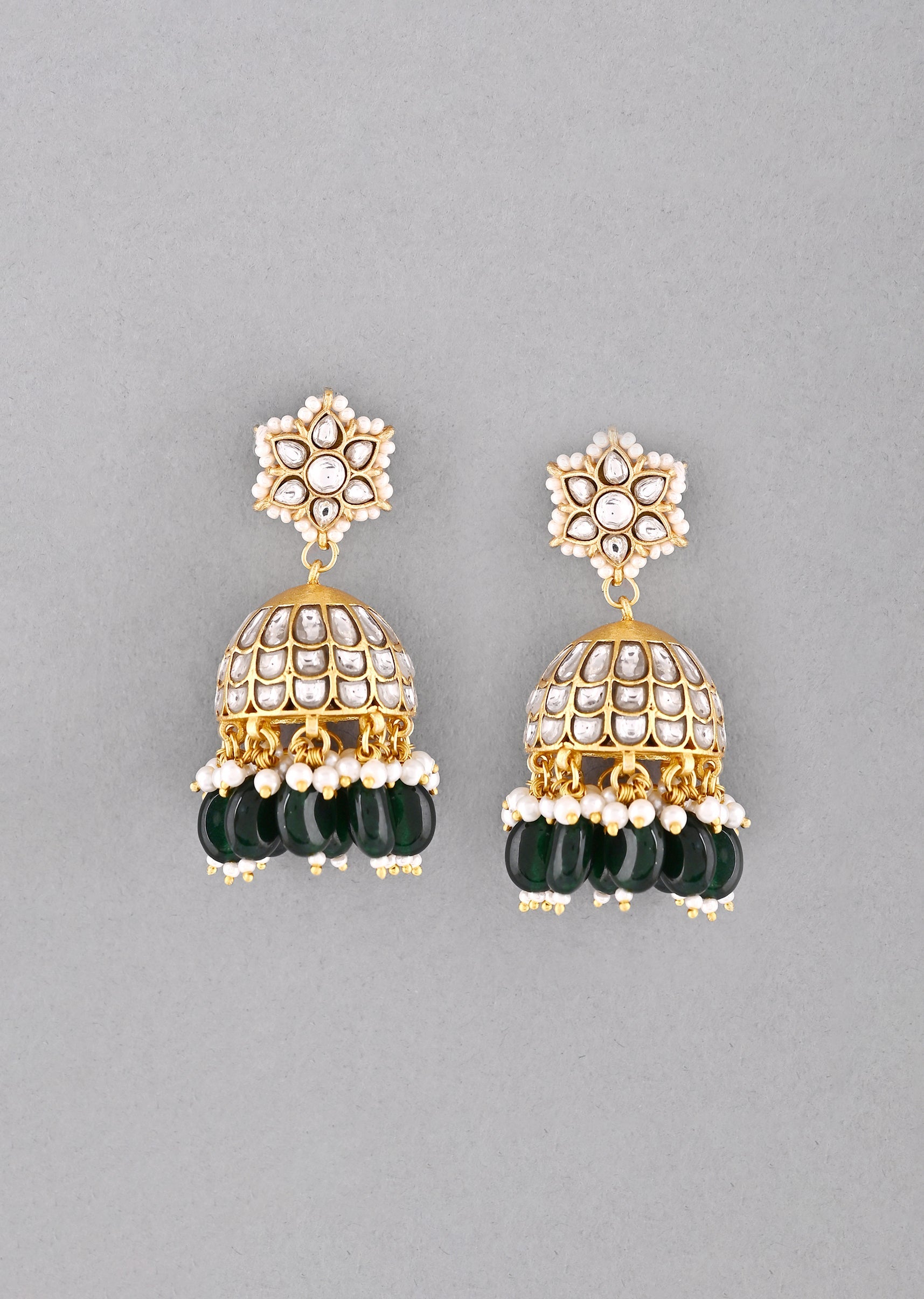 Elevate your festive look with these dark green gold earrings featuring intricate pachi kundan work. The rich green hue paired with delicate kundan detailing adds a regal touch, making them perfect for weddings, mehendi, or festive occasions. Designed to complement both traditional and Indo-western outfits, these earrings make a statement of elegance and sophistication.Awarded as the Most Trusted Brand, we're delivering styles you love, just as promised.