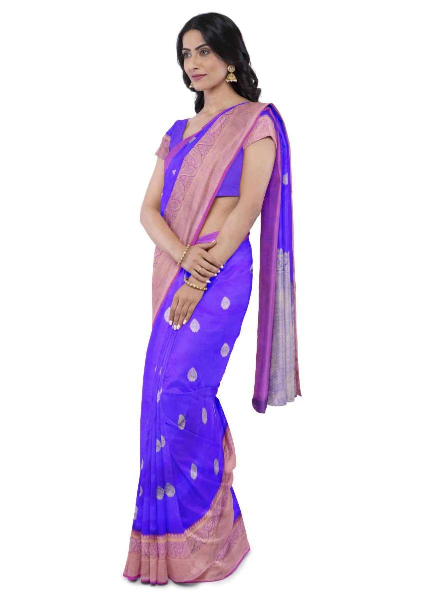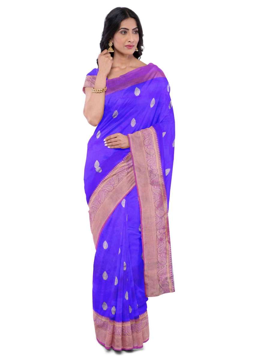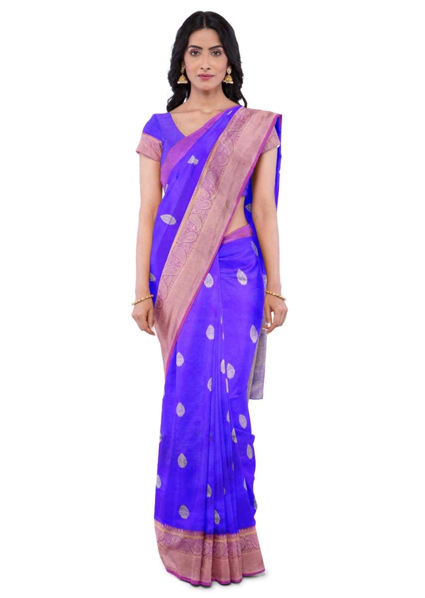 Egyptian blue banarasi saree with matching blouse piece only on Kalki