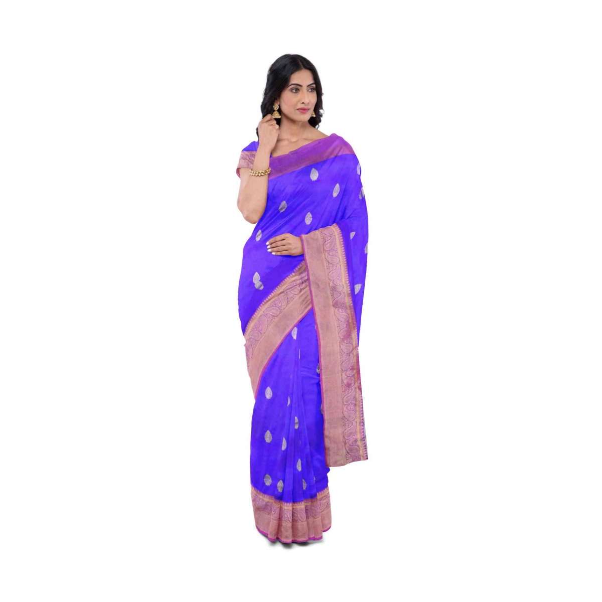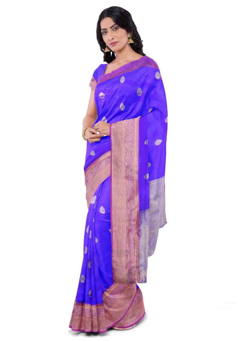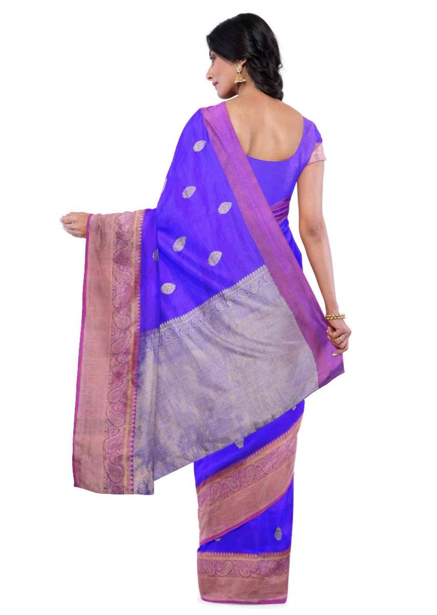 Egyptian blue banarasi saree with matching blouse piece only on Kalki
