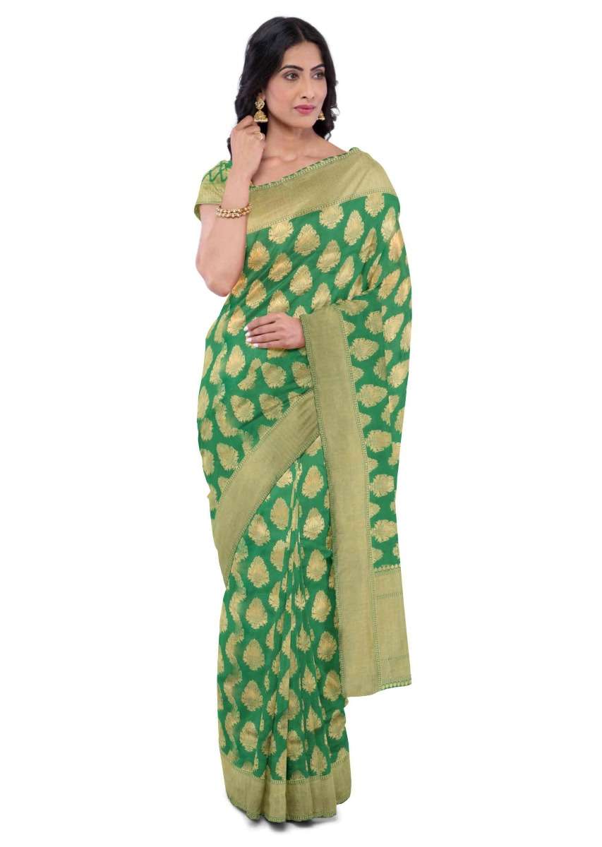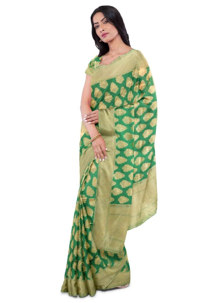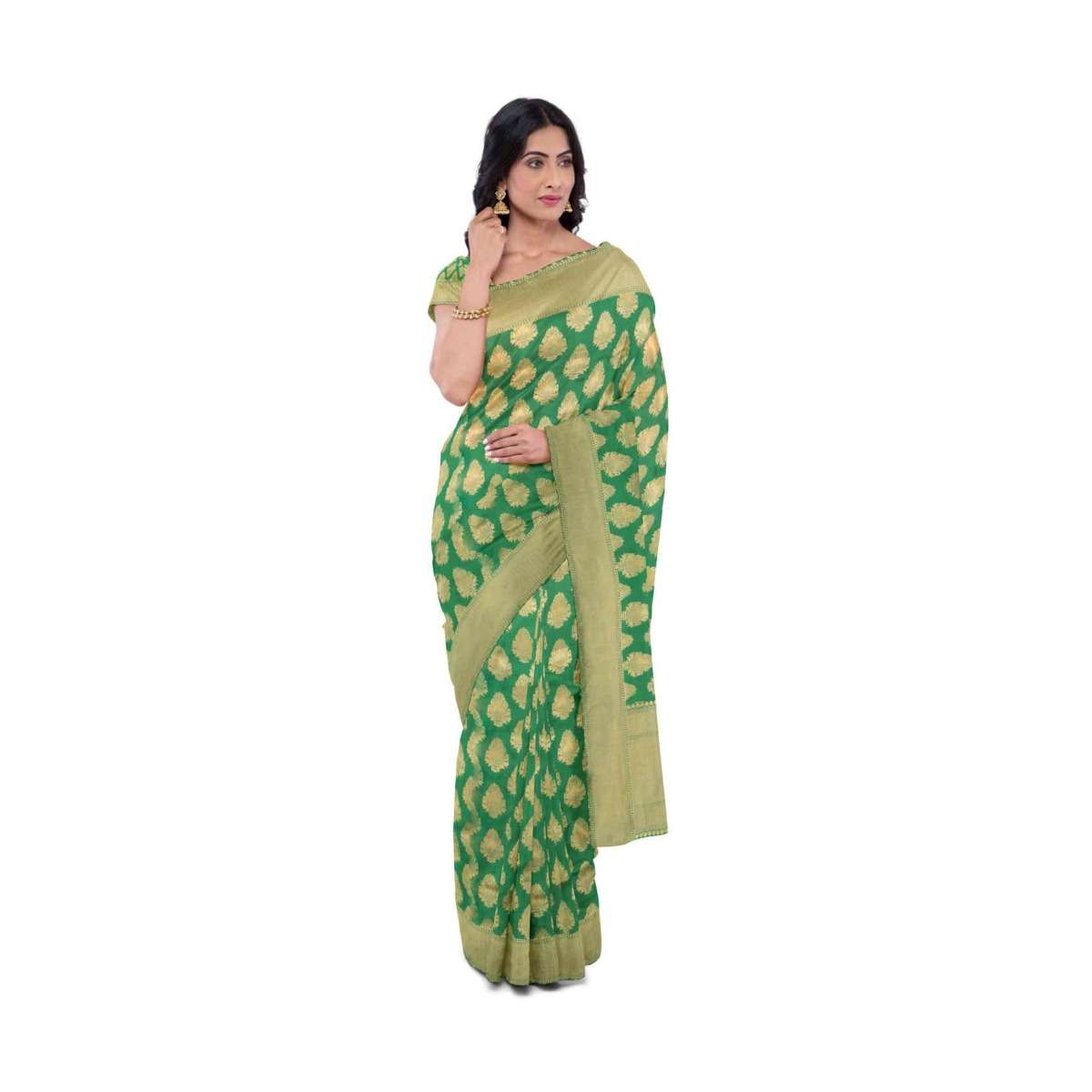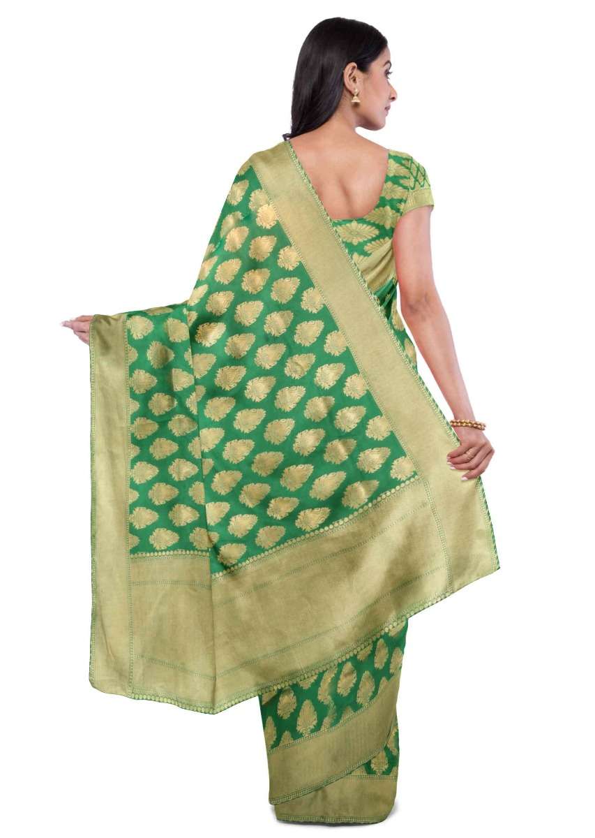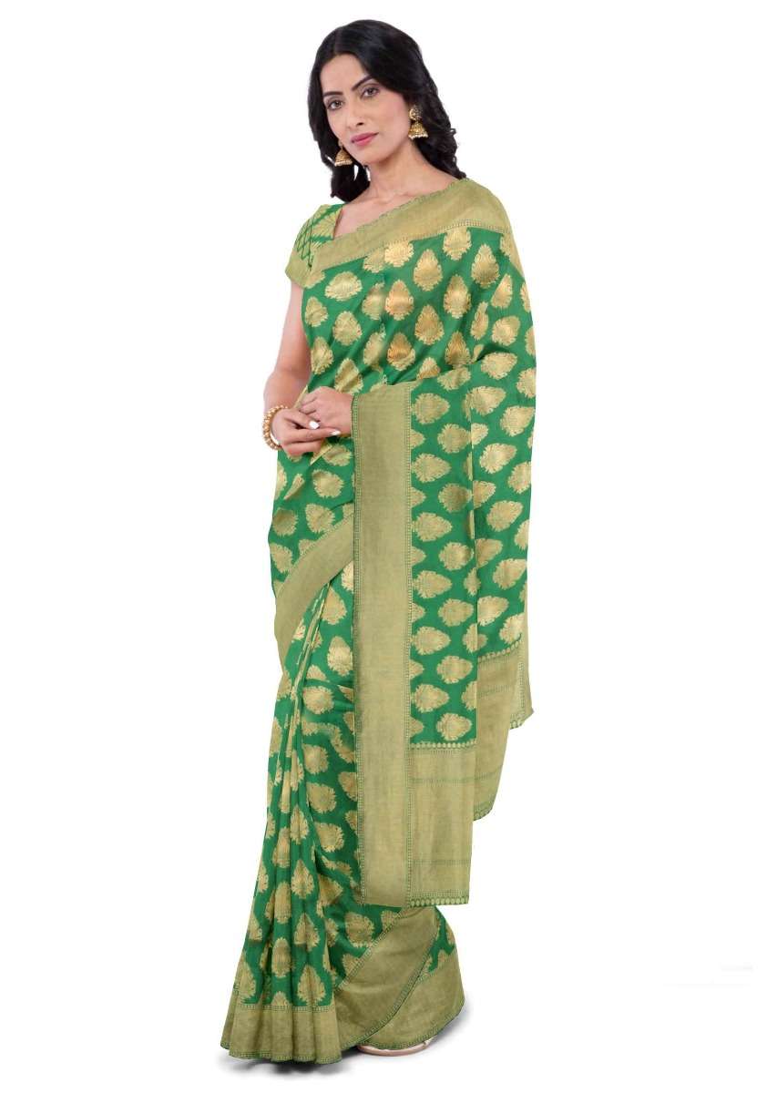 Emerald Green Banarasi Saree With Matching Blouse Piece Online - Kalki Fashion