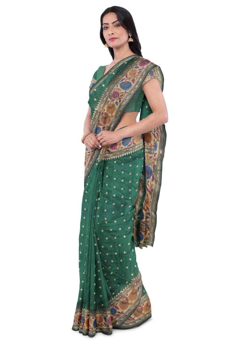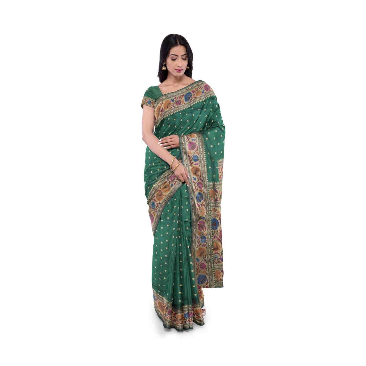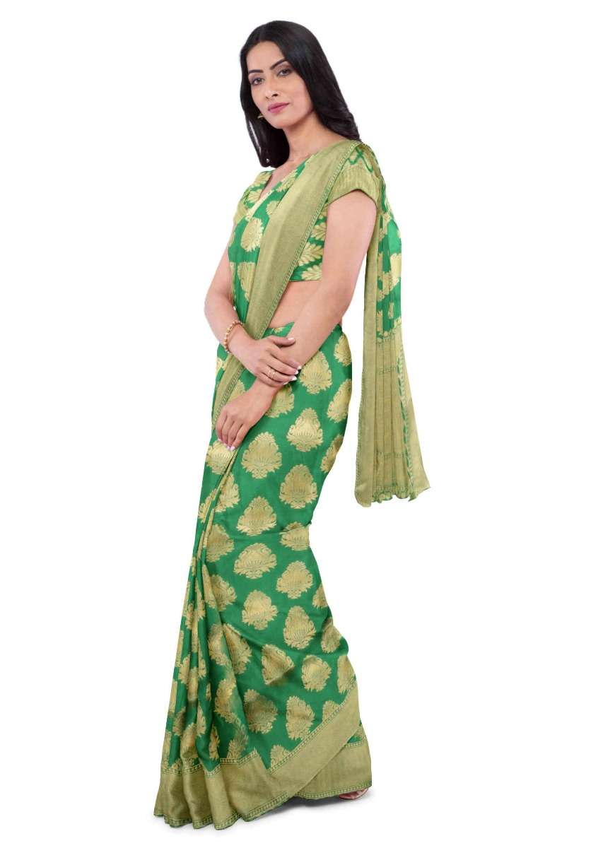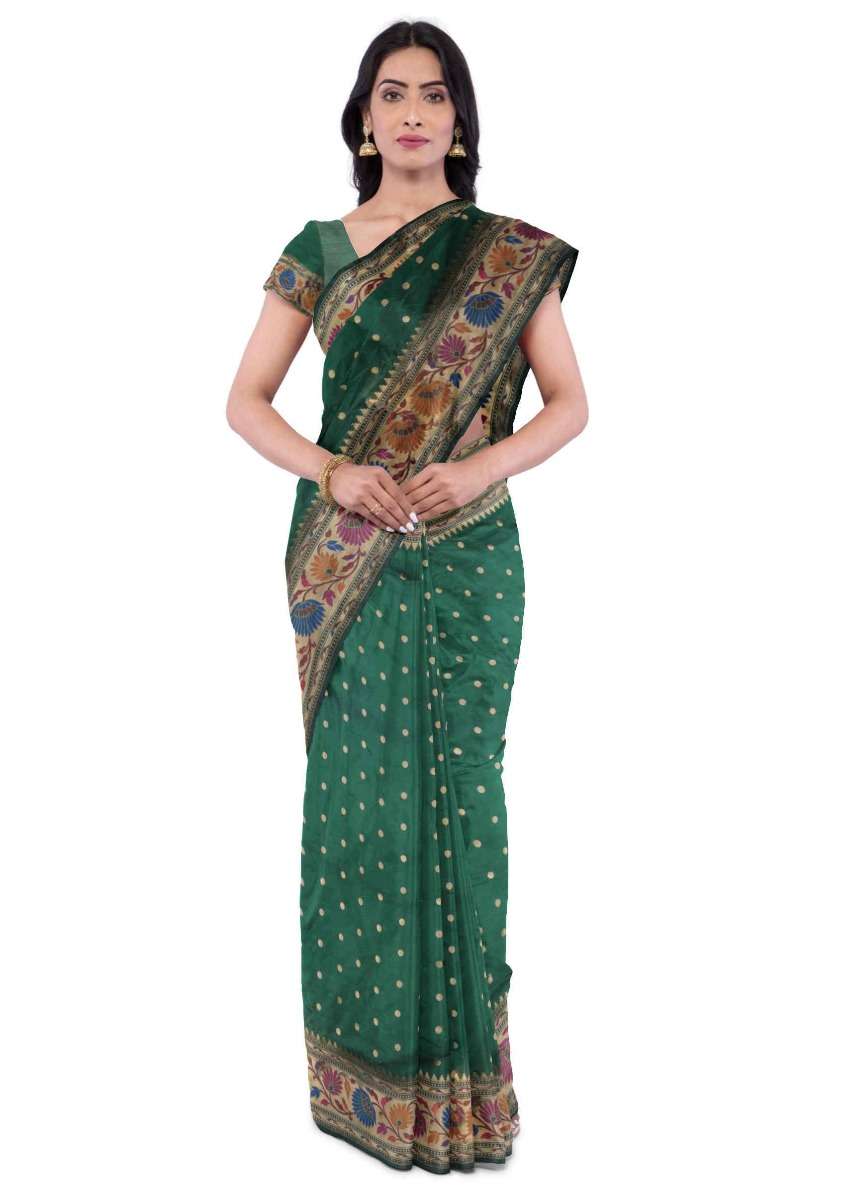 Emerald Green Banarasi Saree With Matching Blouse Piece Online - Kalki Fashion