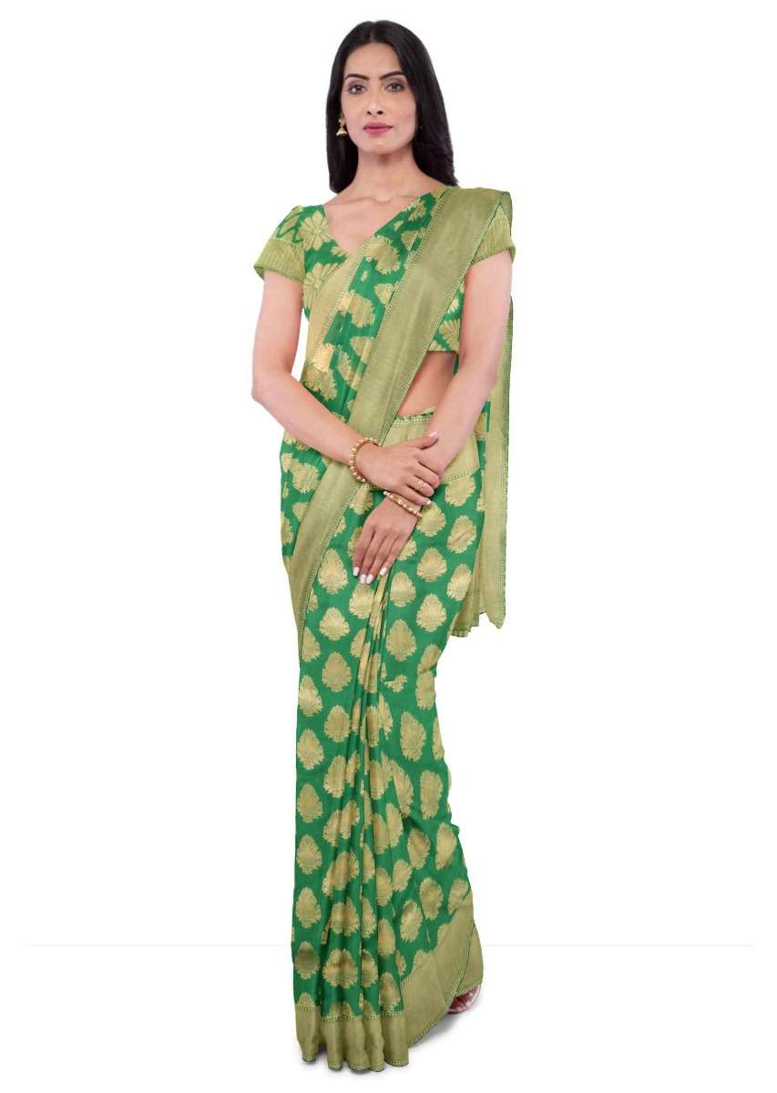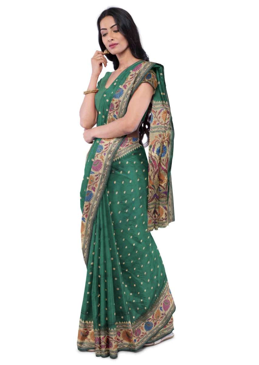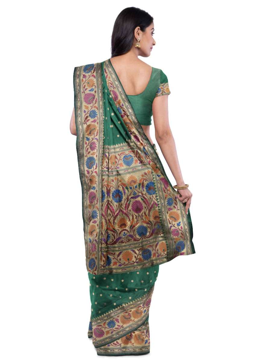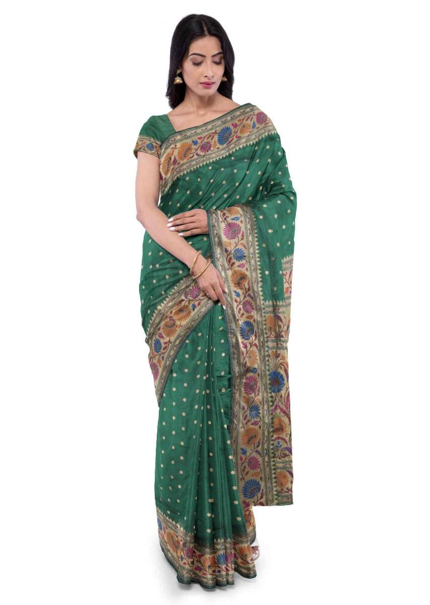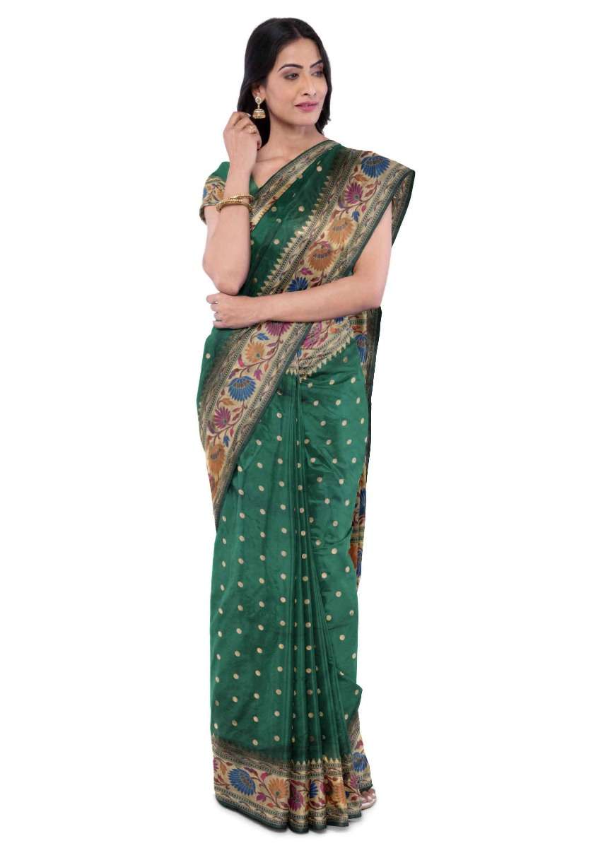 Emerald Green Banarasi Saree With Matching Blouse Piece Online - Kalki Fashion