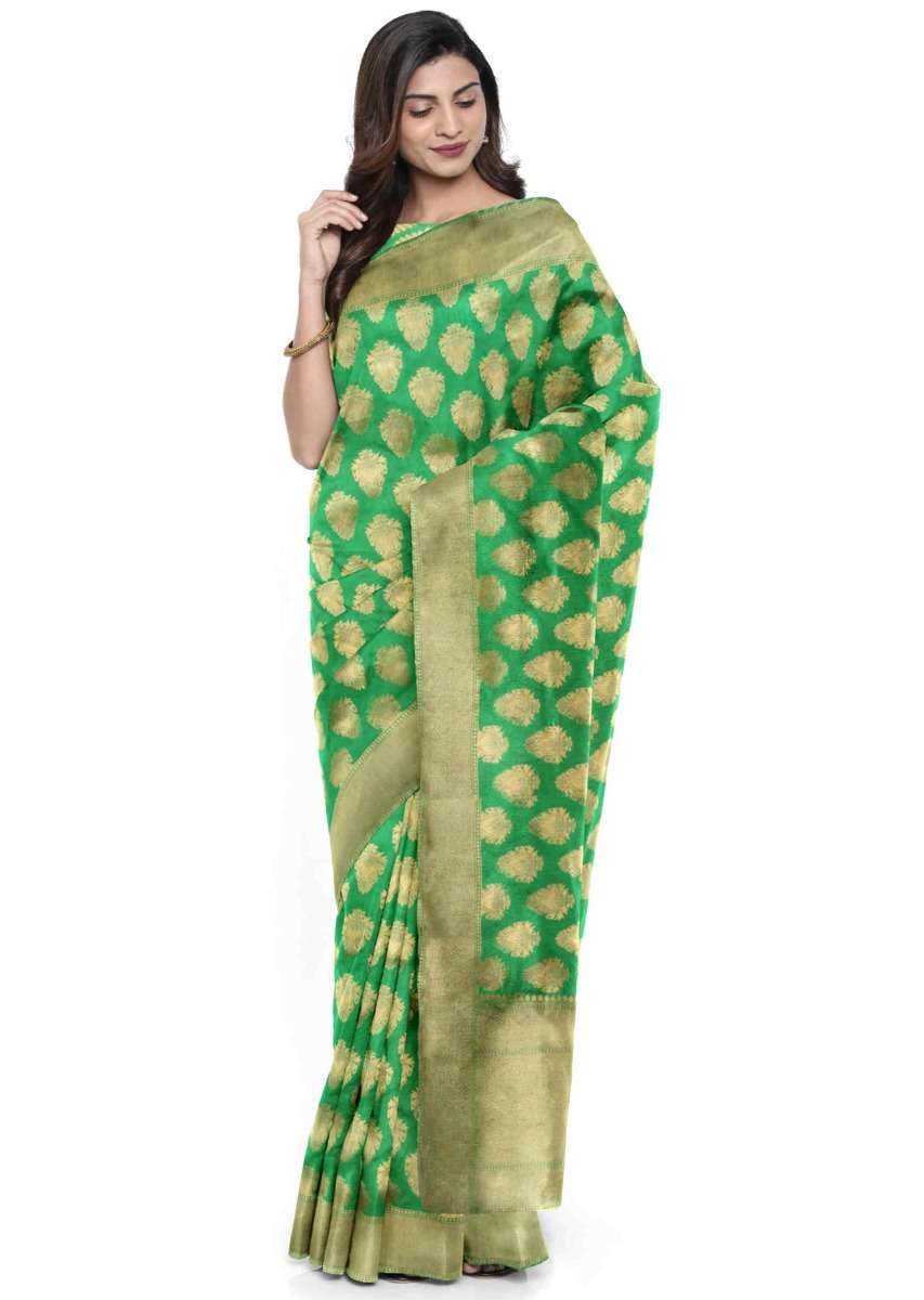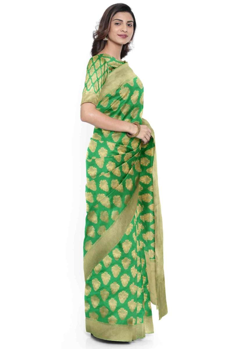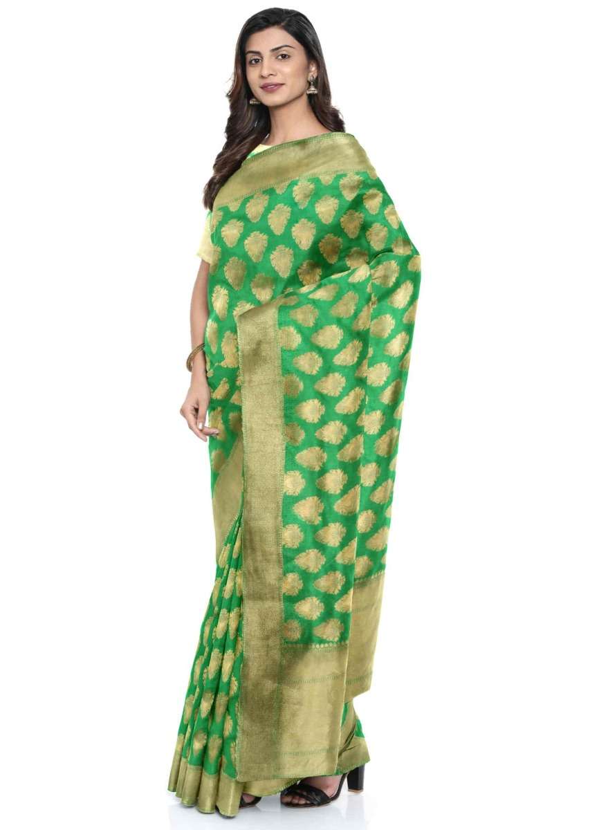 Emerald Green Saree In Banarasi Silk With Lotus Motifs Online - Kalki Fashion