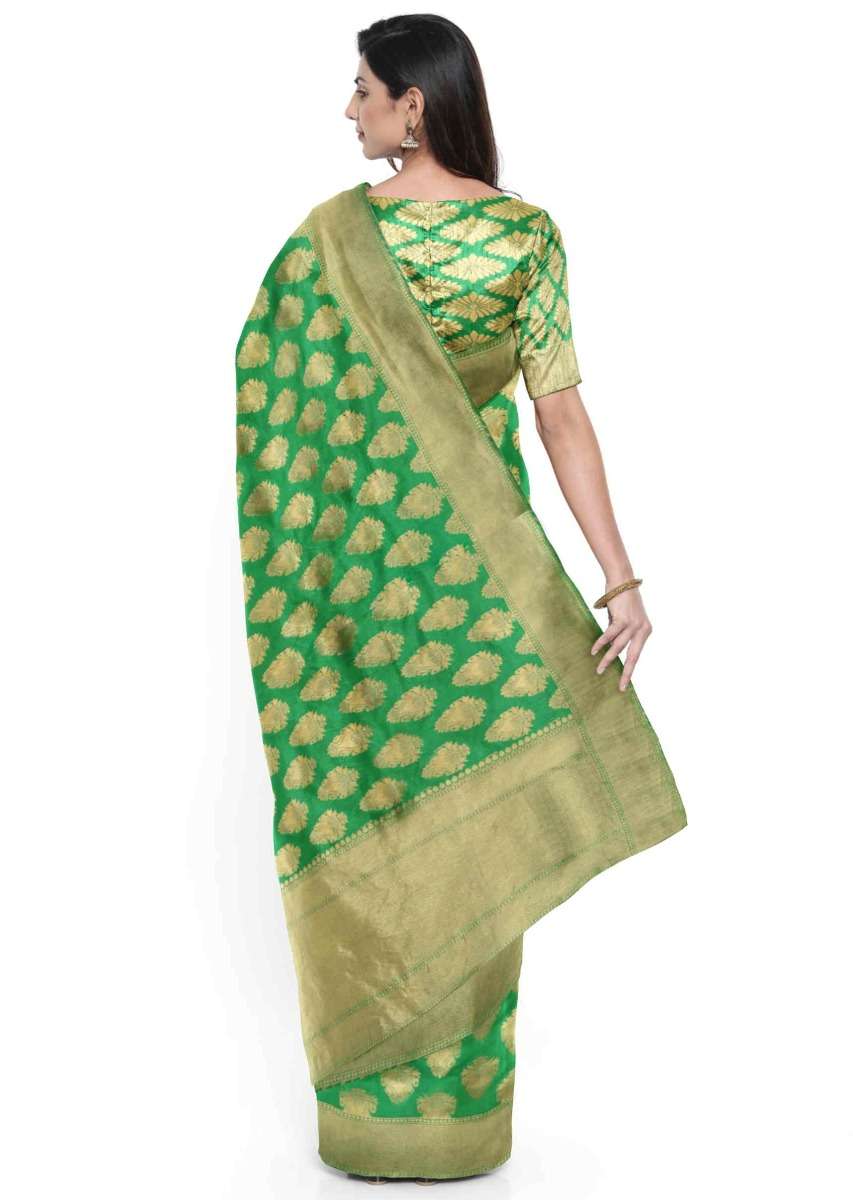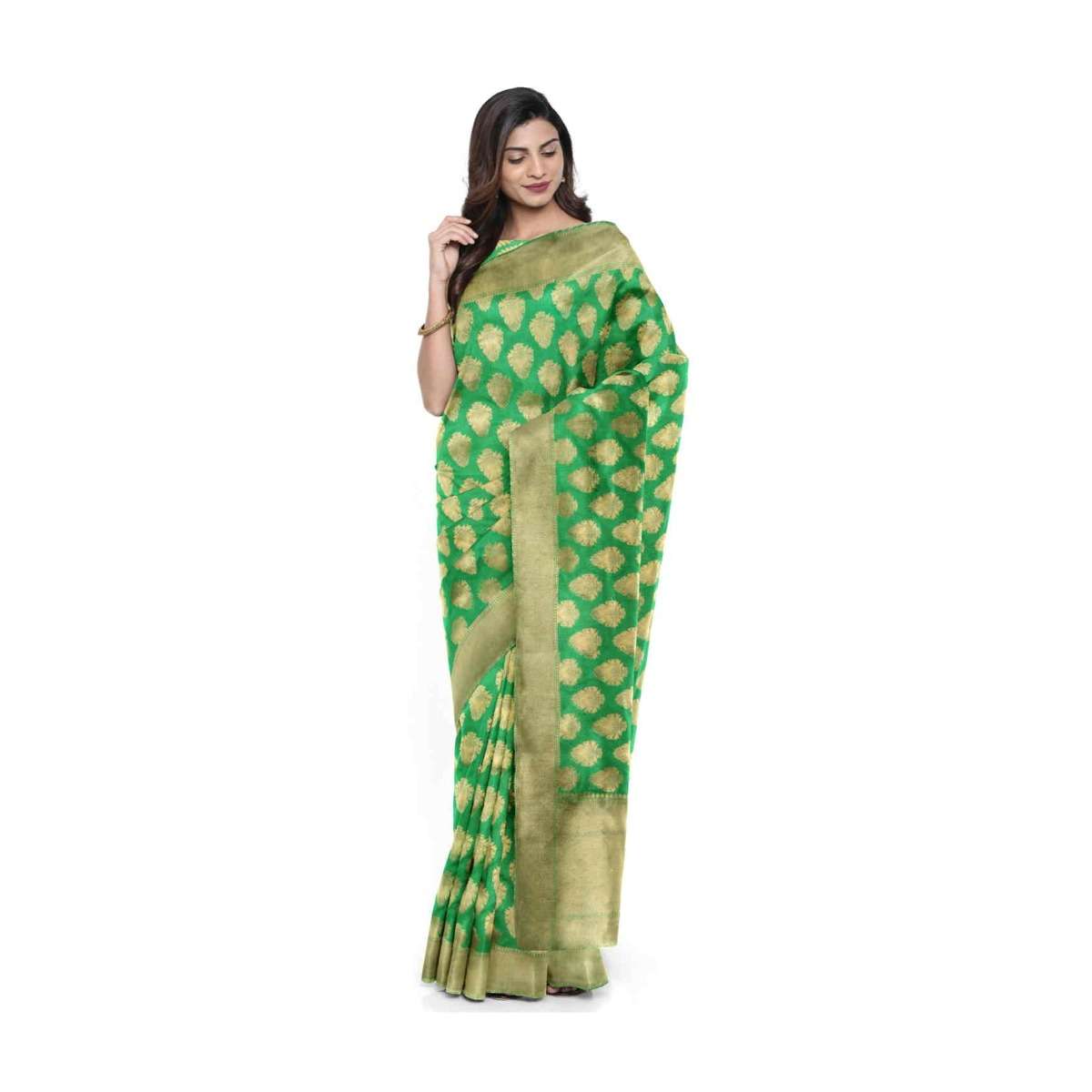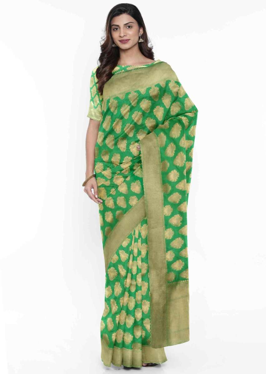 Emerald Green Saree In Banarasi Silk With Lotus Motifs Online - Kalki Fashion