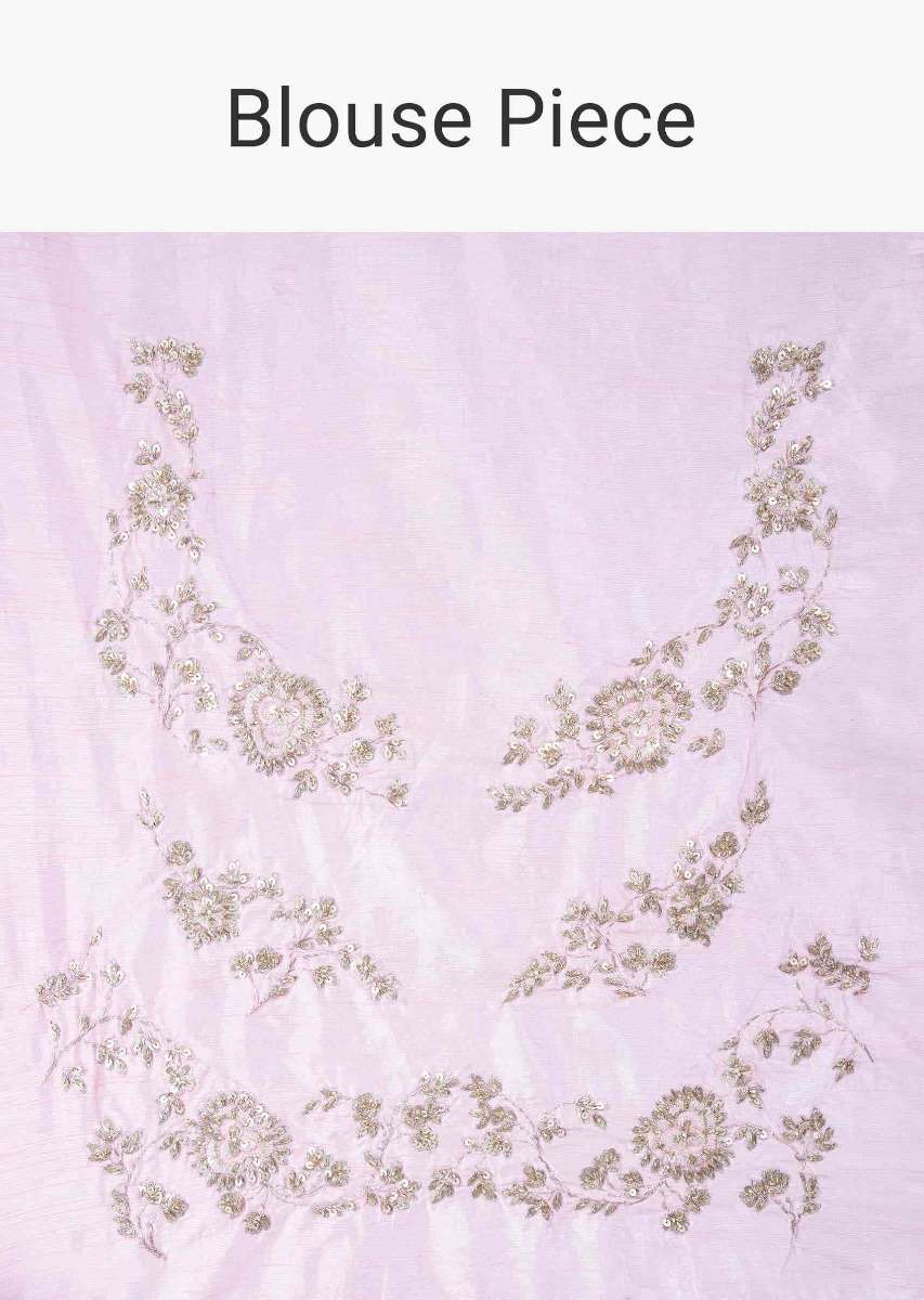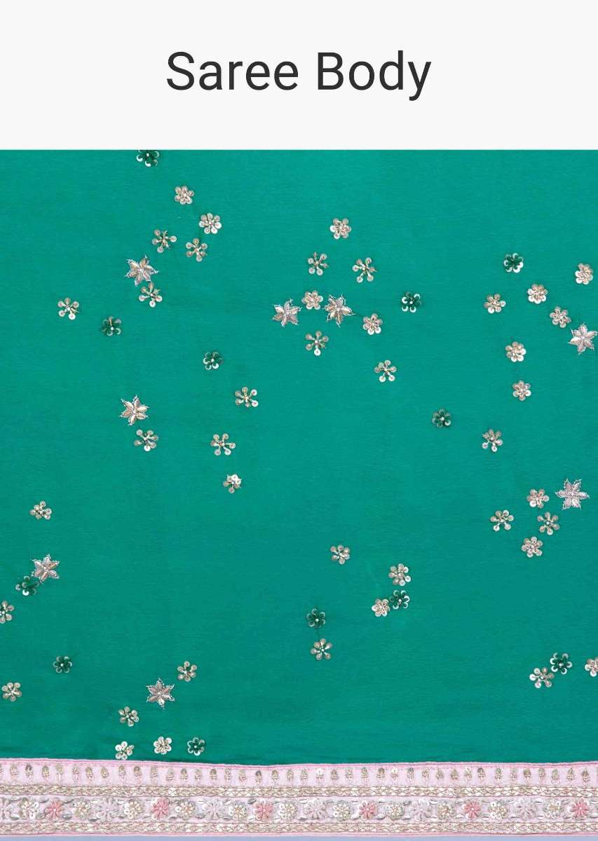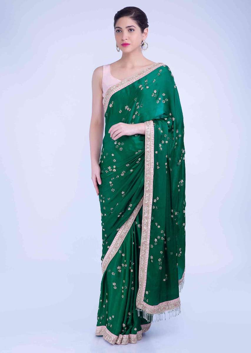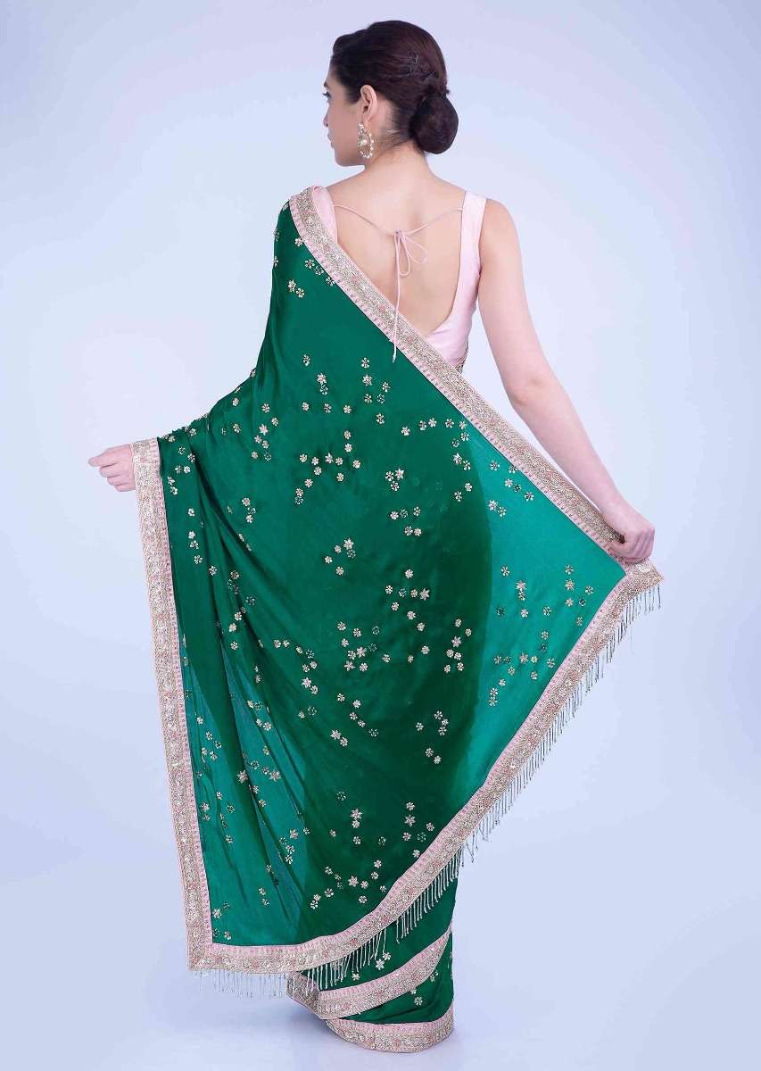 Emerald Green Saree In Satin Georgette With Blush Pink Raw Silk Blouse Piece Online - Kalki Fashion