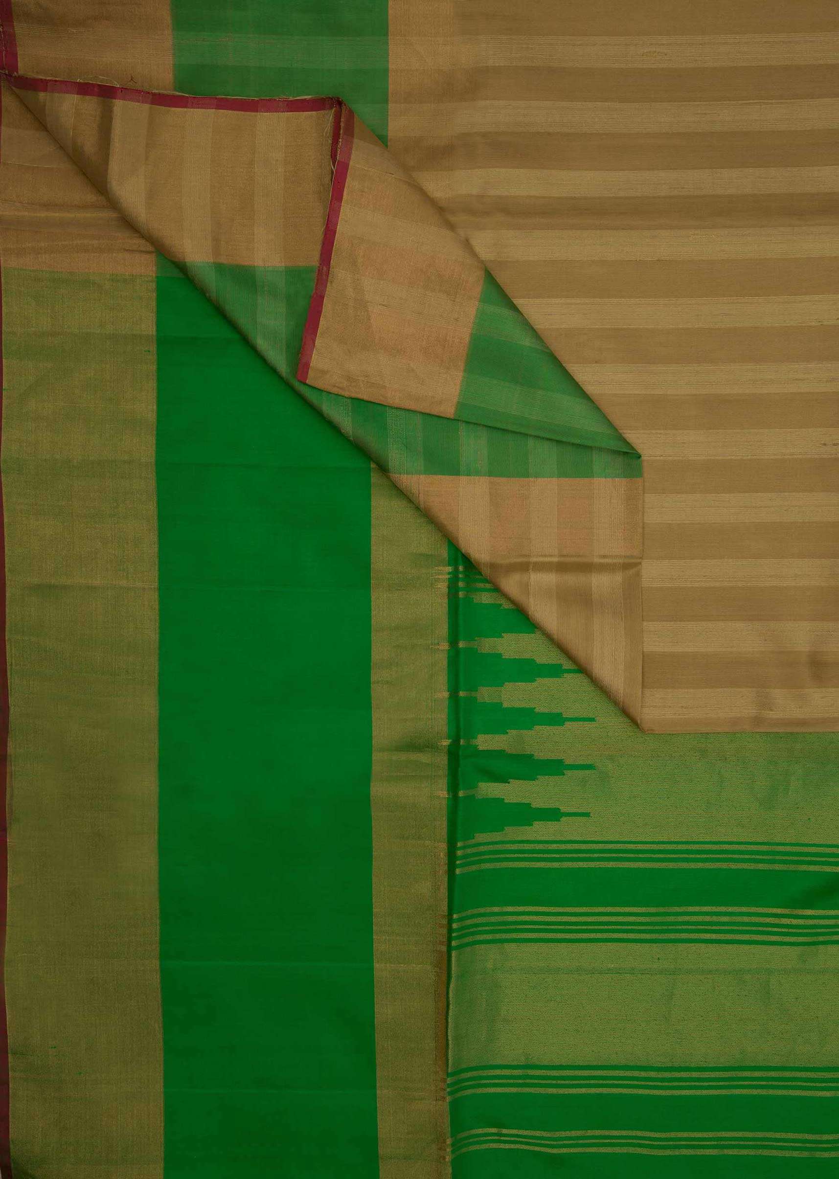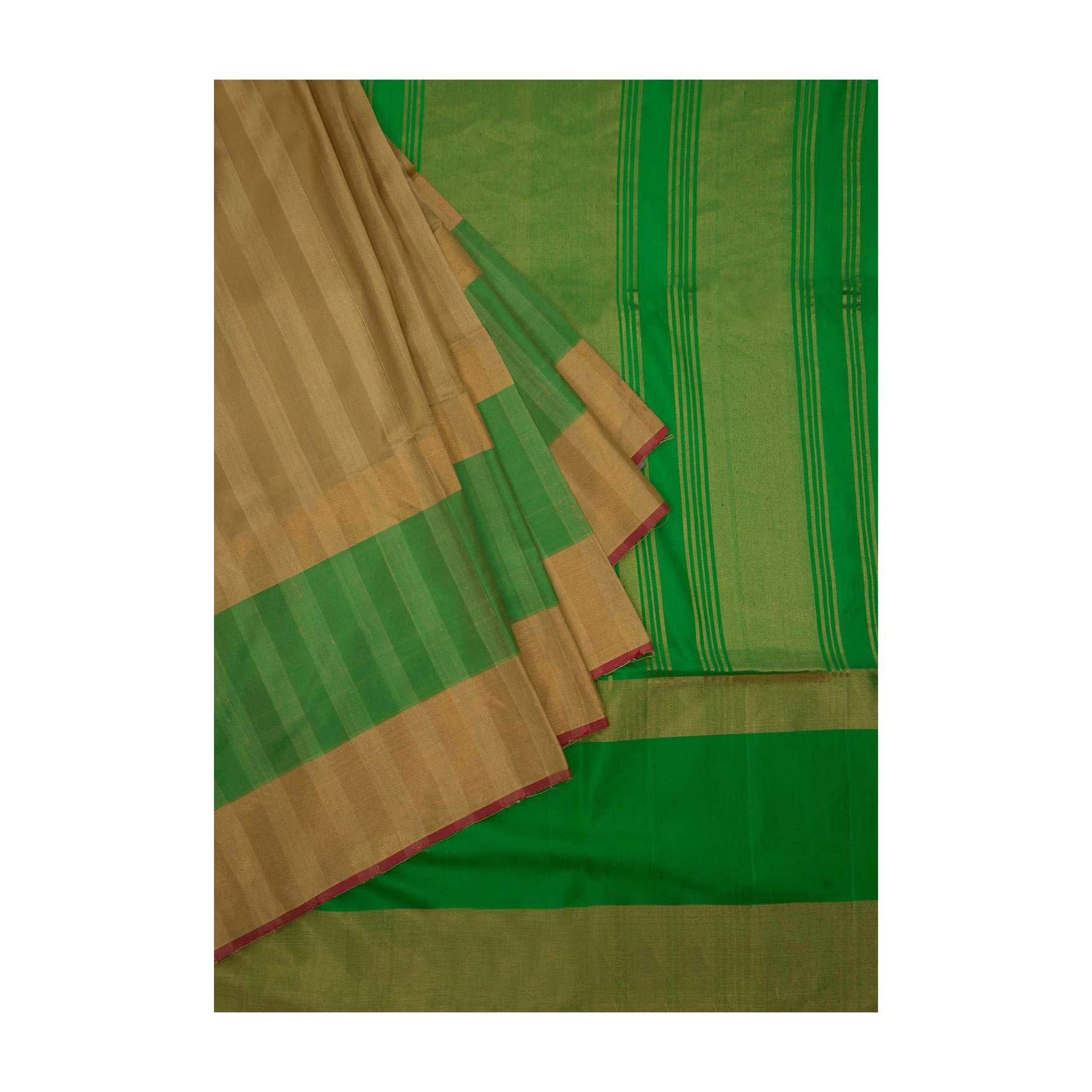 Fall Straw Beige Plain Saree With Parrot Green Brocade Pallo Online - Kalki Fashion