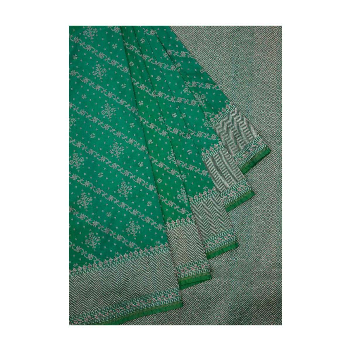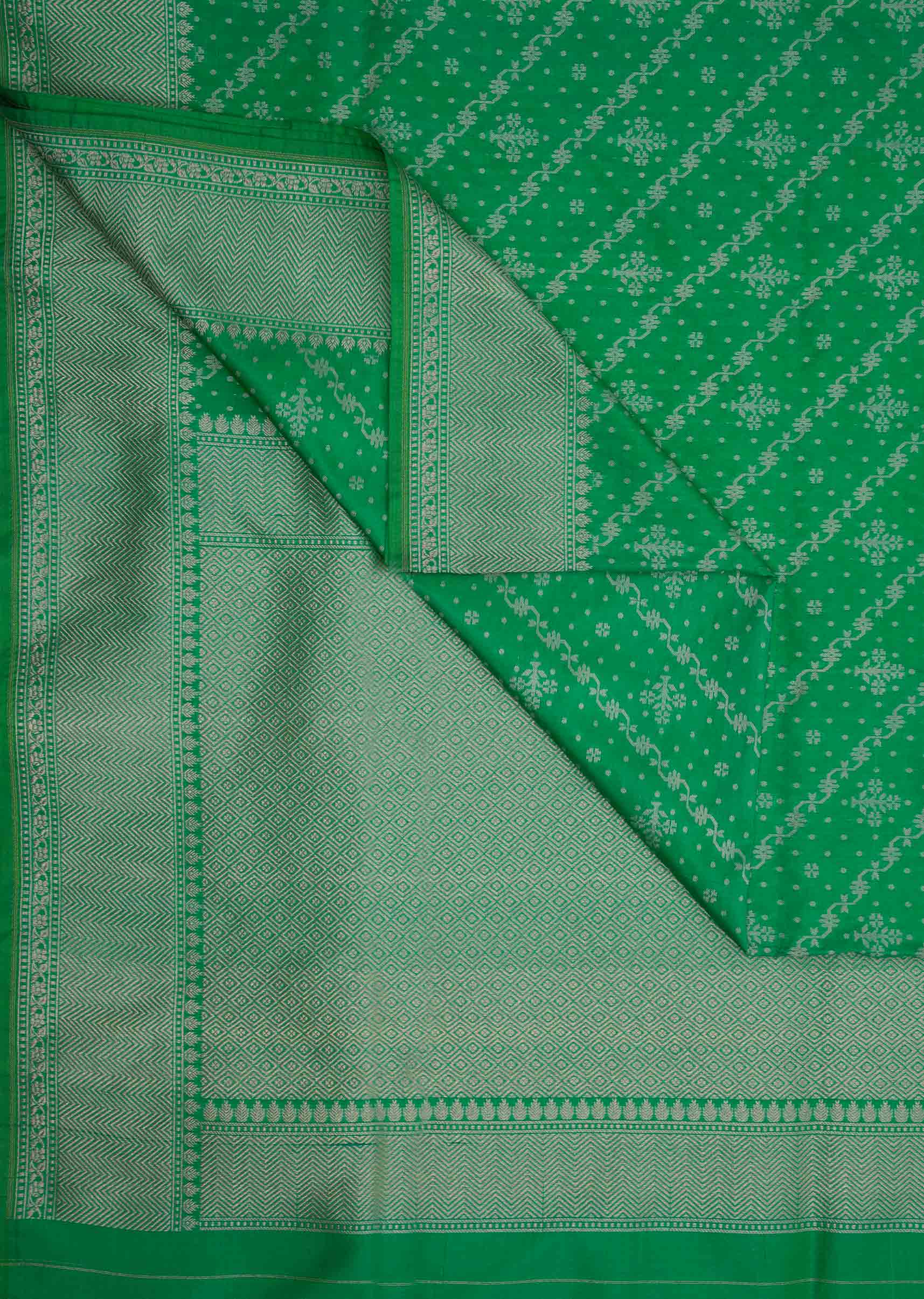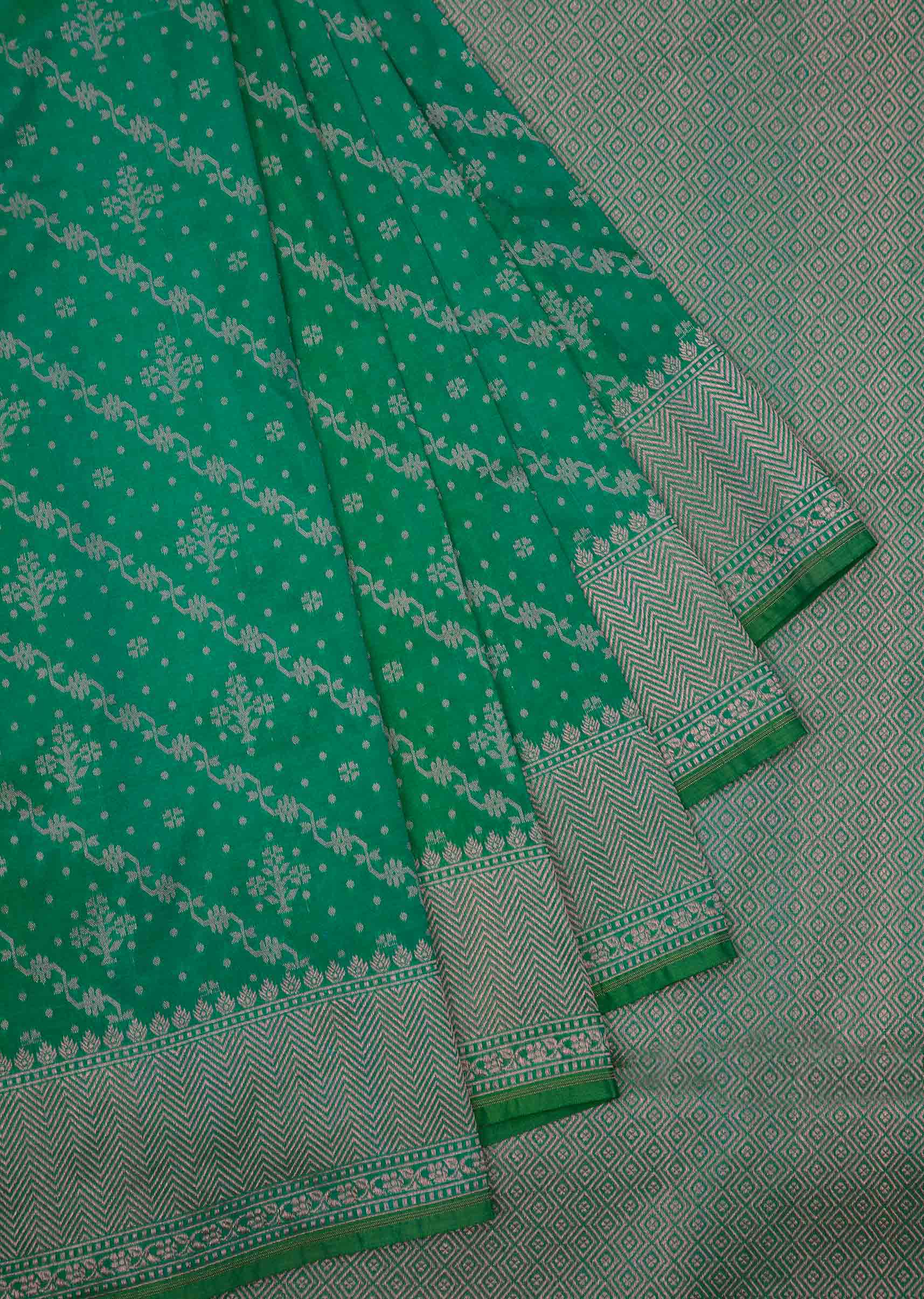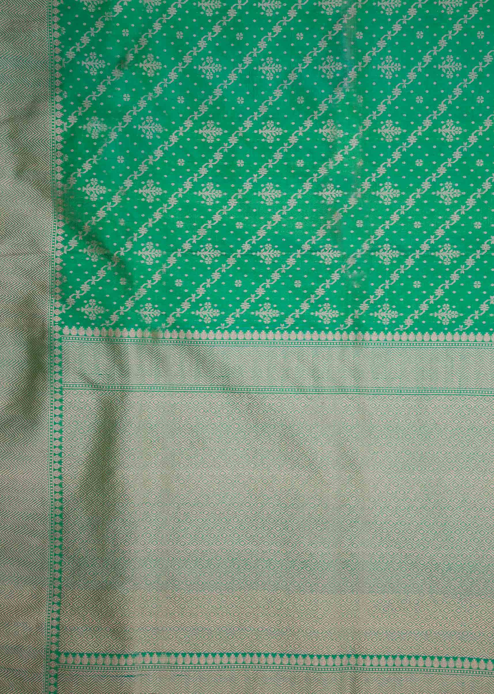 Fern Green Saree In Weaved Chanderi Silk With Brocade Pallo Online - Kalki Fashion