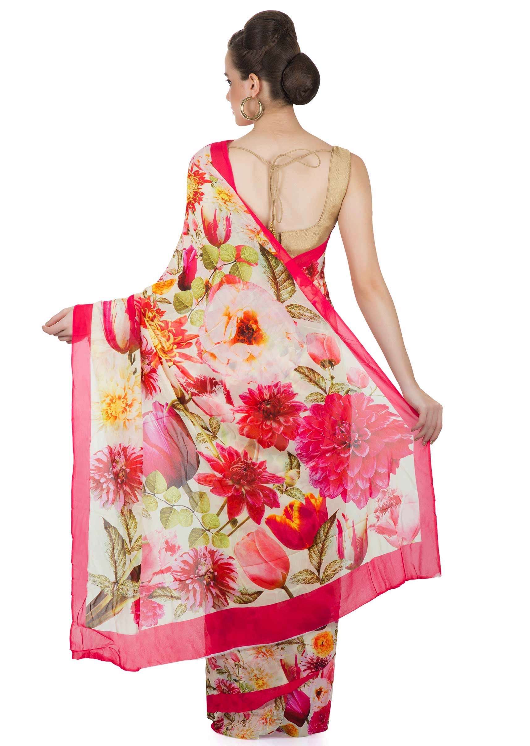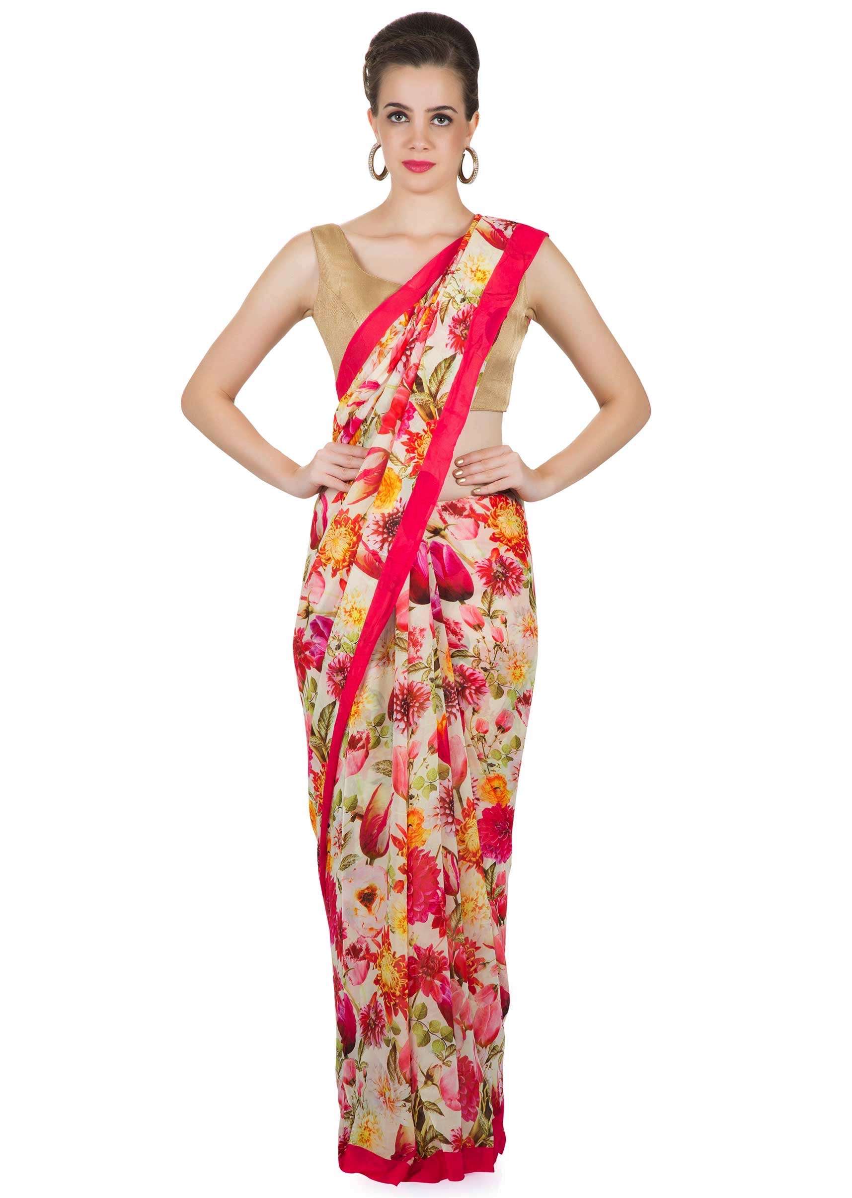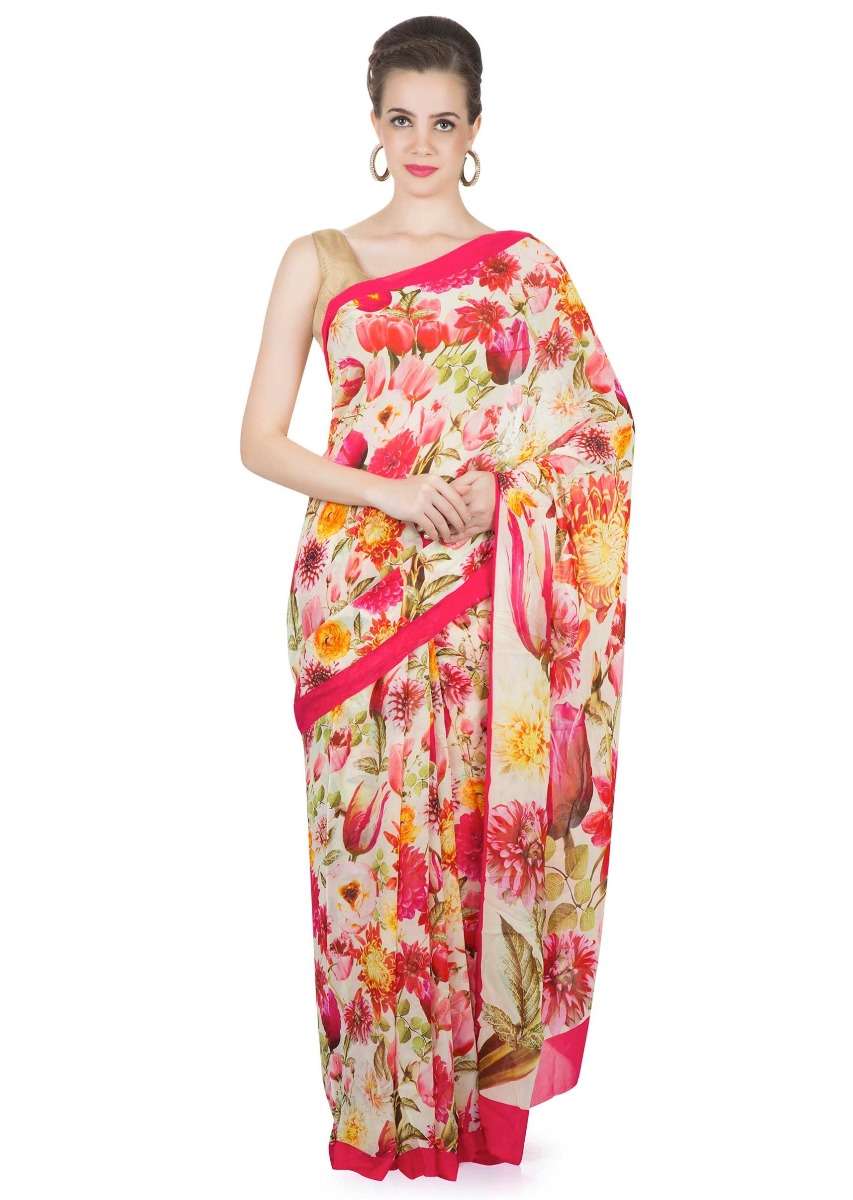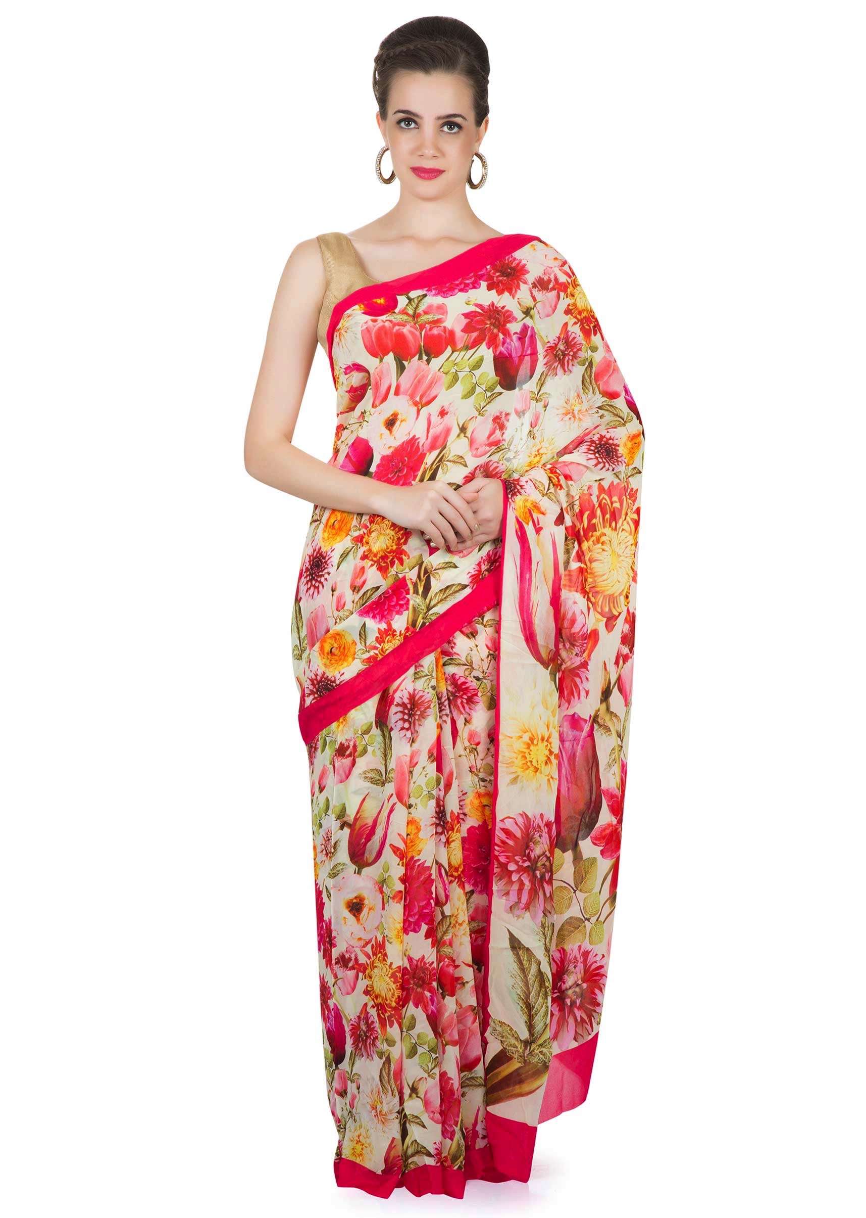 Floral Printed Saree In Multi Color Georgette Online - Kalki Fashion