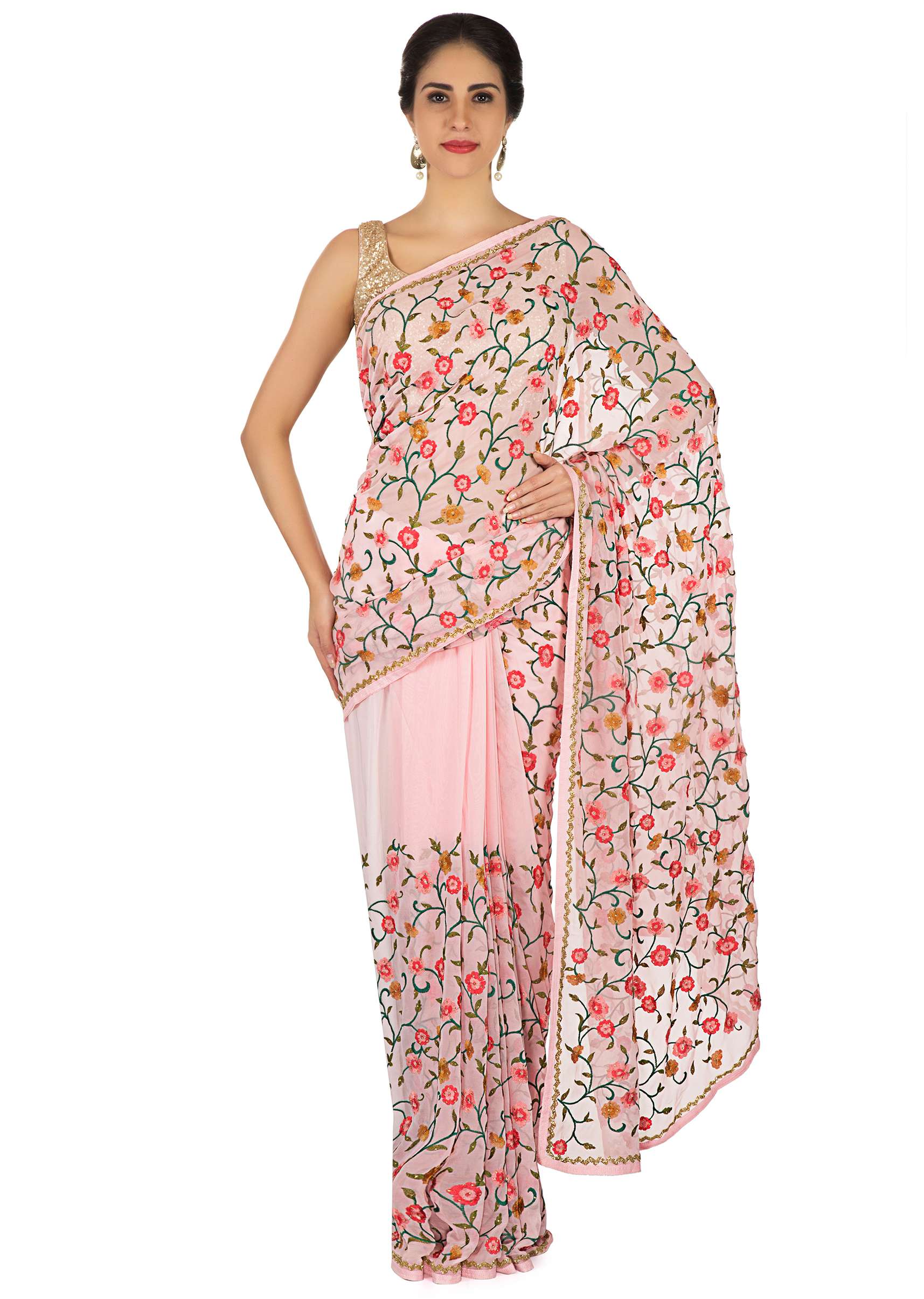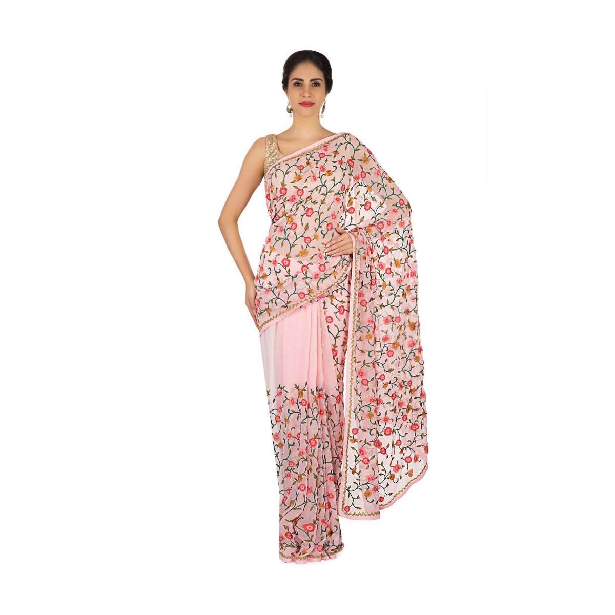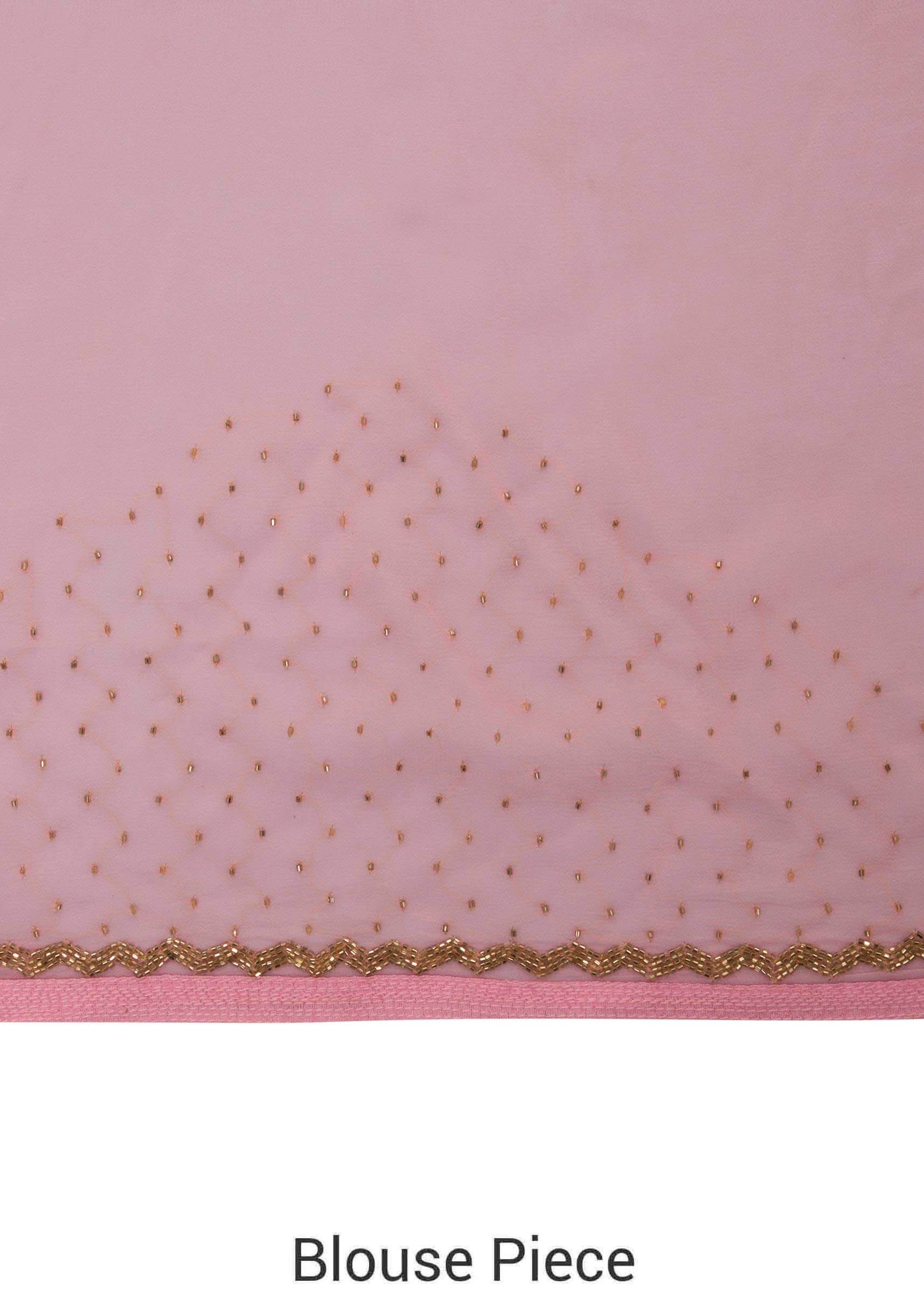 Floss pink saree in resham jaal and cut dana border only on Kalki