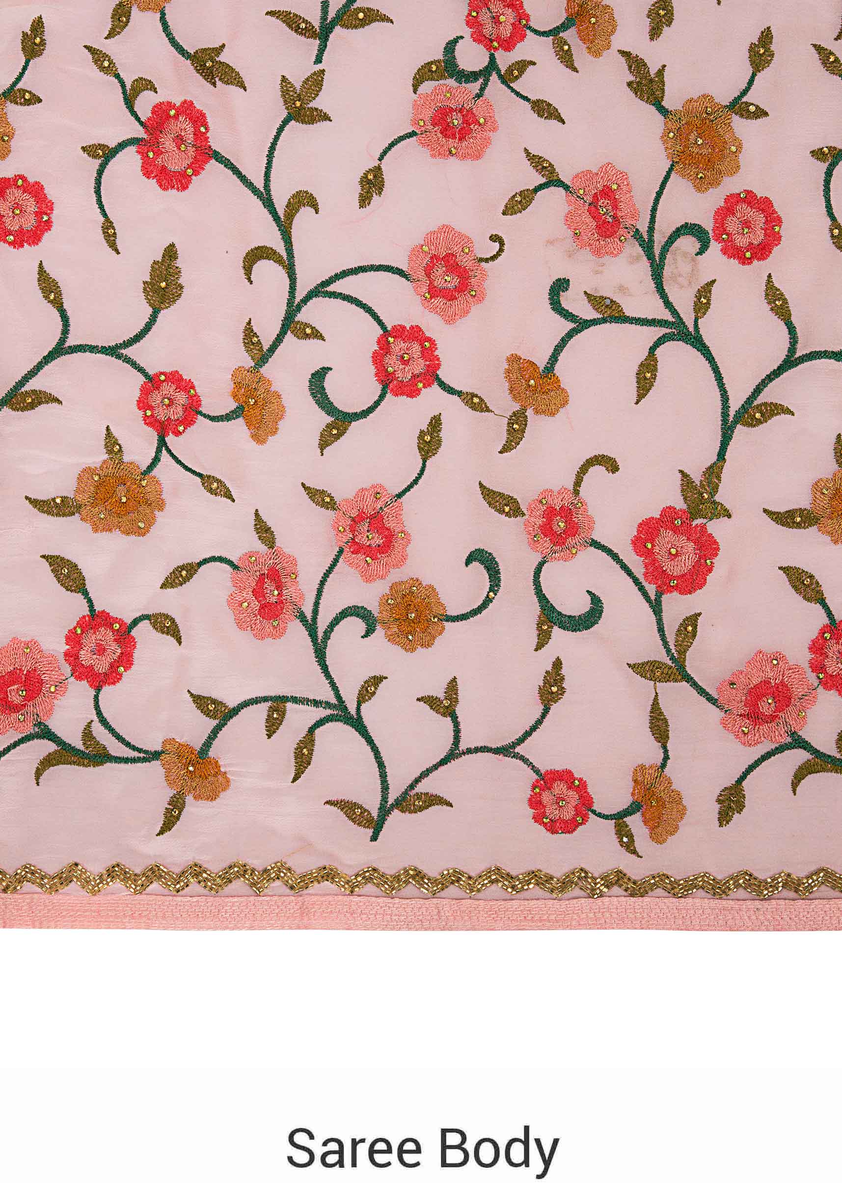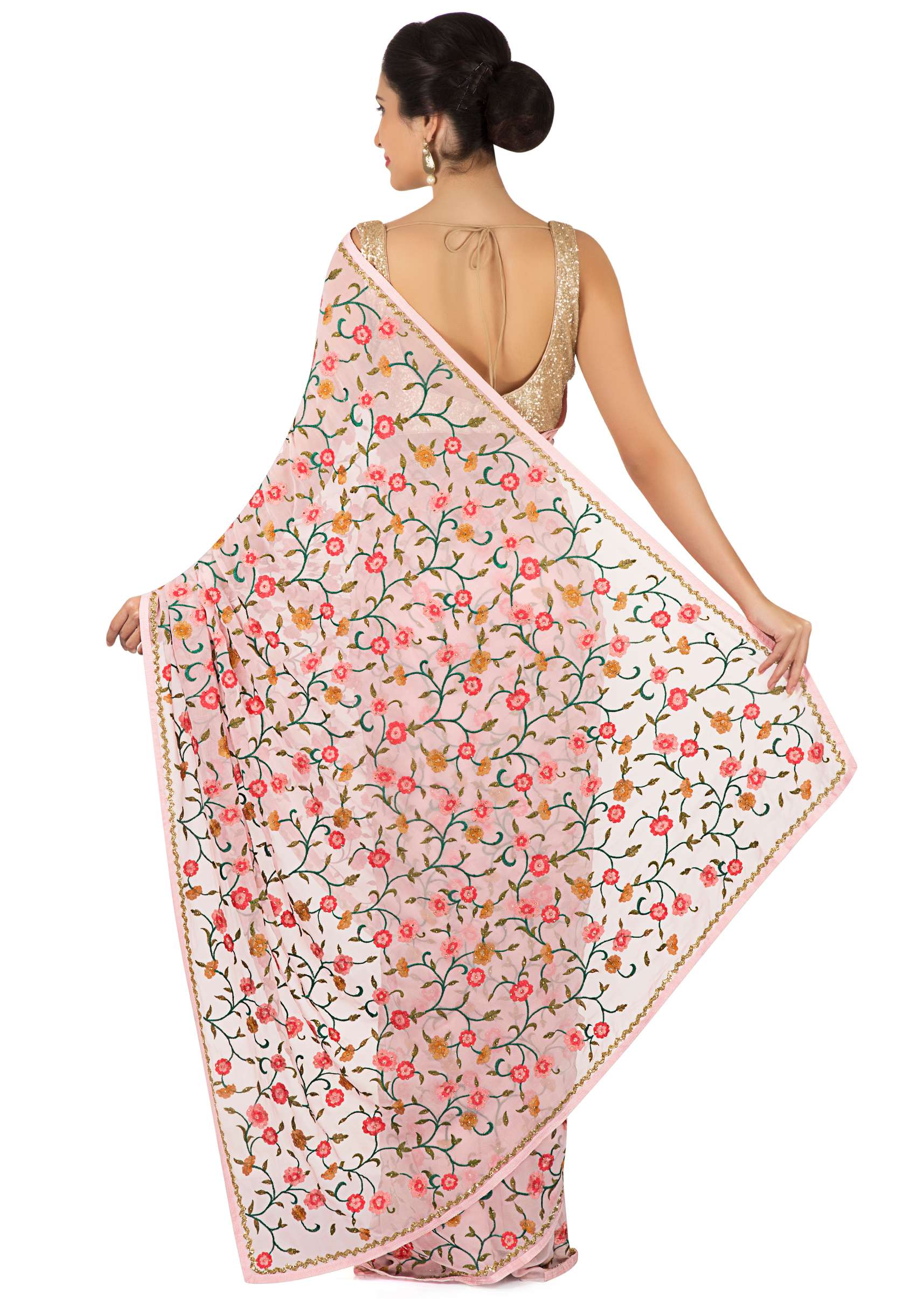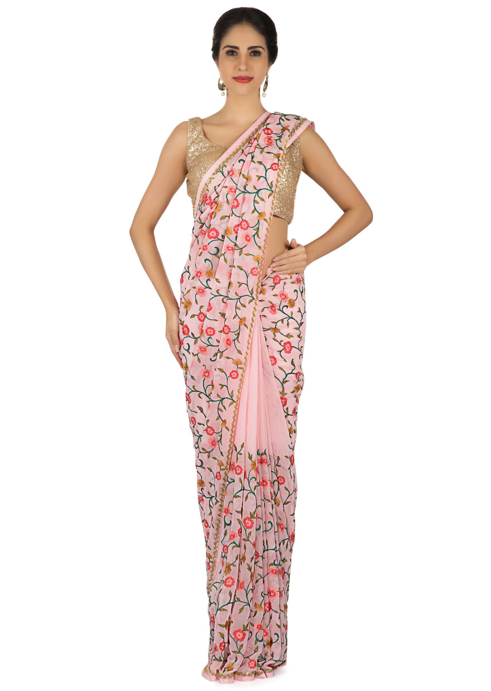 Floss pink saree in resham jaal and cut dana border only on Kalki