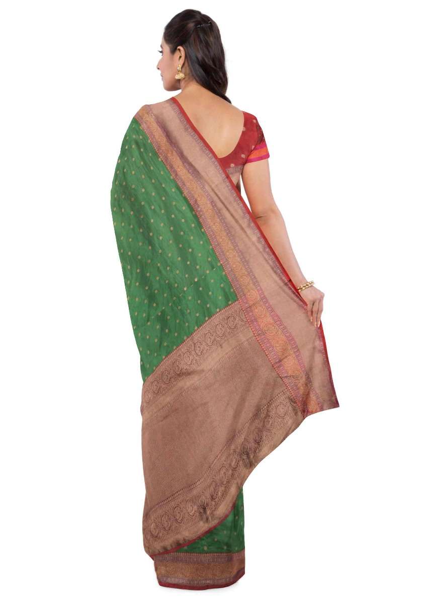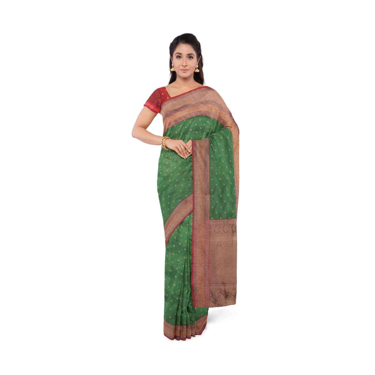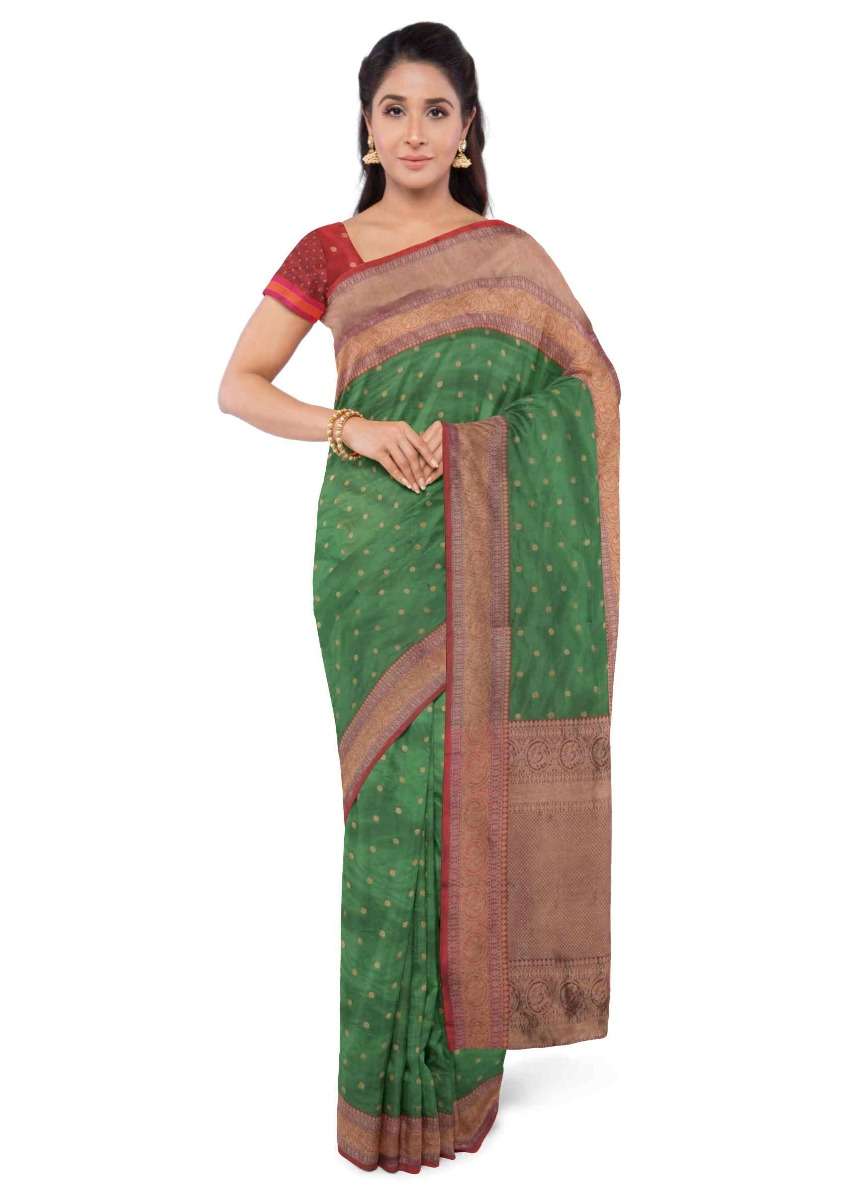 Forest Green Banarasi Saree With Weaved Floral Buttis Online - Kalki Fashion