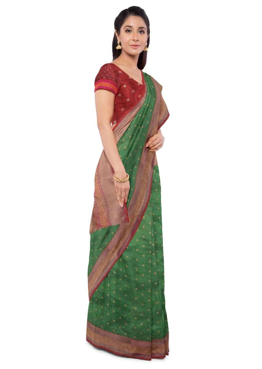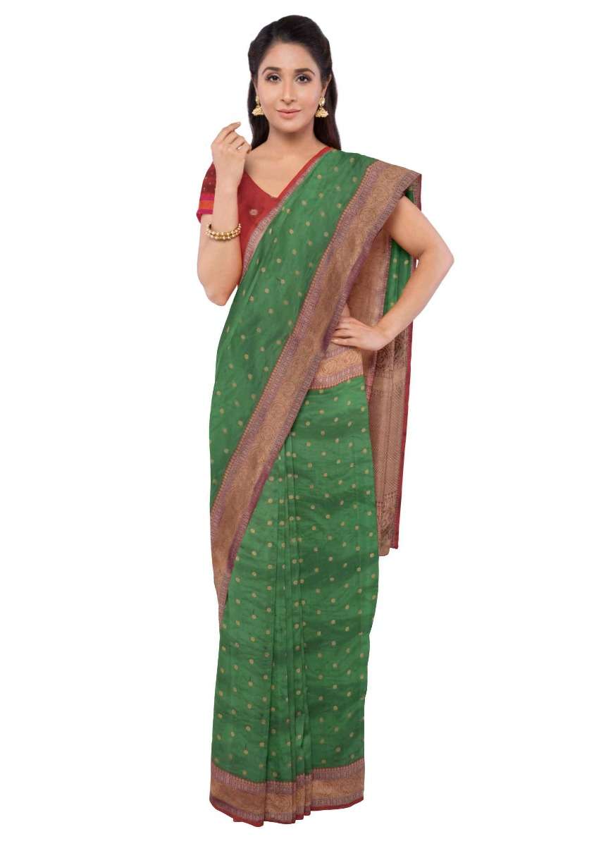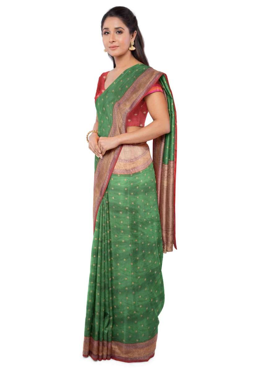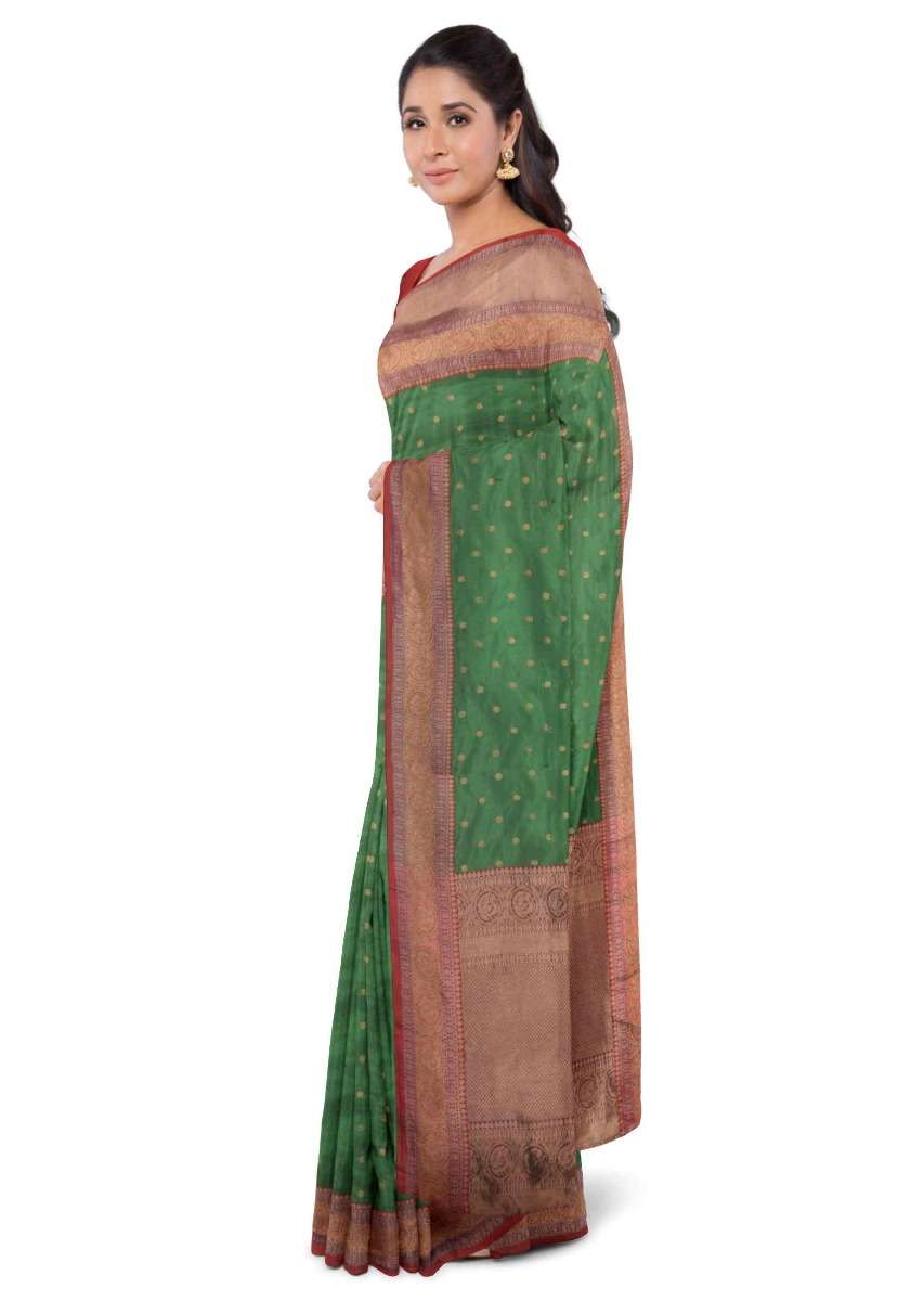 Forest Green Banarasi Saree With Weaved Floral Buttis Online - Kalki Fashion