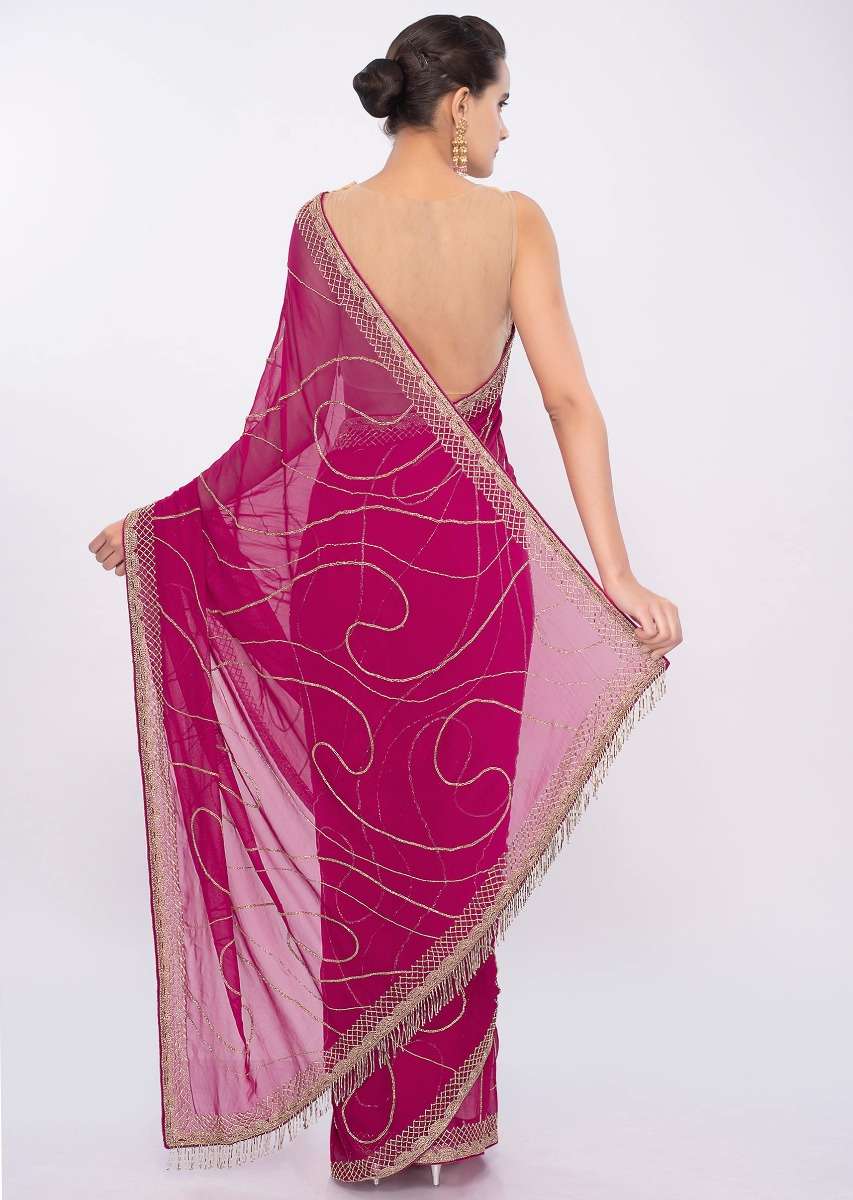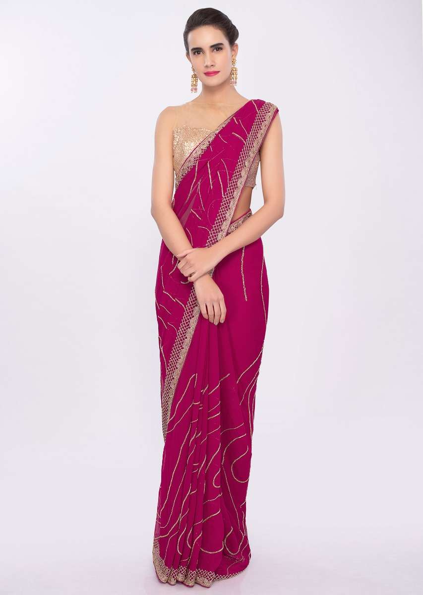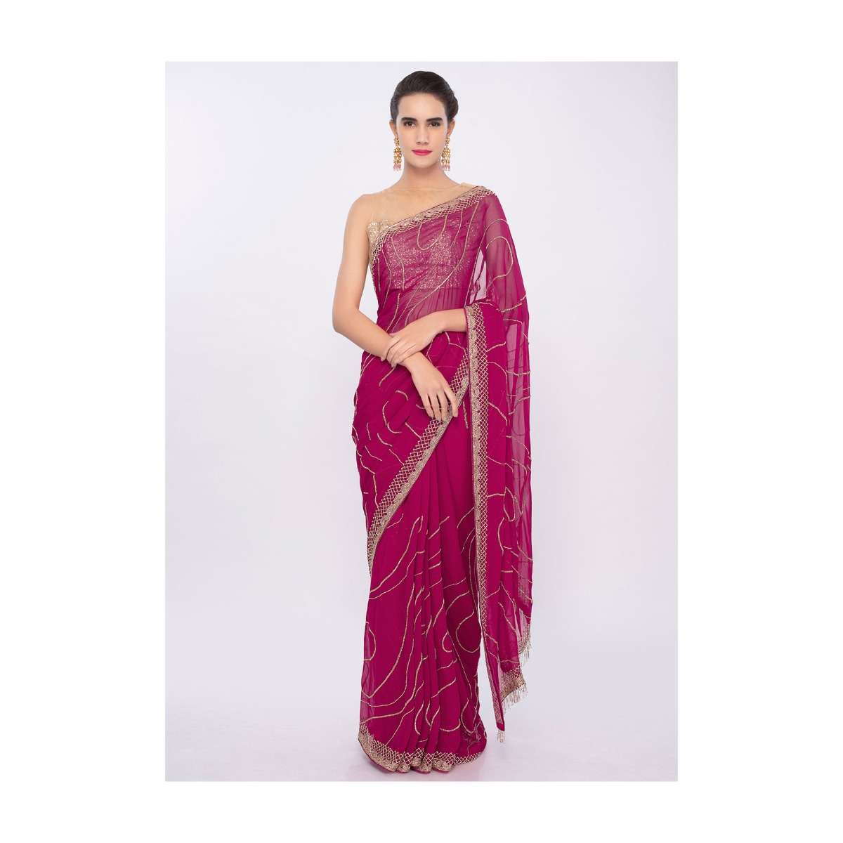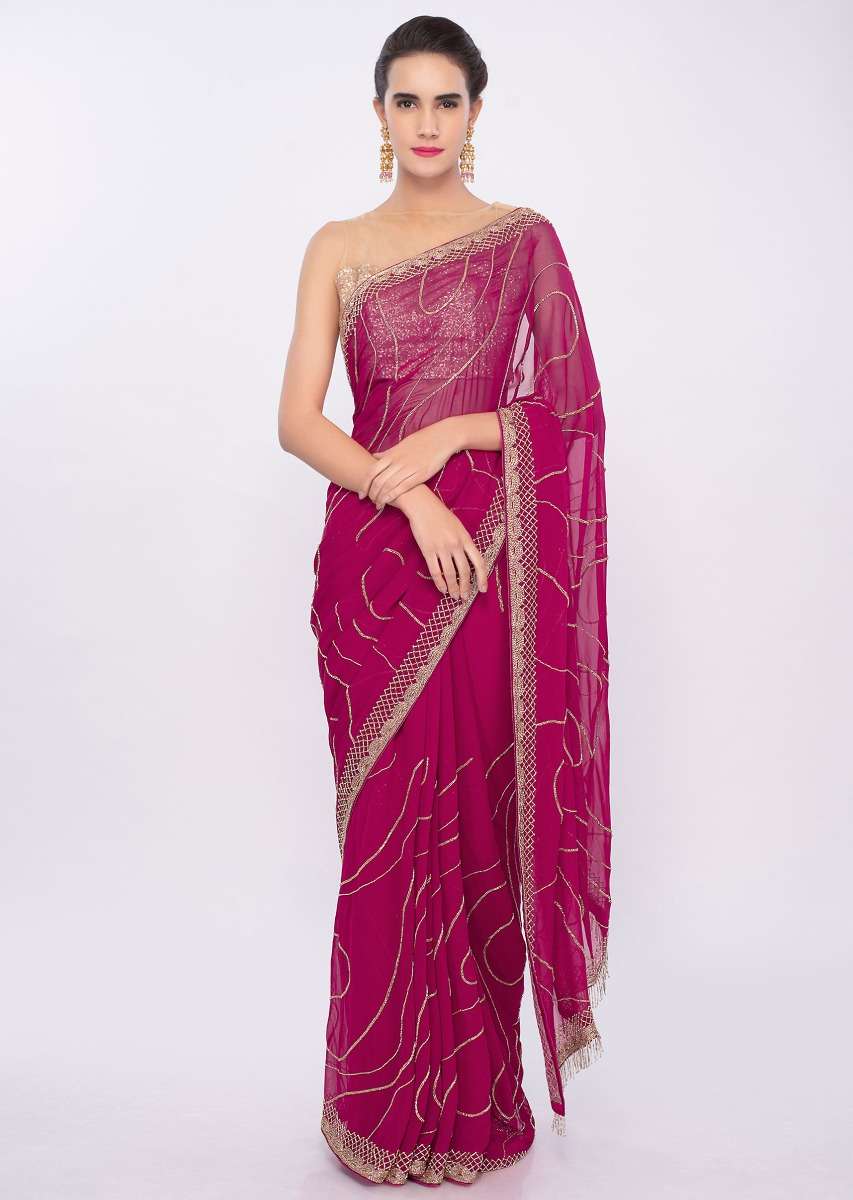 Fuchsia Pink Saree In Chiffon With Cut Dana Embroidery And Butti Online - Kalki Fashion