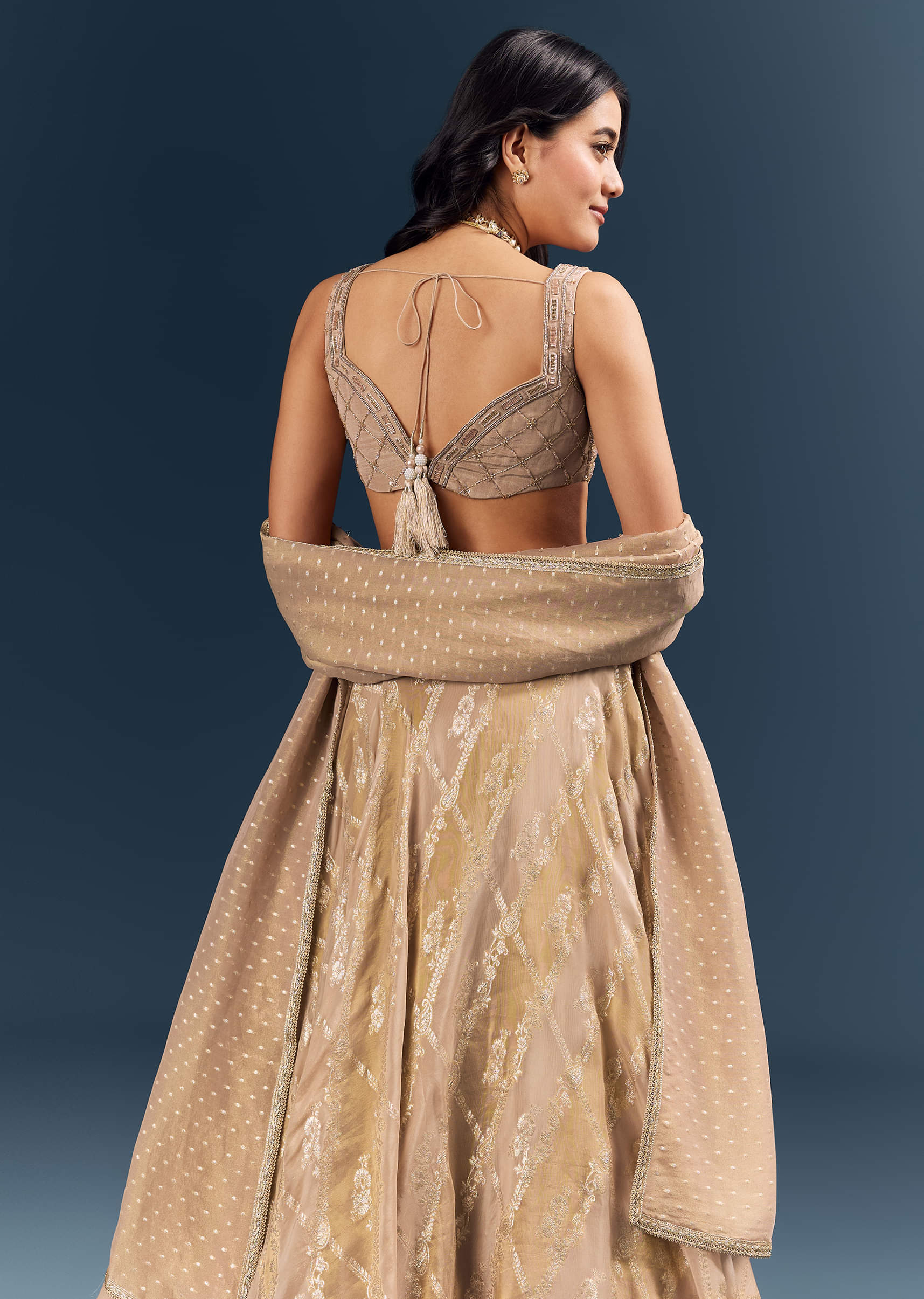 Even before the music starts, this gold banarasi silk bridesmaid lehenga sets an opulent, evening-ready tone. Hand embroidery lays down sequin sparkle with bead depth and a neat lace finish that frames the brocade. You feel luminous and ceremony-ready for mehendi, engagement, and sangeet. Awarded as the Most Trusted Brand, we're delivering styles you love, just as promised.