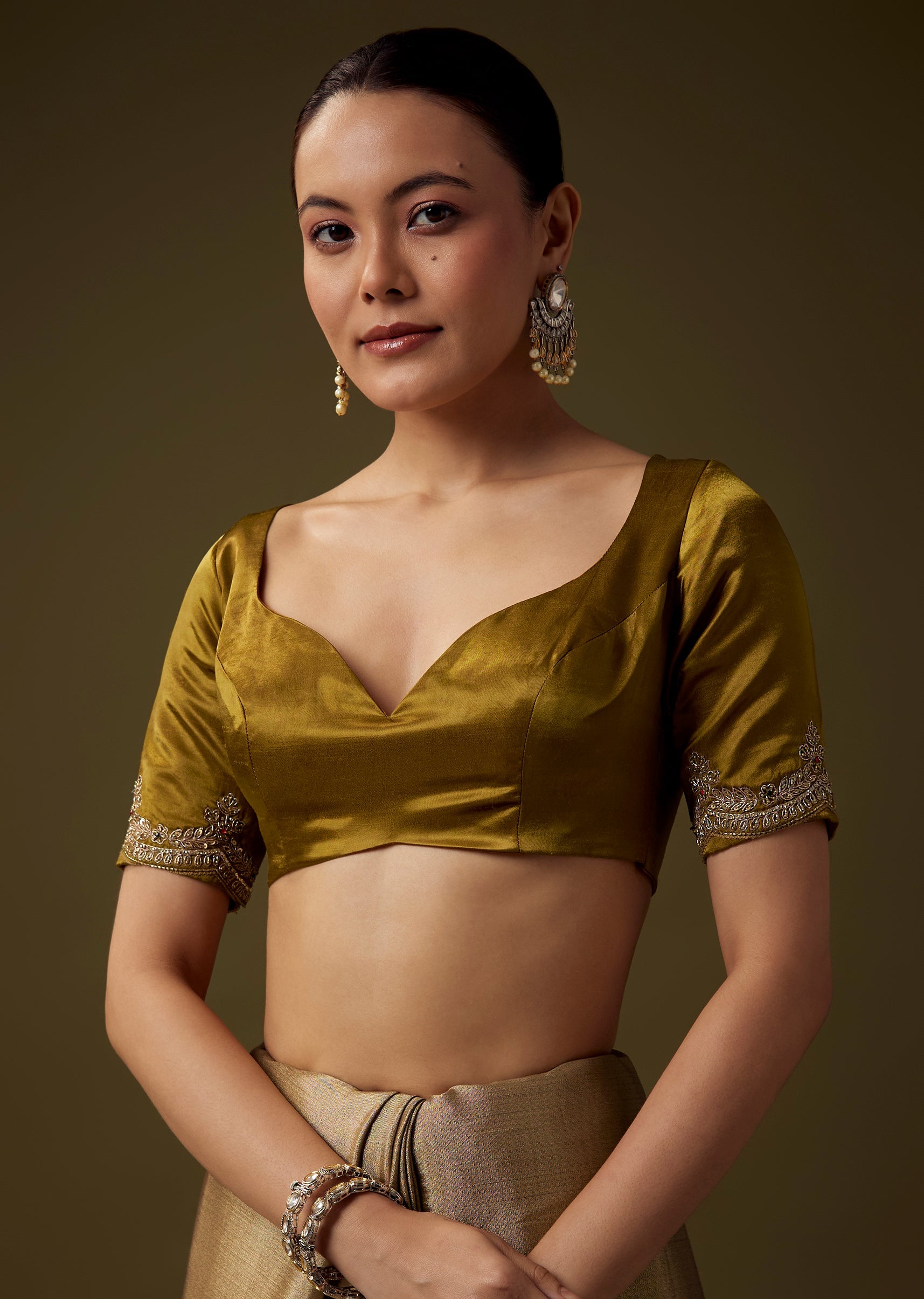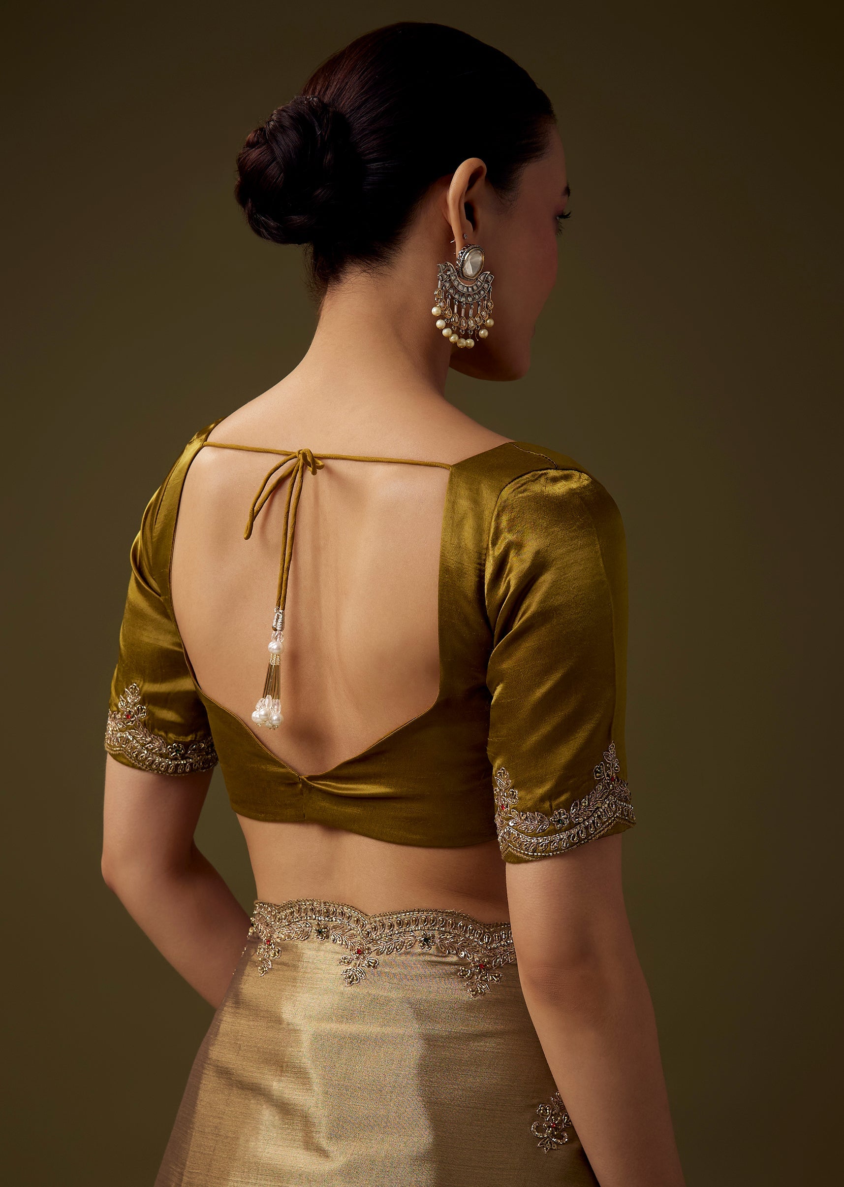 Gold Embroidered Tissue Silk Saree with Unstitched Blouse