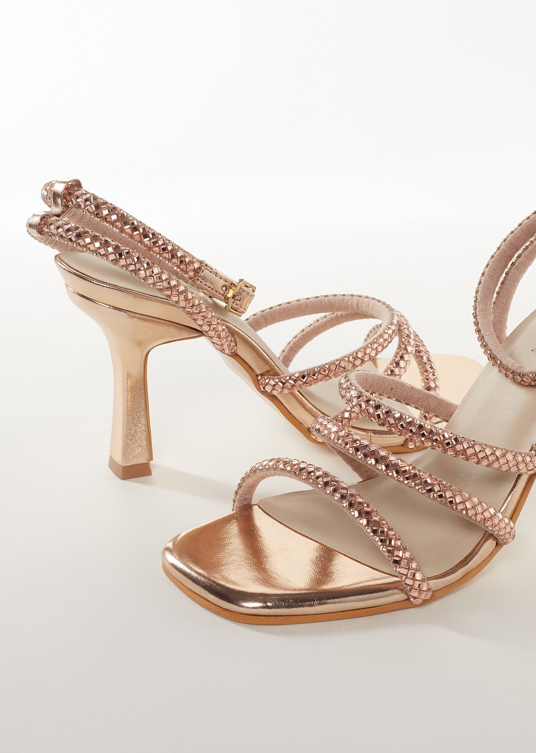 Elegant and festive, these gold womens footwear pieces are crafted in smooth faux leather with delicate embellished detailing that adds a soft shimmer. The tabletop face silhouette ensures easy slip... More Product Details