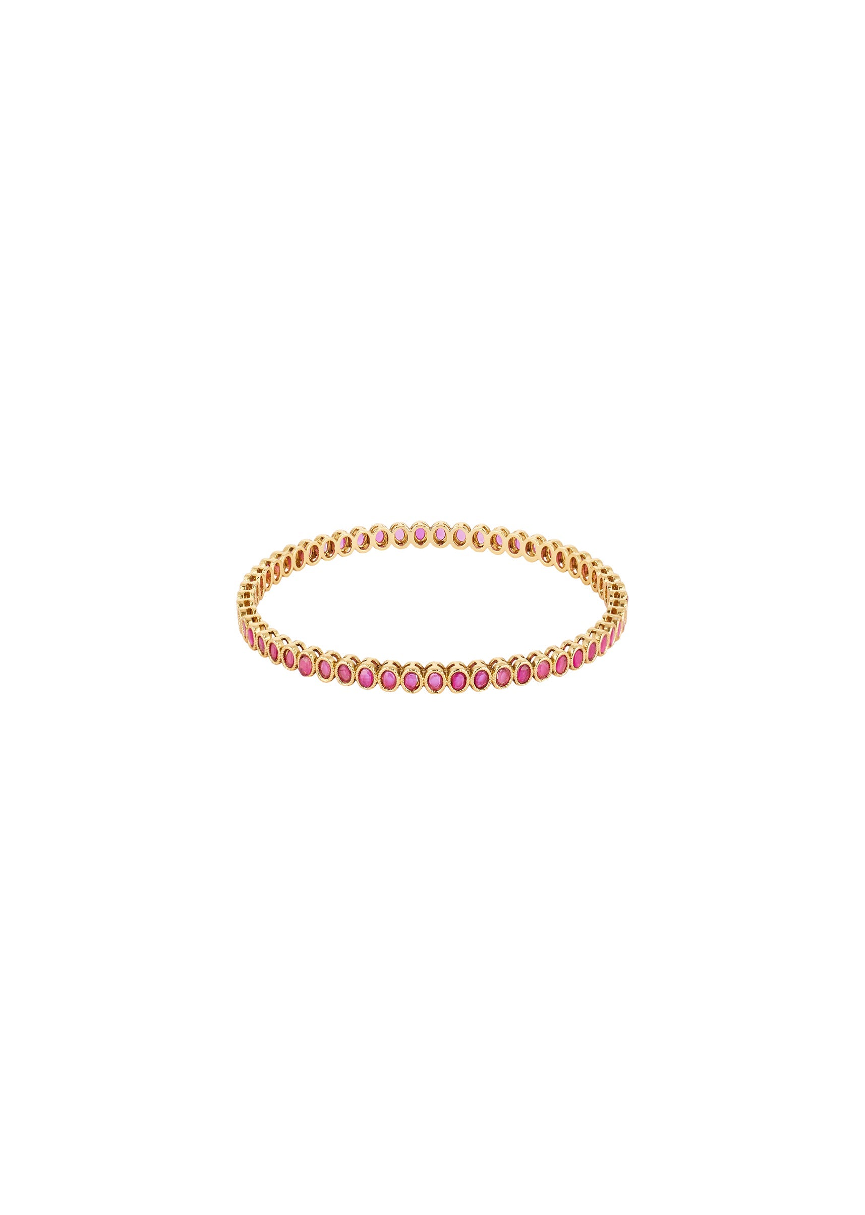 A stunning bangle in a radiant gold finish featuring finely detailed traditional temple motifs accented with simulated ruby stones. The rich red hue of the rubies adds a vibrant and... More Product Details