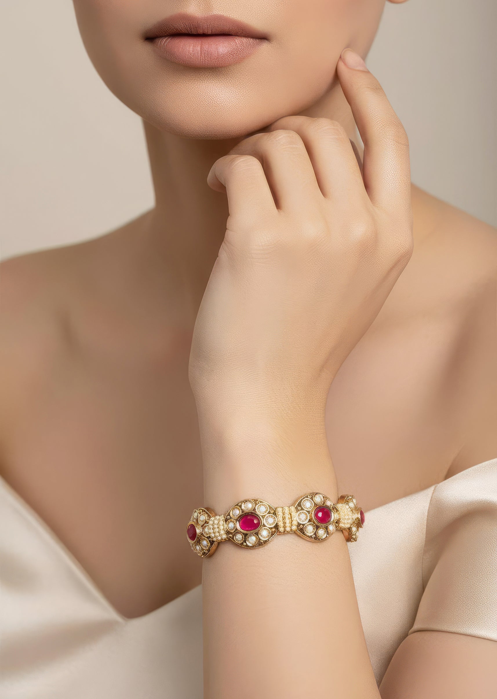 Gold Finish Bracelet Set In Kidman Polki
