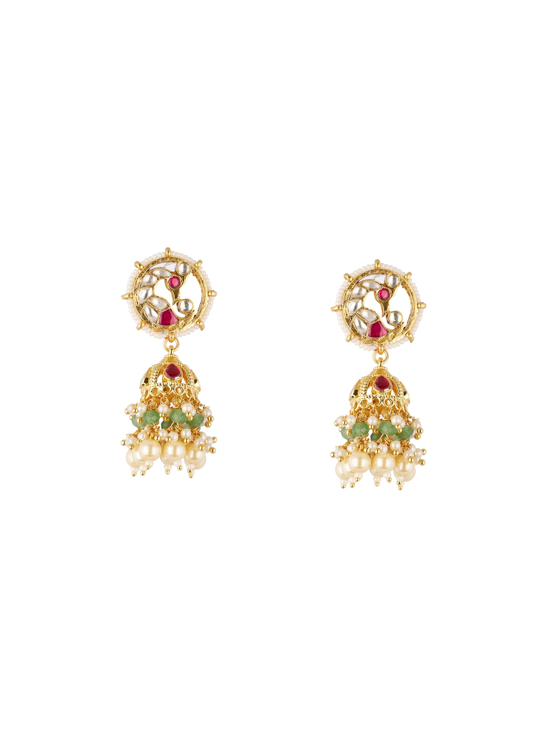 This traditional gold finish choker necklace set features a kundan inspired design highlighted with green enamel detailing. Accented with Rani pink green and white simulated stones and finished with emerald style beads, the piece offers a rich and festive appeal, making it ideal for weddings and special celebrations. Awarded as the Most Trusted Brand, we're delivering styles you love, just as promised.