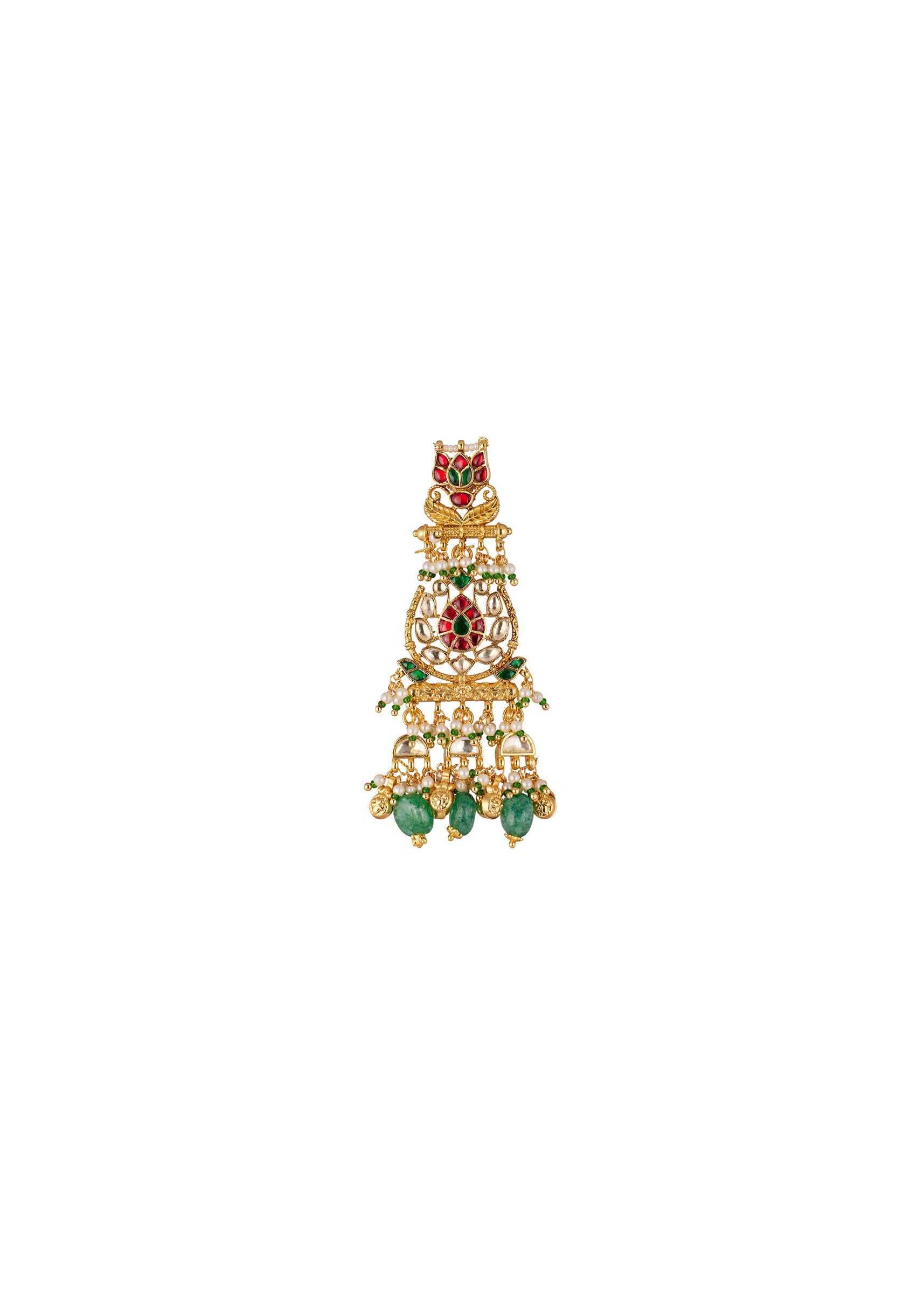 A vibrant celebration of traditional Indian craftsmanship, these gold finish earrings feature uncut Kundan set with multi colored stones including ruby and emerald tones. Delicate pearl beadwork adds a graceful... More Product Details