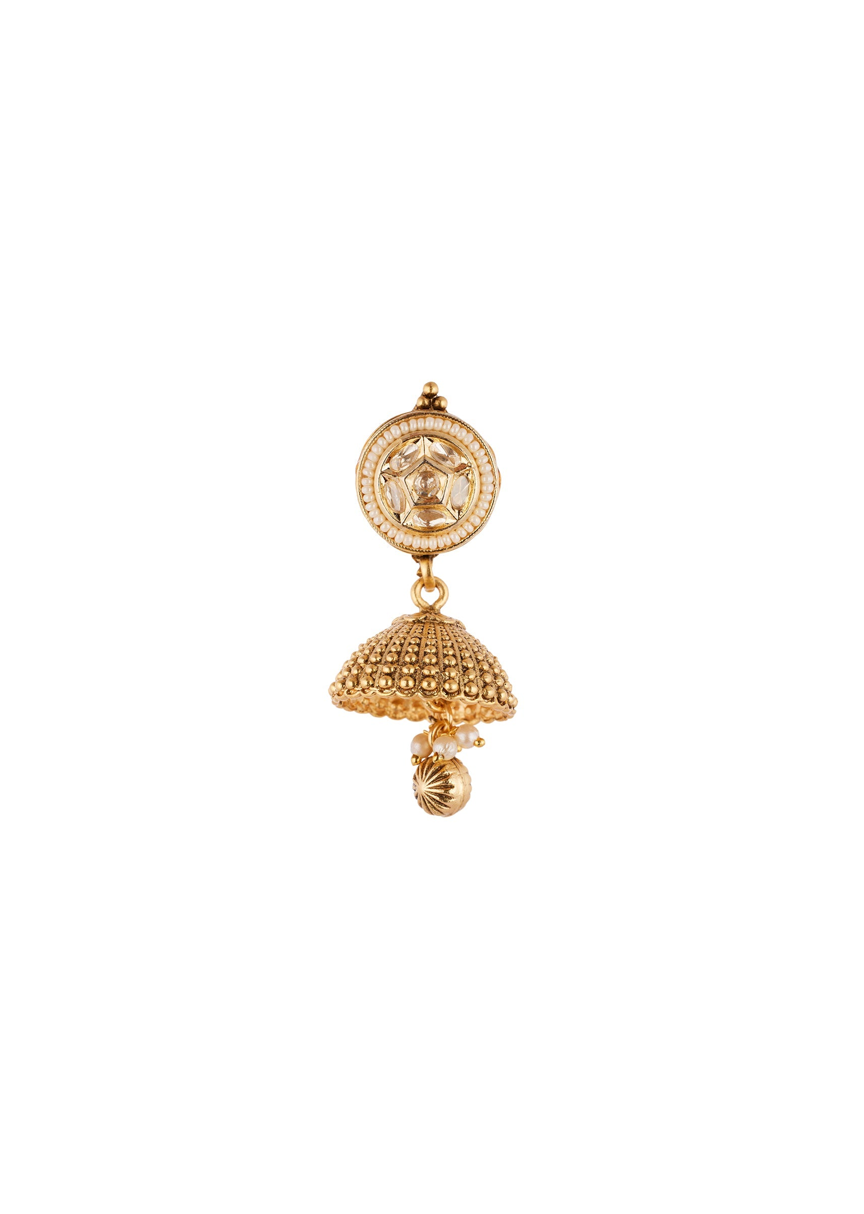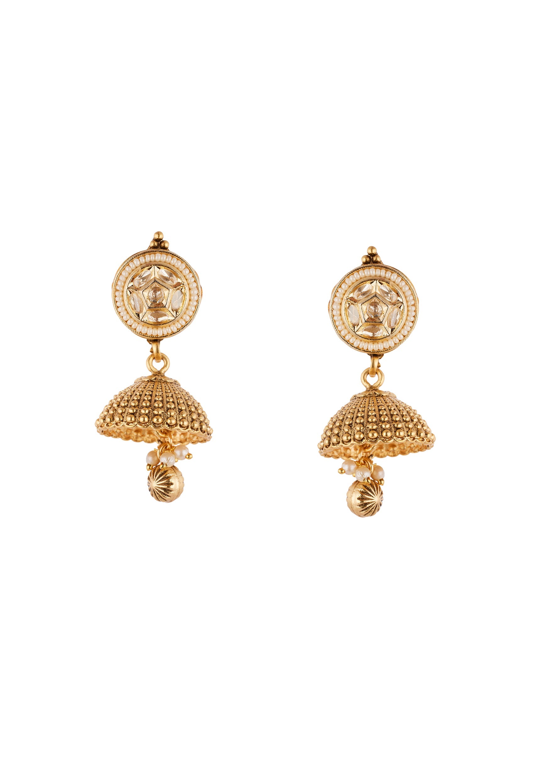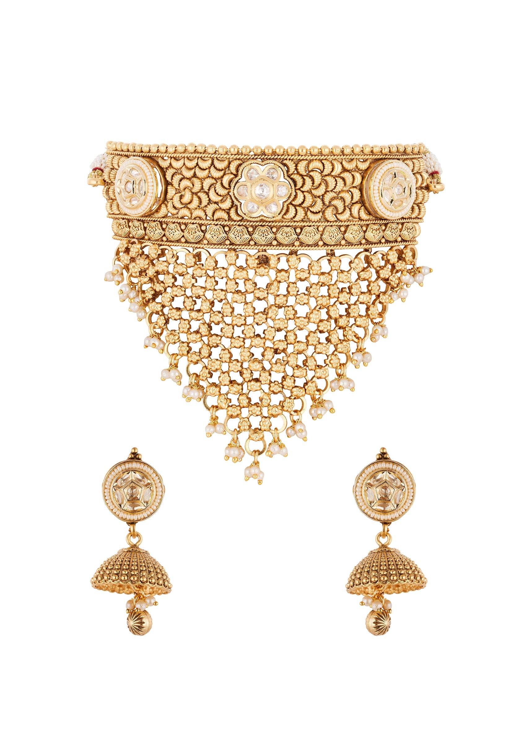 Gold Finish Jewellery Set With Kundan Detailing And Drops