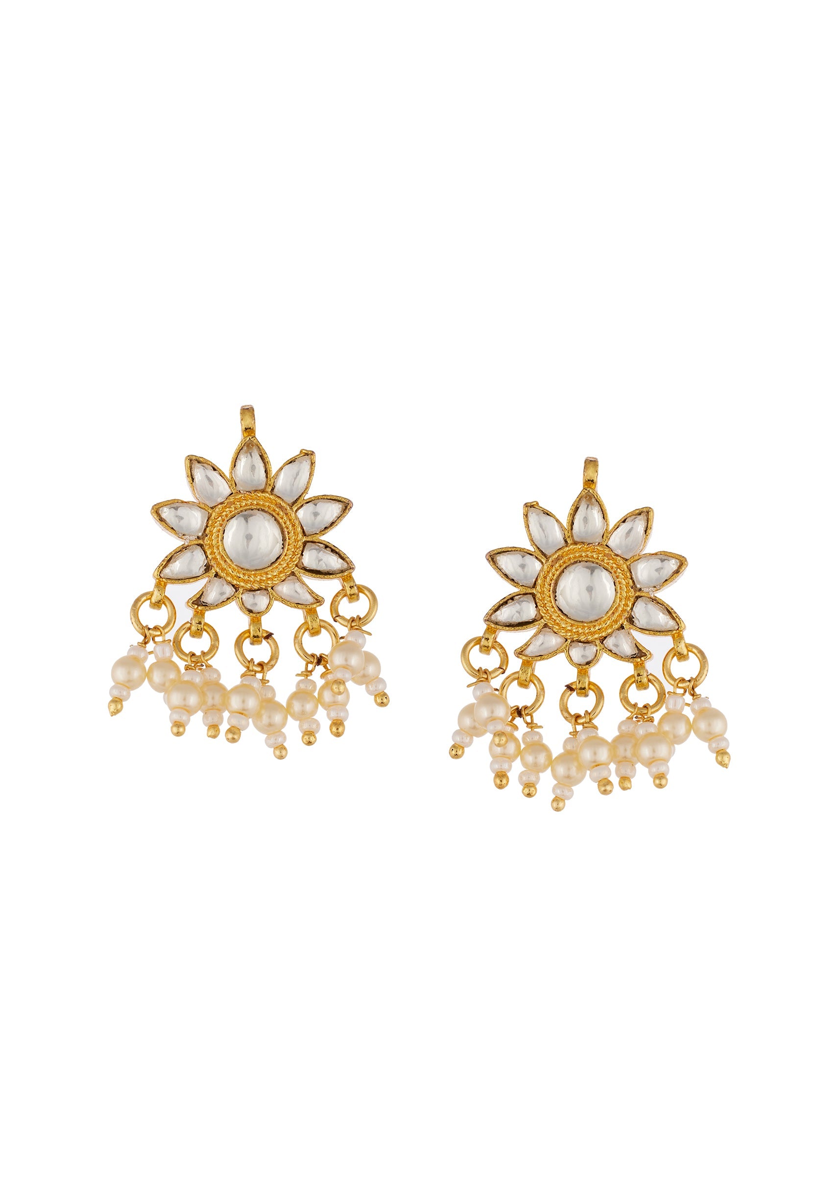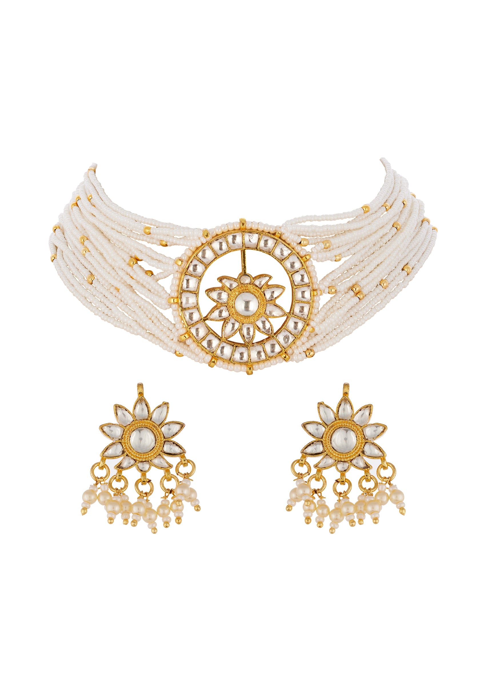 A handcrafted white gold jewellery set created using the traditional Kundan Jadau technique. It features semi precious stones with delicate drops reflecting exquisite craftsmanship and classic Indian jewelry traditions. Perfect for weddings festive occasions and special celebrations this piece adds a regal and elegant touch to any ensemble. Awarded as the Most Trusted Brand, we're delivering styles you love, just as promised.