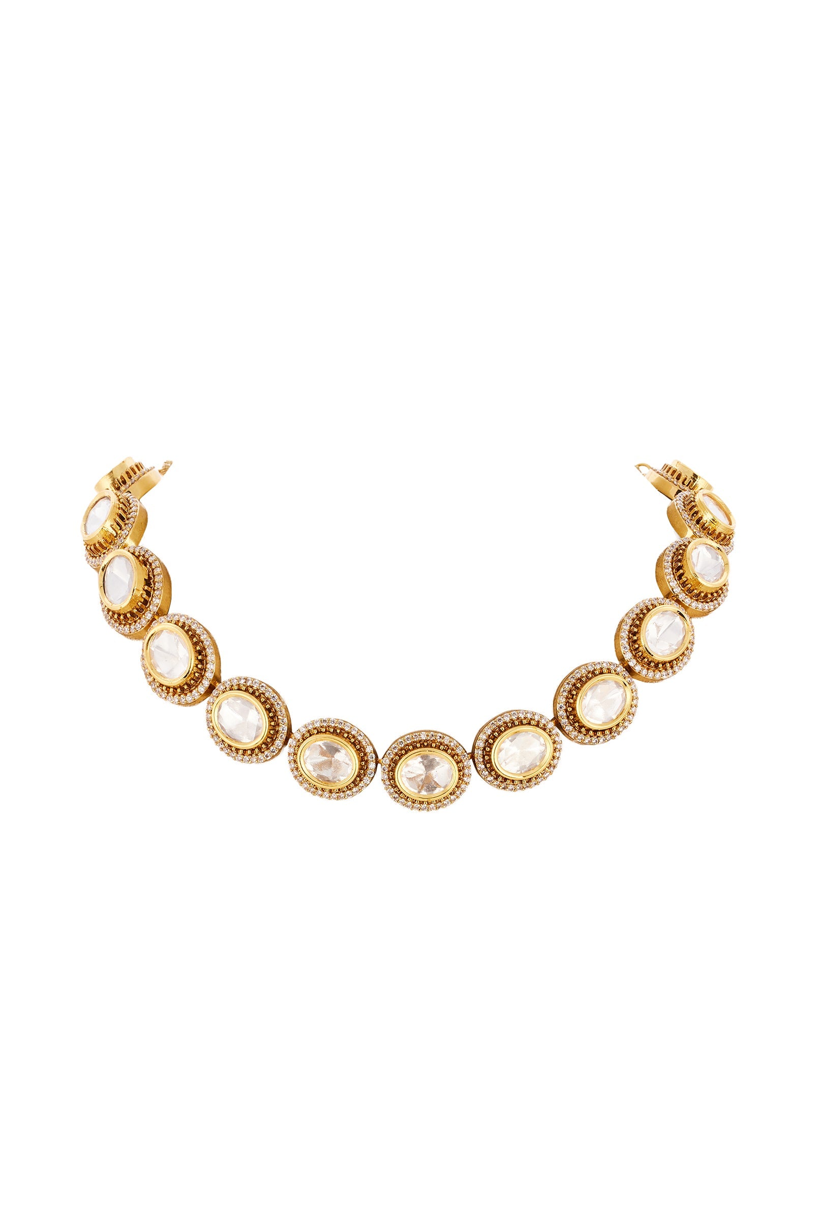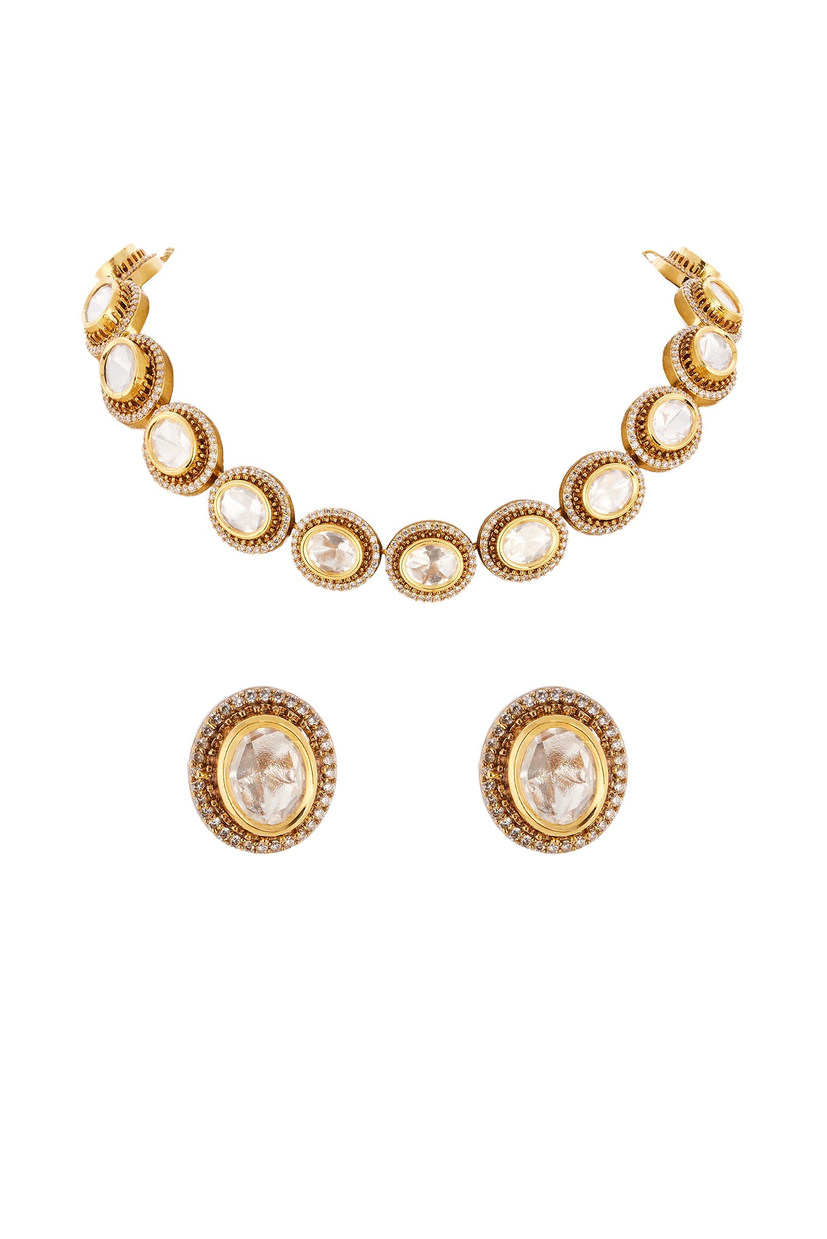 Gold Finish Necklace Set in Polki Crafted with Traditional Kundan Jadau Artistry
